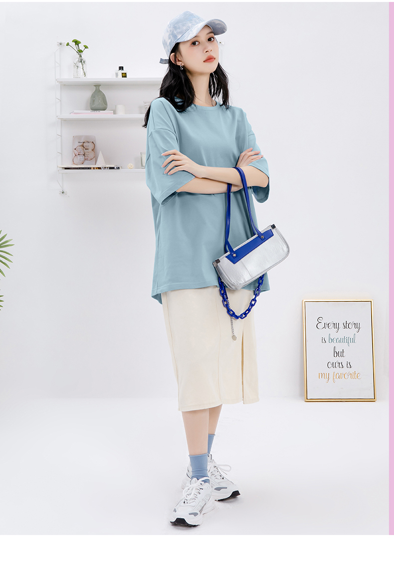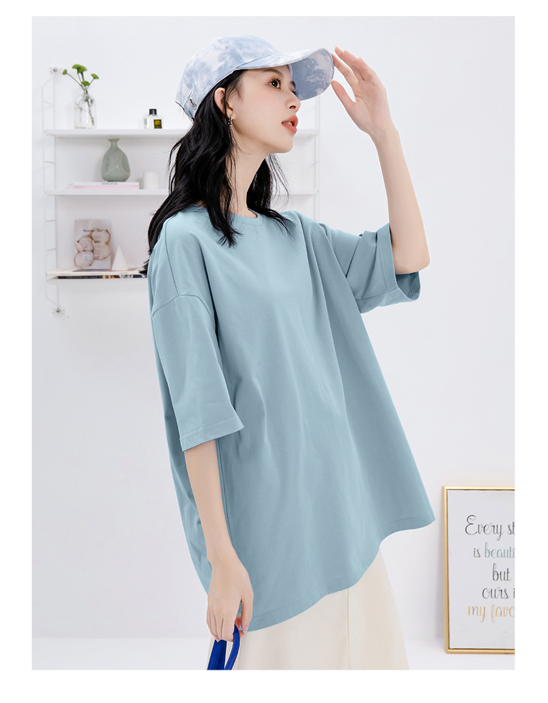 Синяя хлопковая летняя тонкая мятная футболка, длина миди
