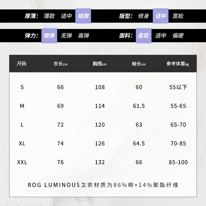 [Периферийная rog] Rog световой свитер. Светящаяся логотип Мягкая ткань, хороший дышащий большой карман шляпы