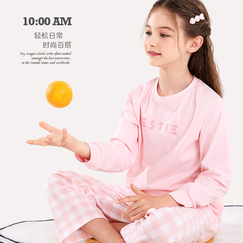 Детская пижама, осенний хлопковый весенний лонгслив, форма, комплект, подходит для подростков, семейный стиль