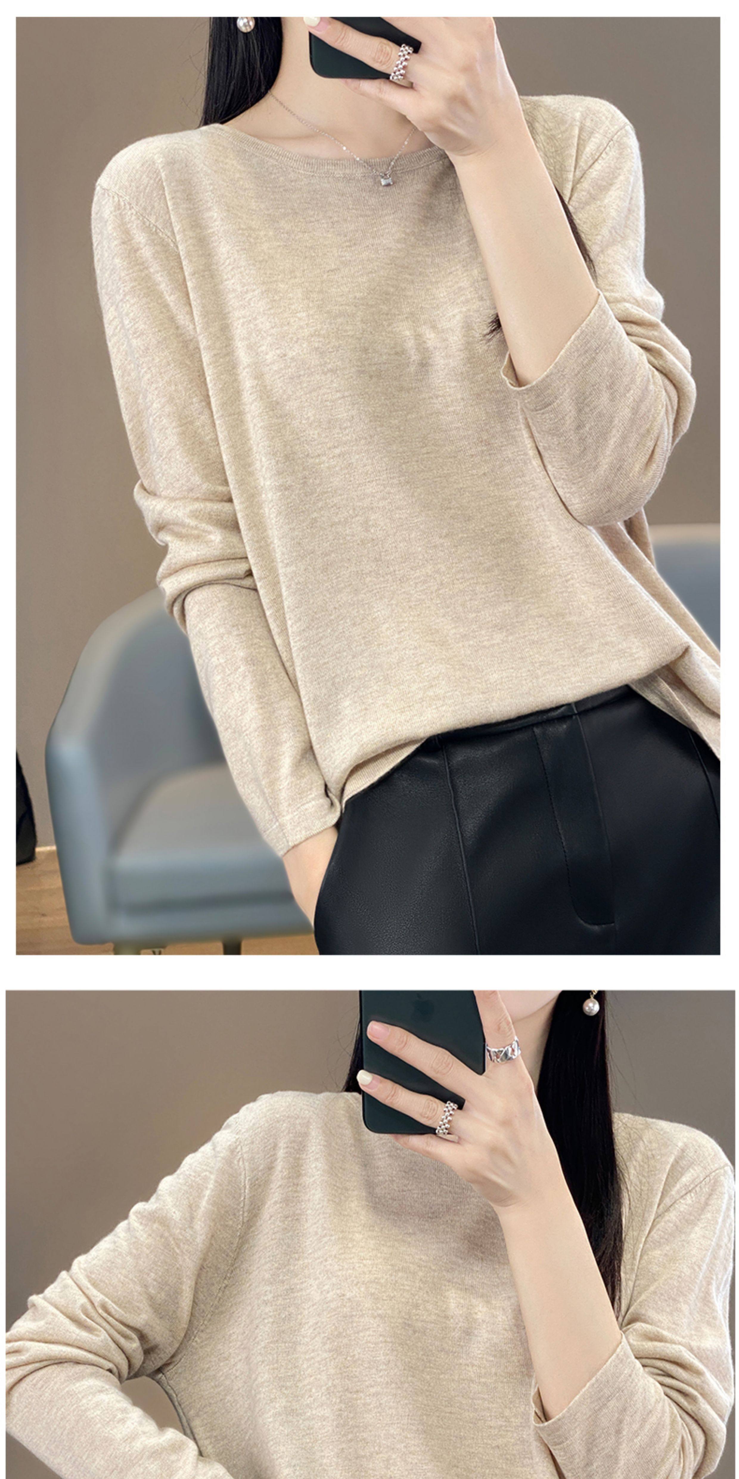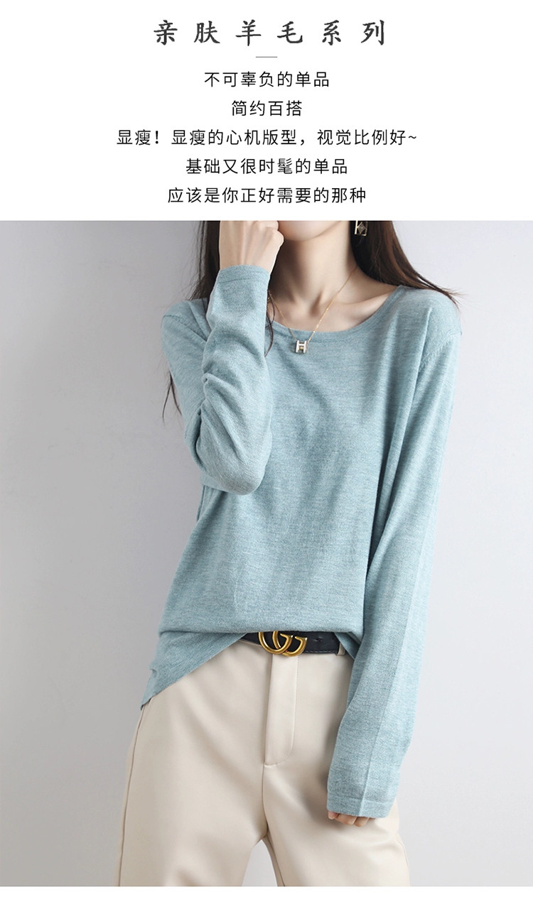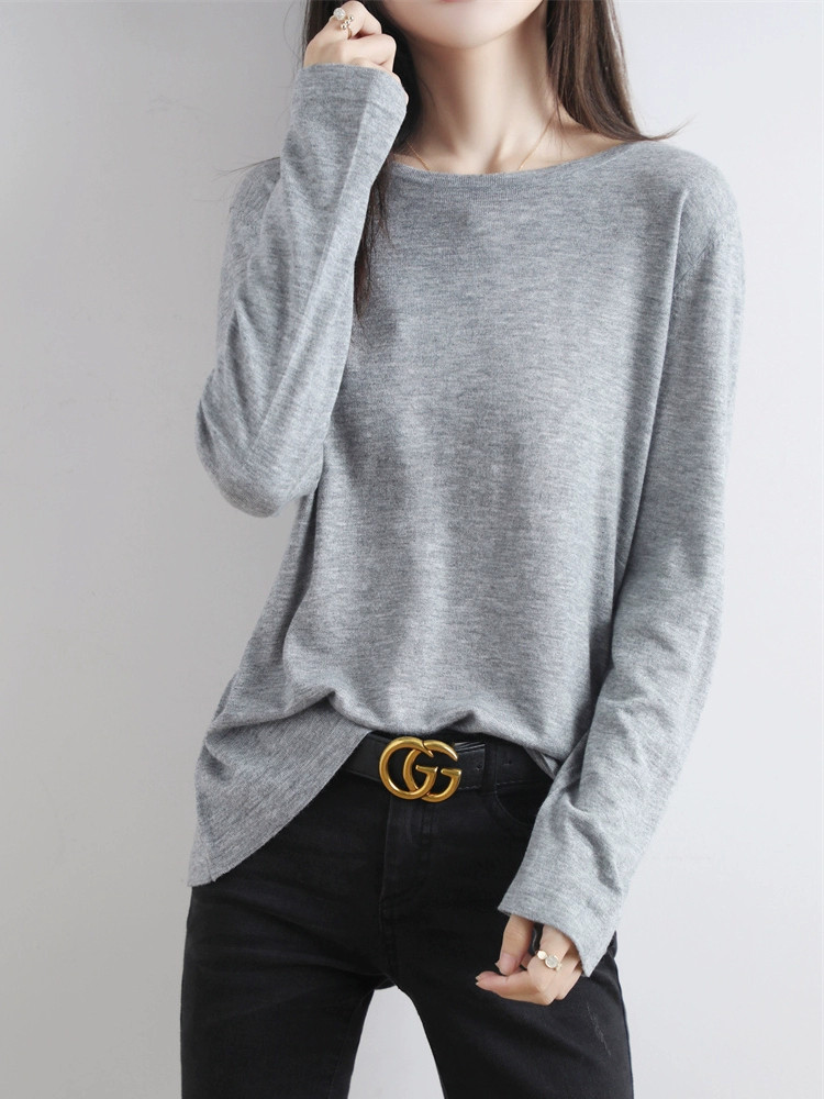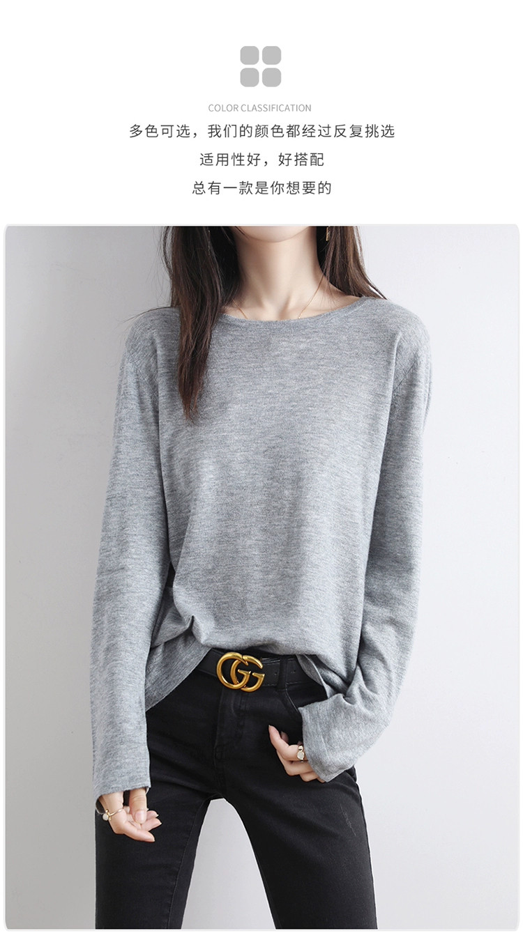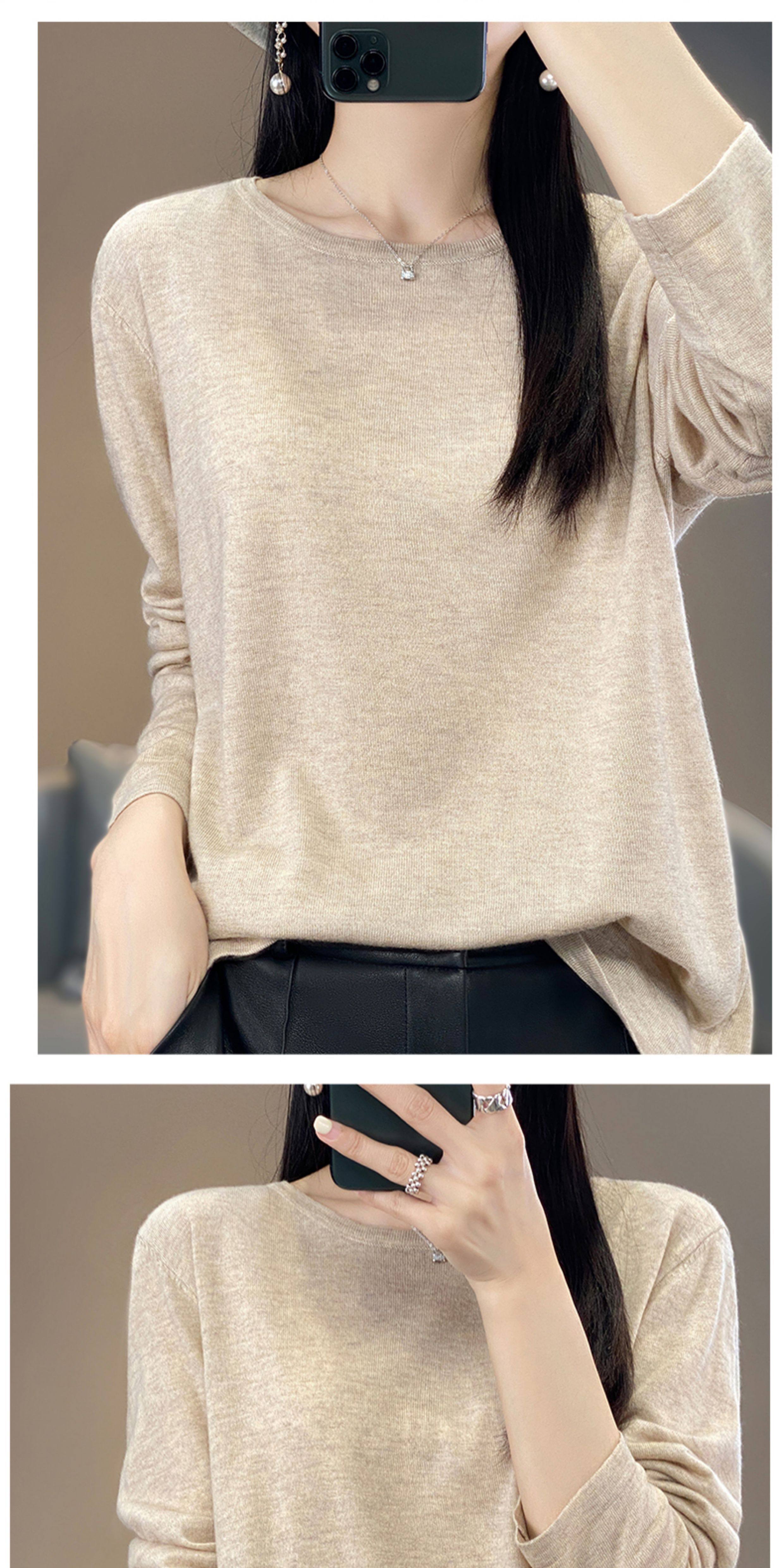 Шерстяной тонкий кашемировый базовый приятный телу свитер с круглым воротником, свободный крой