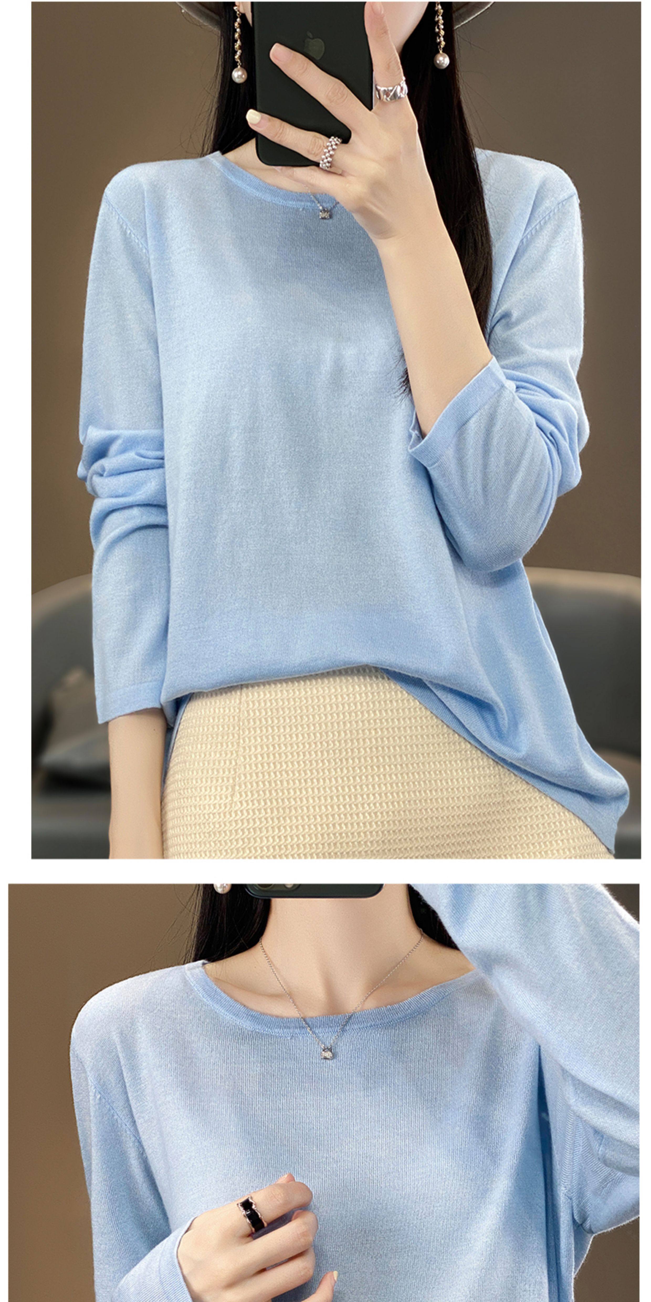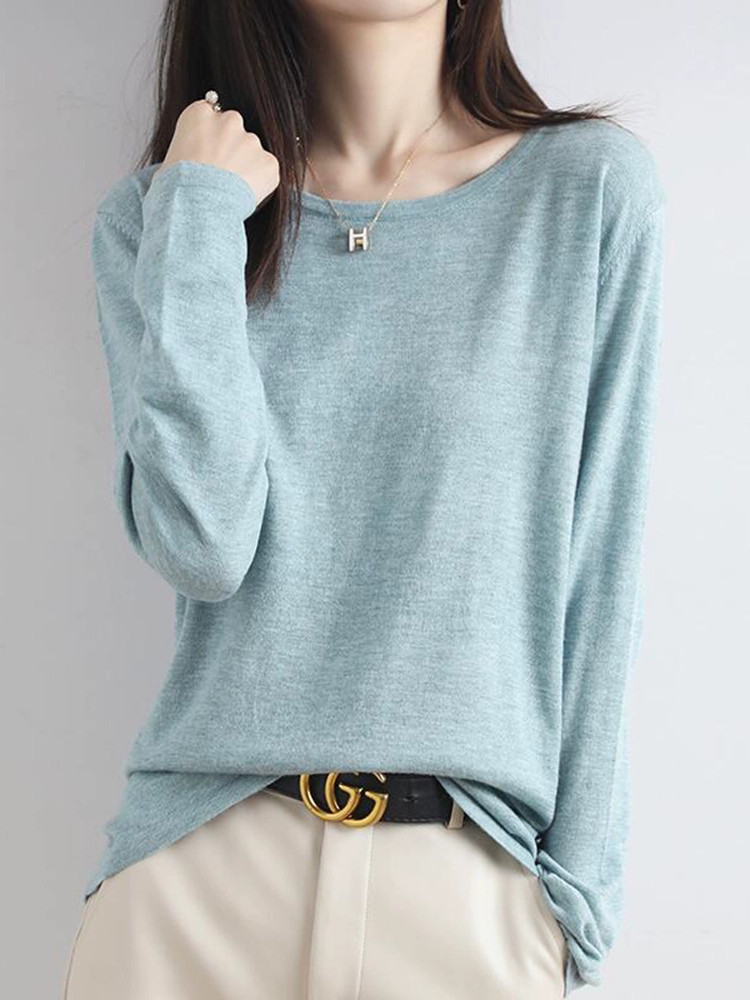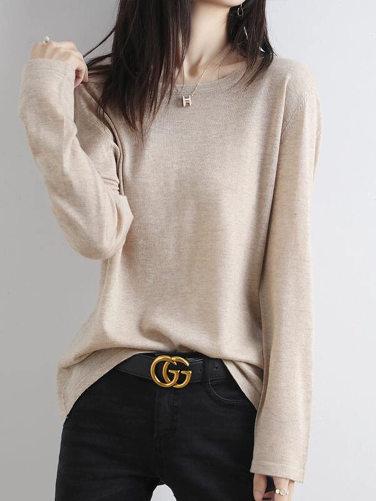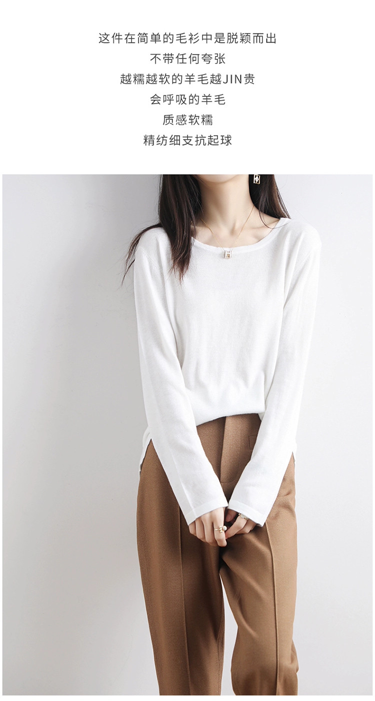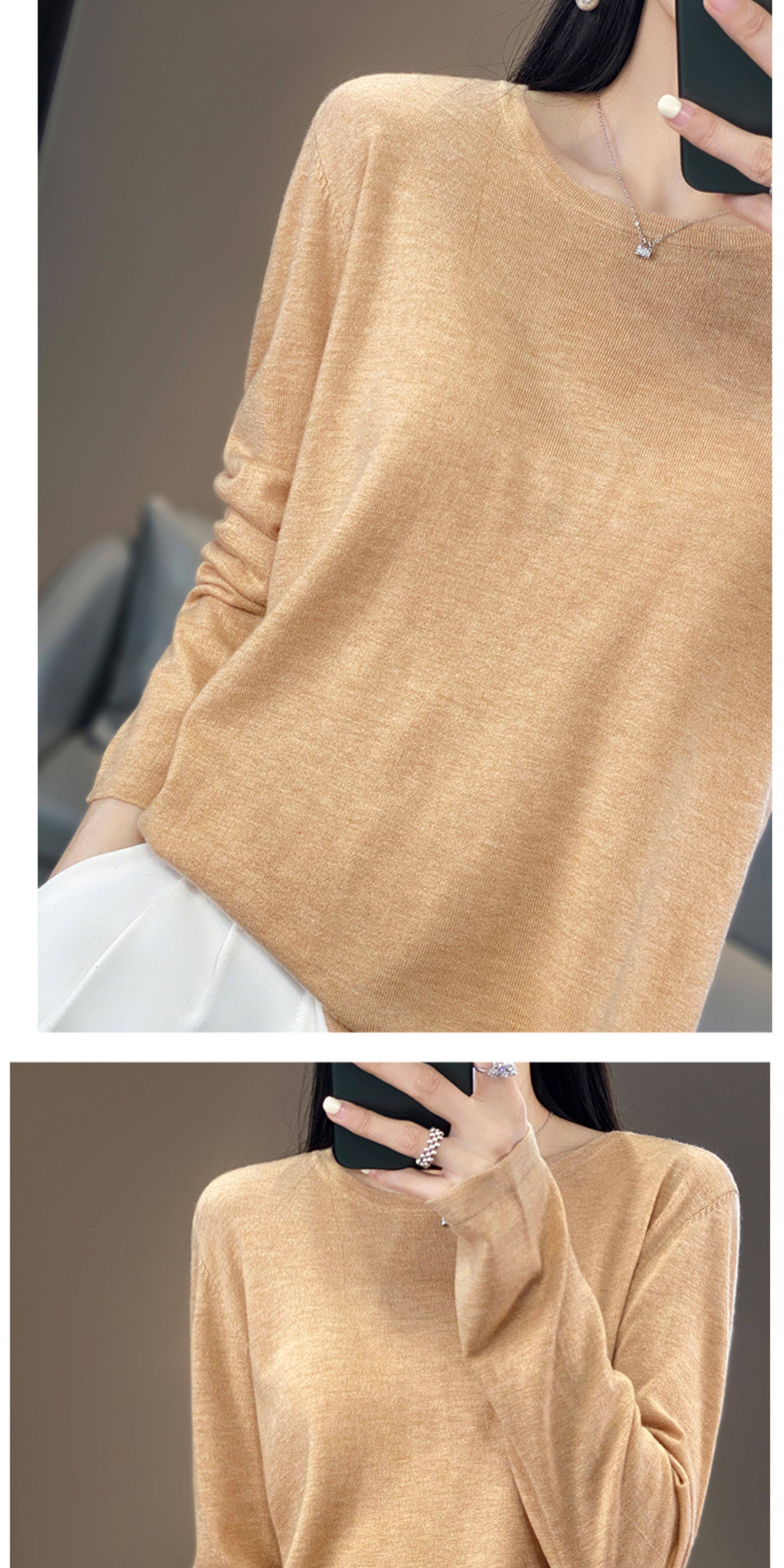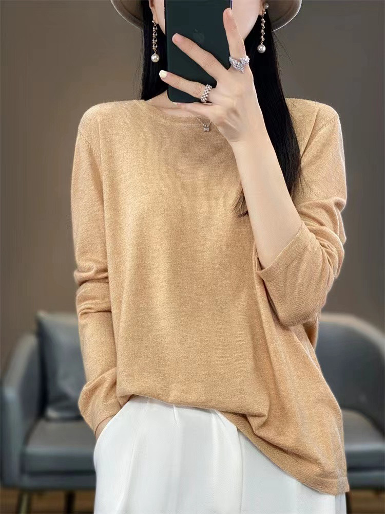 Шерстяной тонкий кашемировый базовый приятный телу свитер с круглым воротником, свободный крой