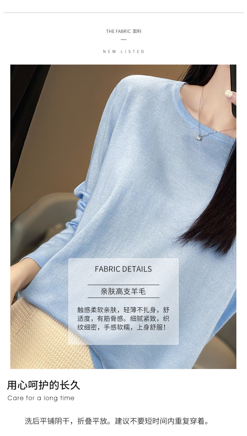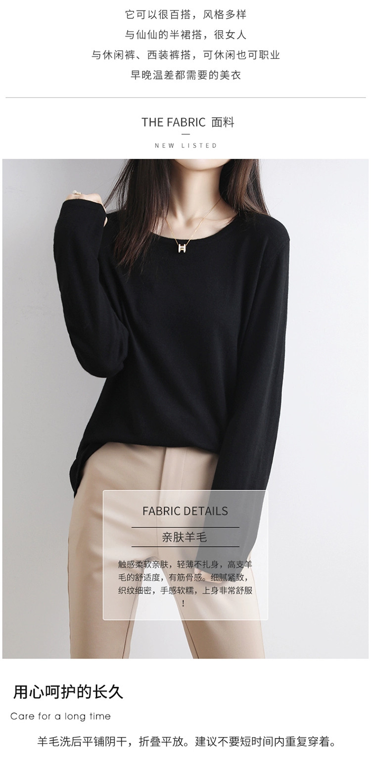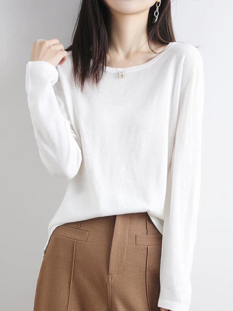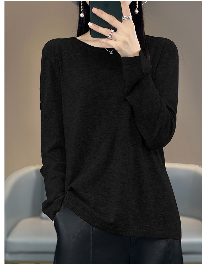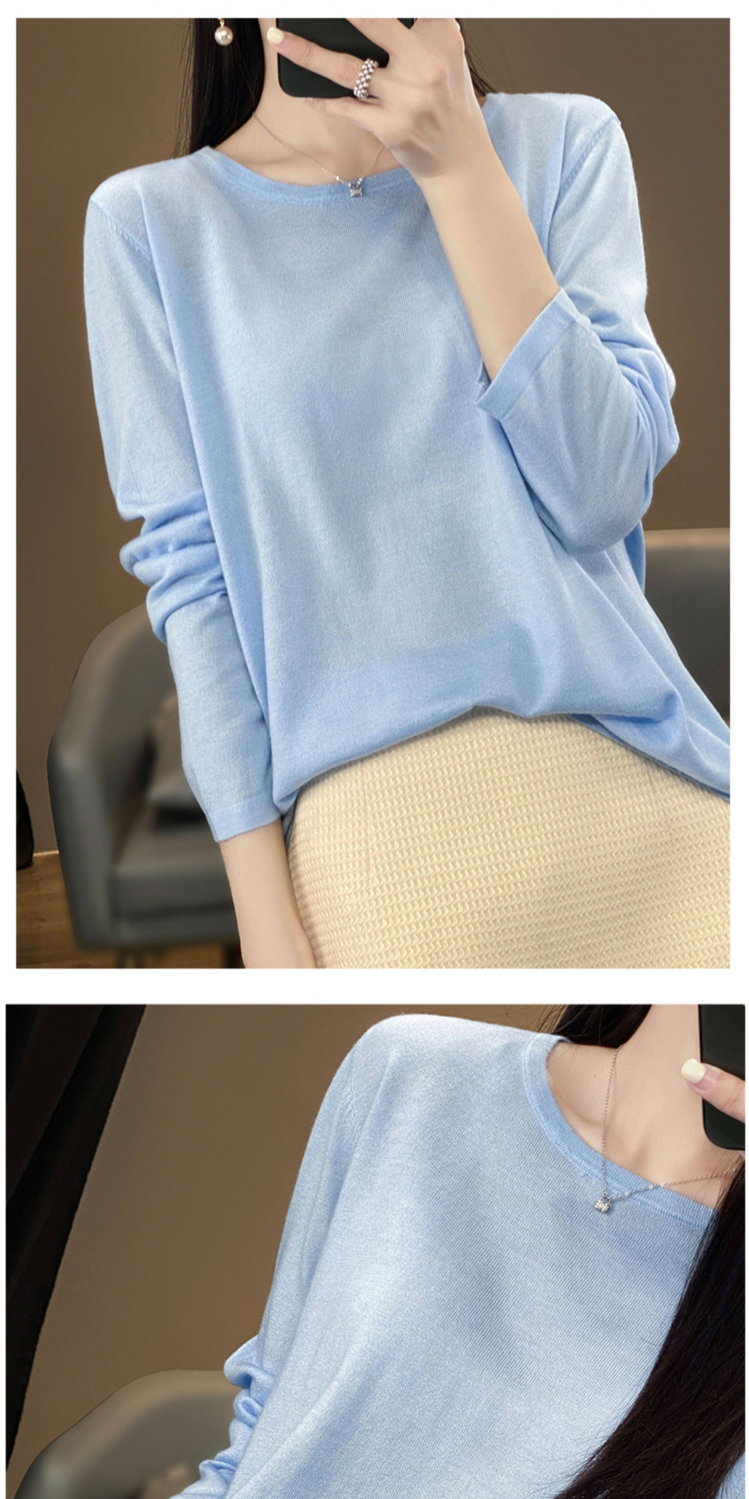 Шерстяной тонкий кашемировый базовый приятный телу свитер с круглым воротником, свободный крой