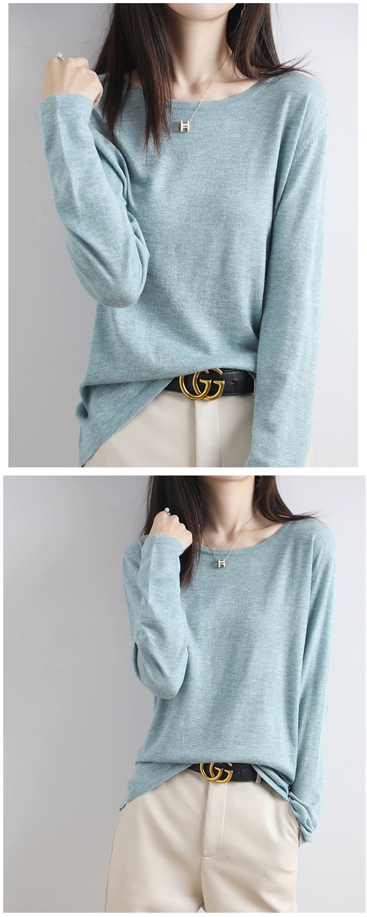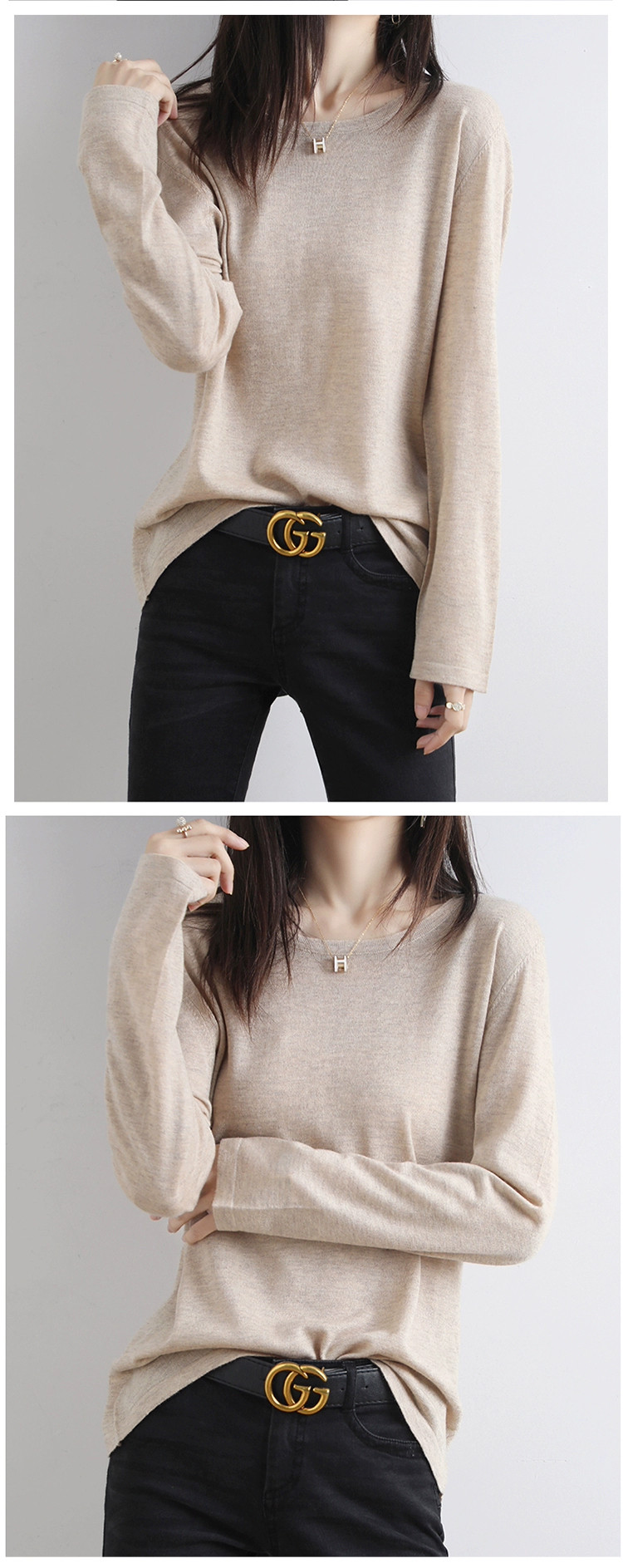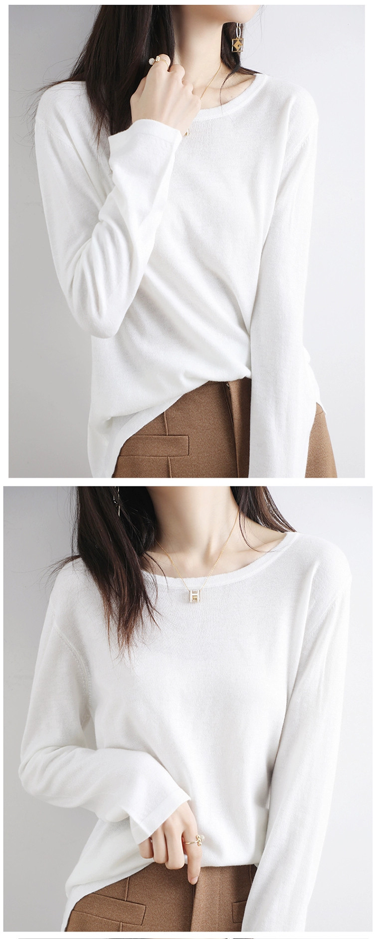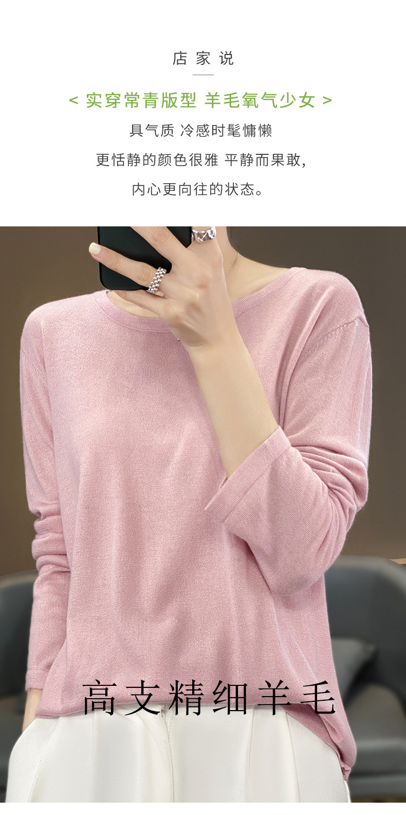 Шерстяной тонкий кашемировый базовый приятный телу свитер с круглым воротником, свободный крой