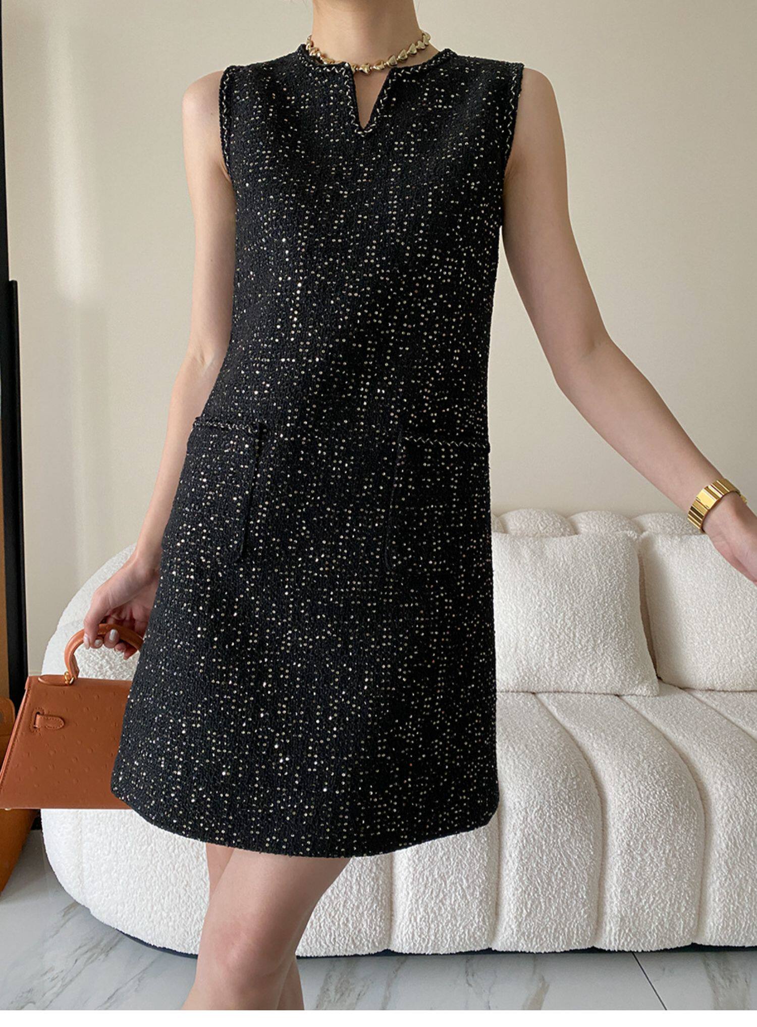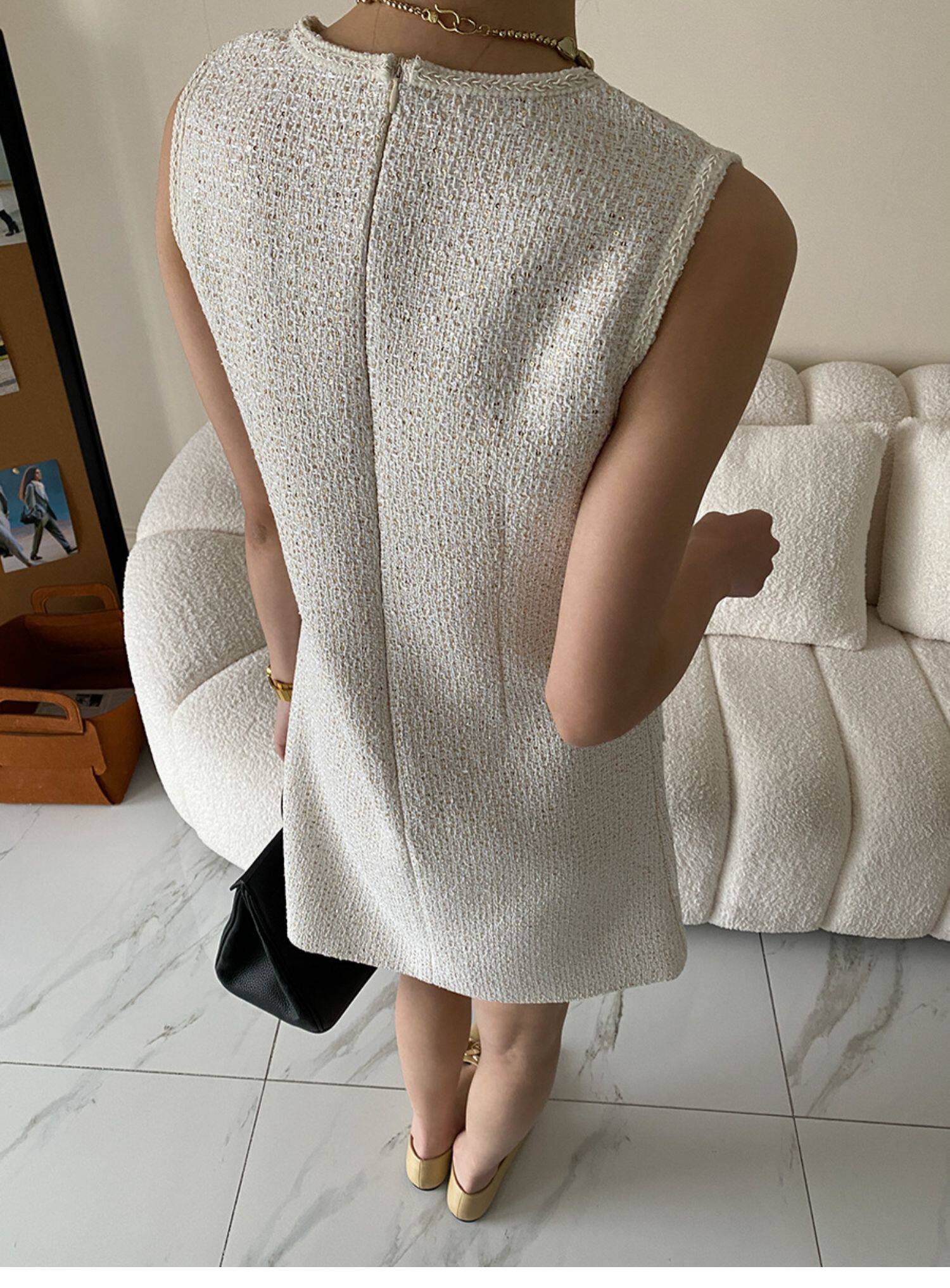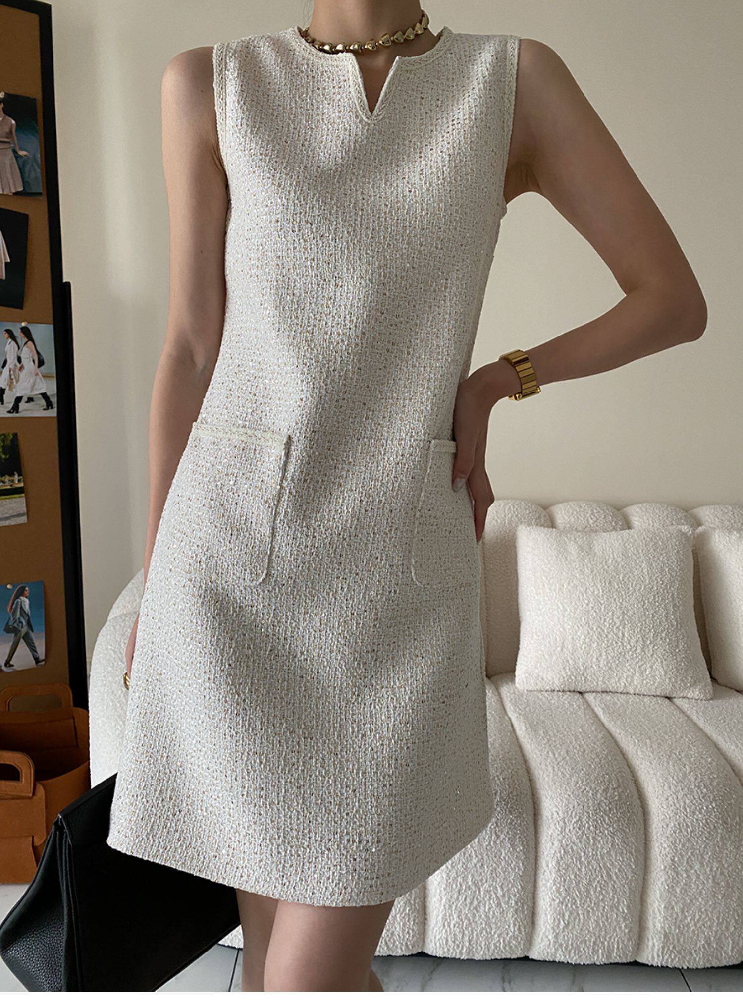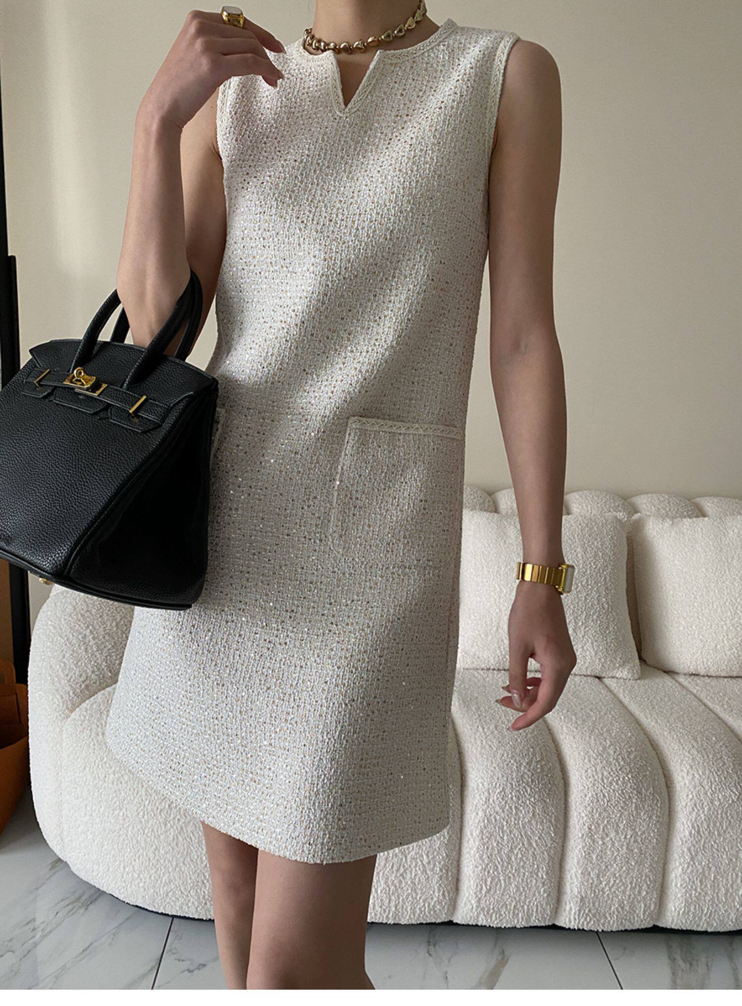 Юбка, платье без рукавов без рукавов, с вышивкой, в стиле Шанель, свободный прямой крой, французский стиль