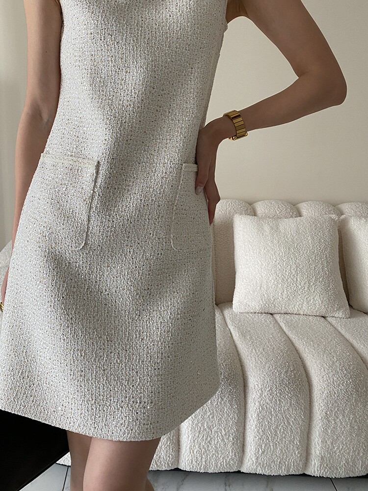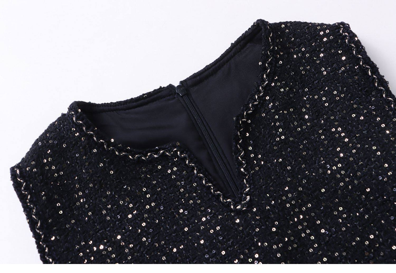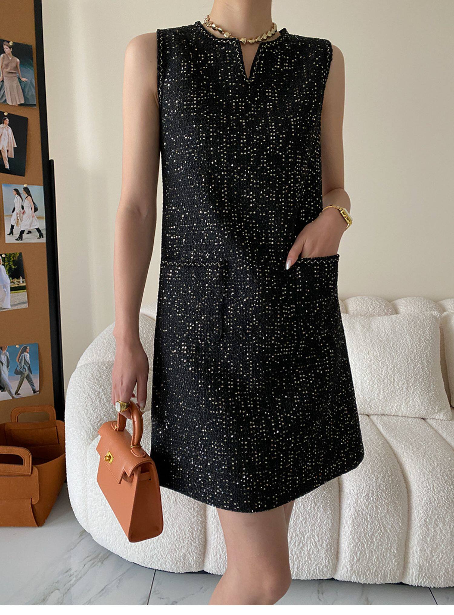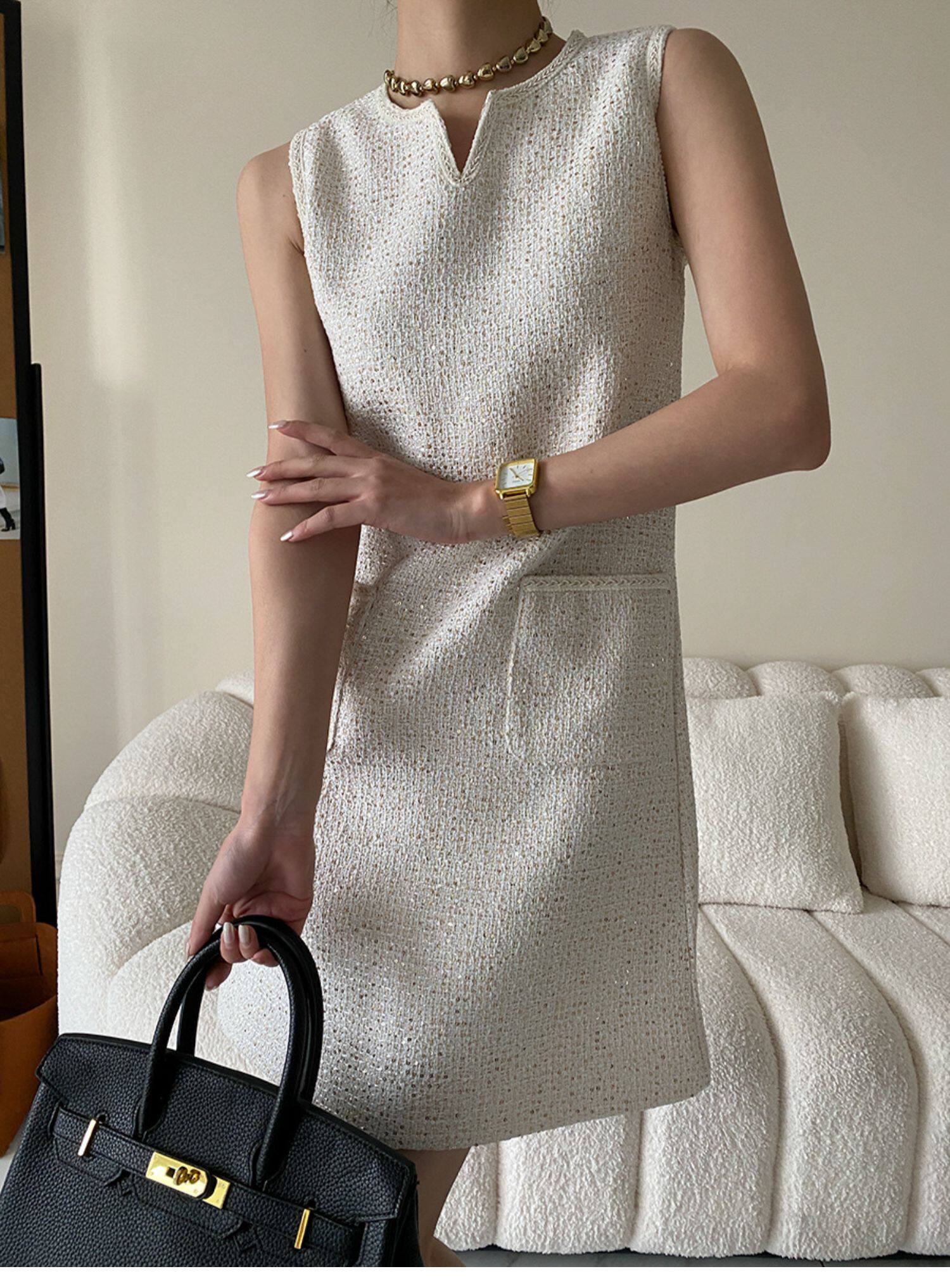 Юбка, платье без рукавов без рукавов, с вышивкой, в стиле Шанель, свободный прямой крой, французский стиль