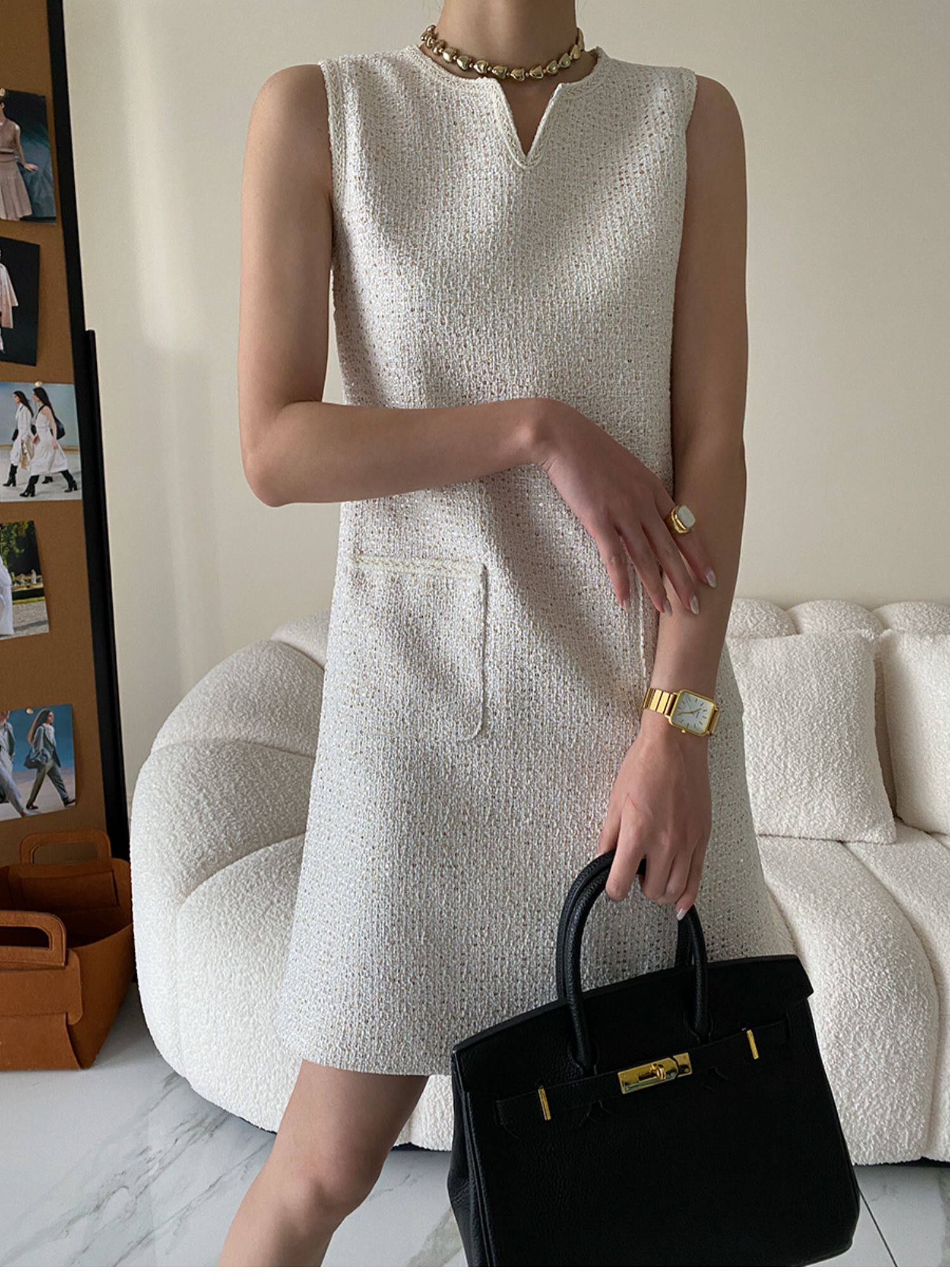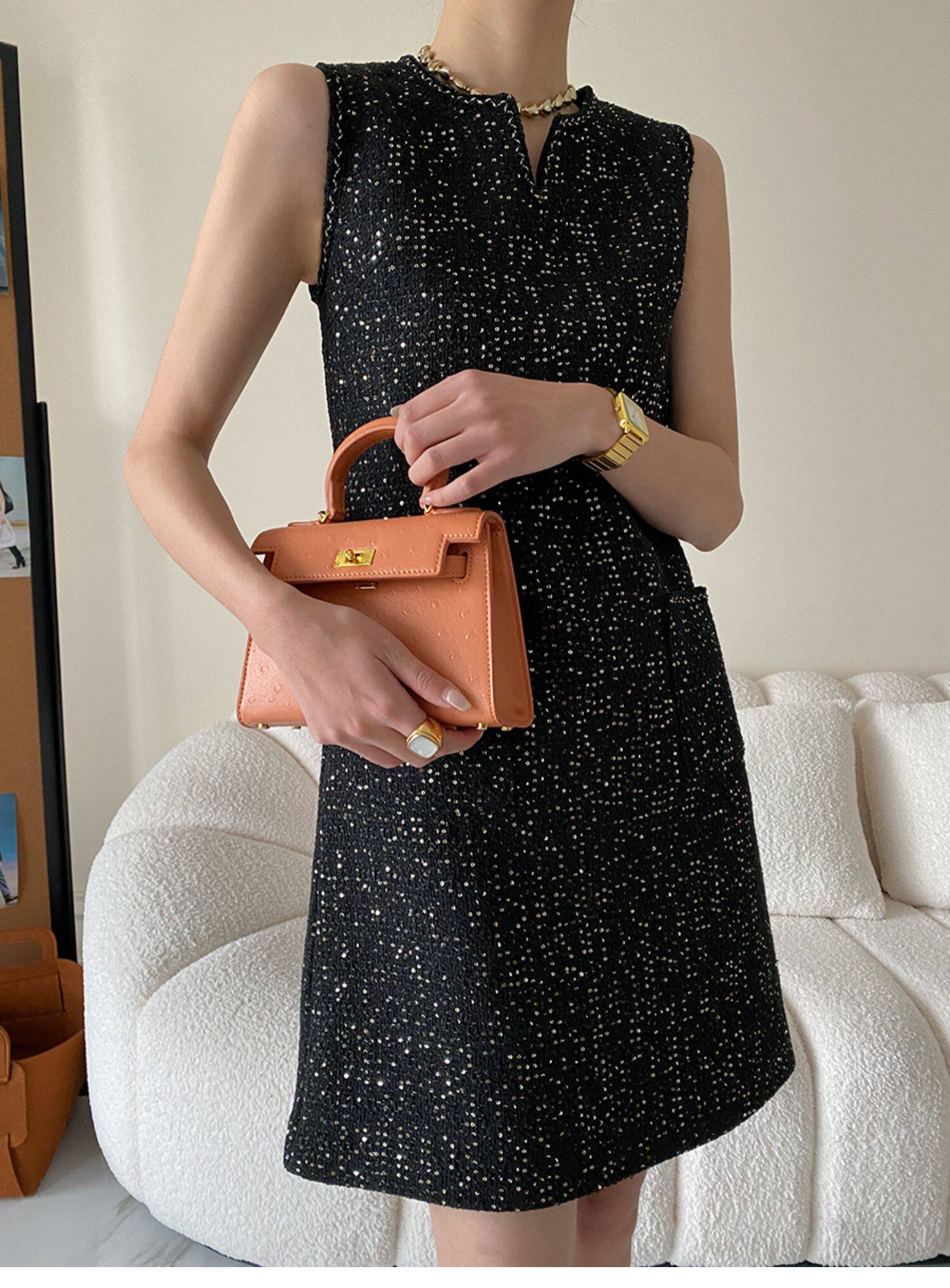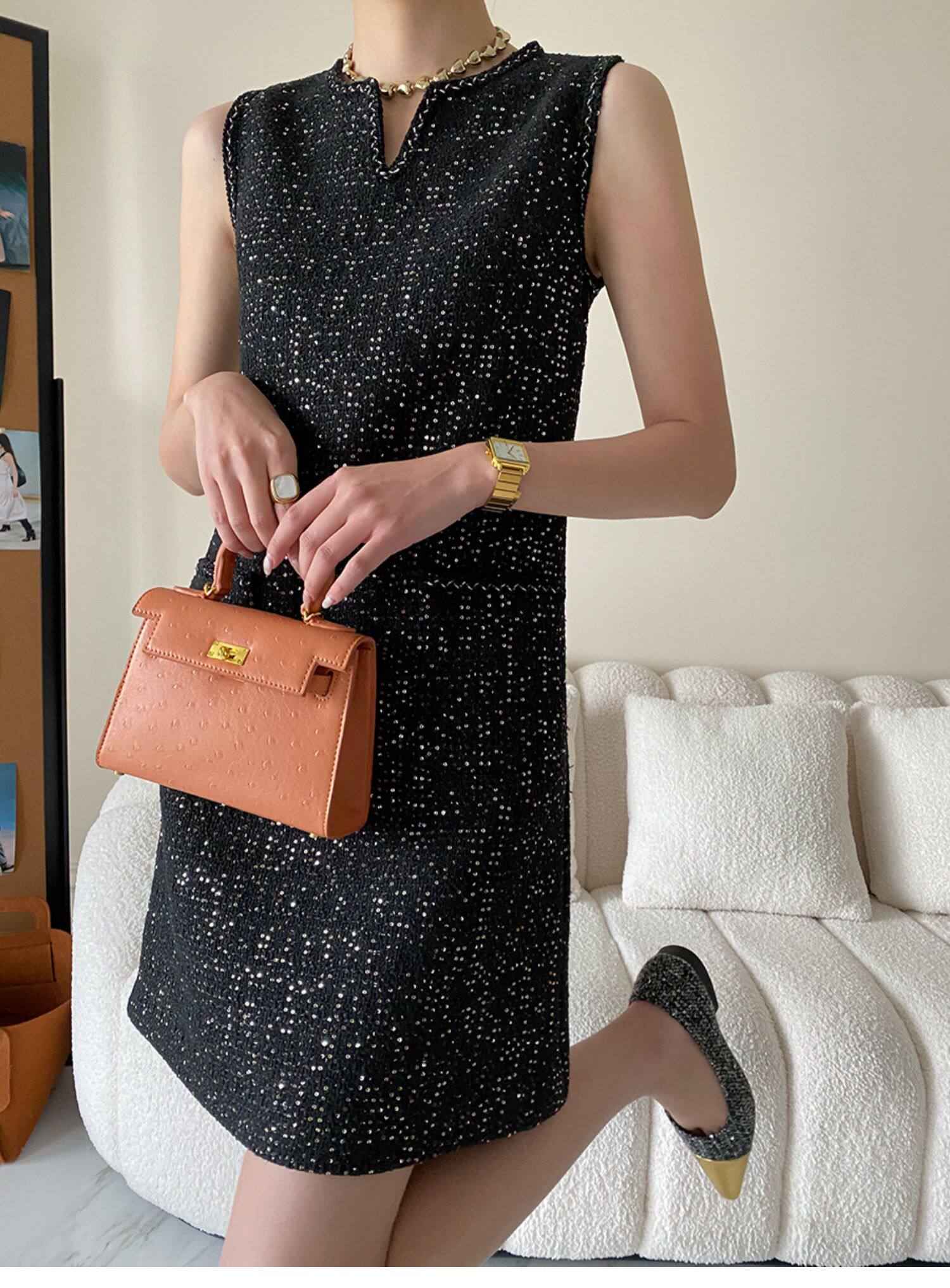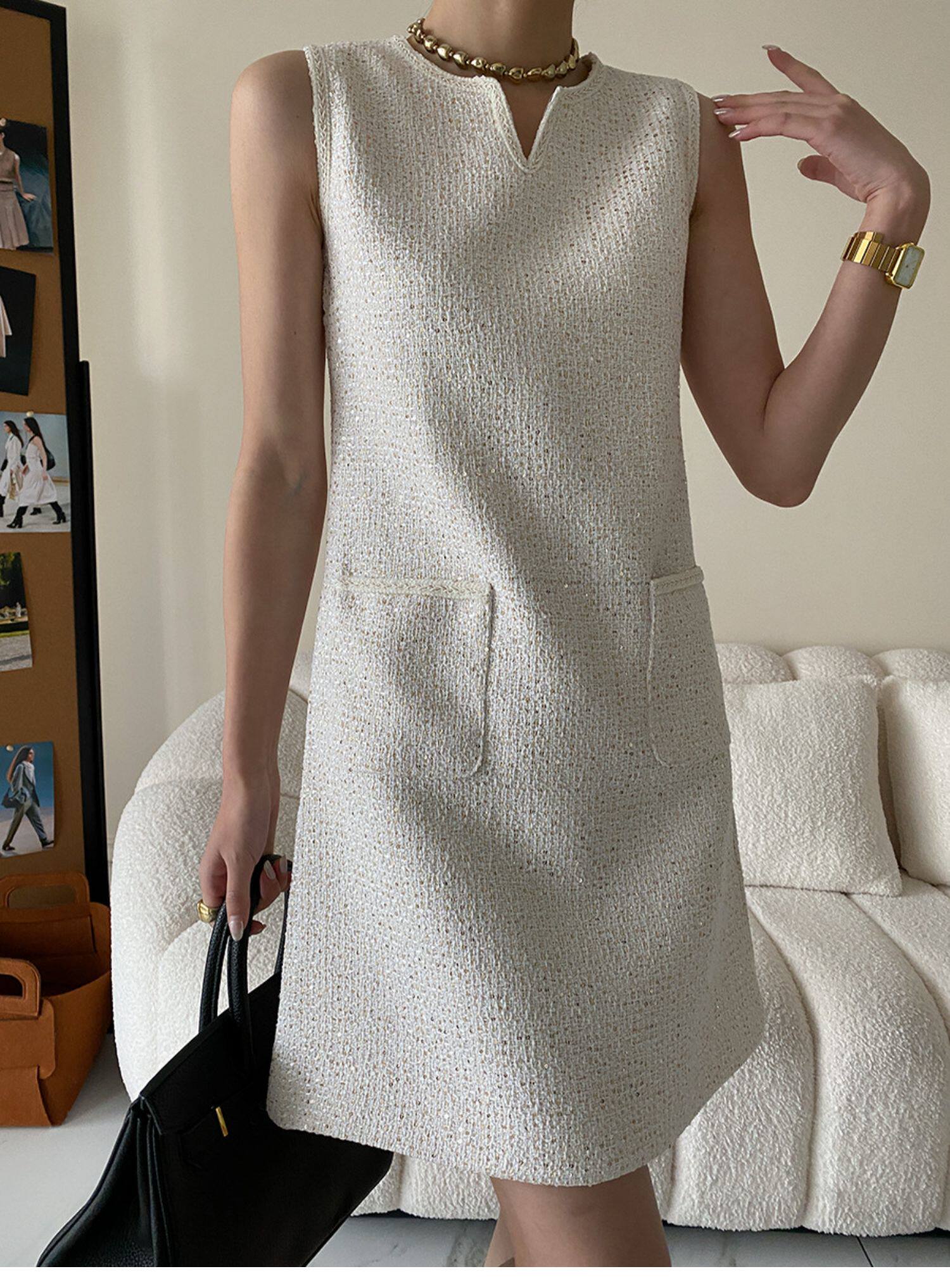 Юбка, платье без рукавов без рукавов, с вышивкой, в стиле Шанель, свободный прямой крой, французский стиль