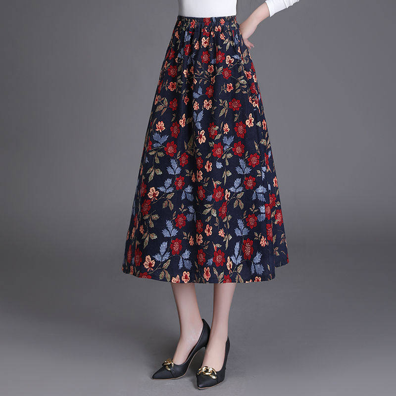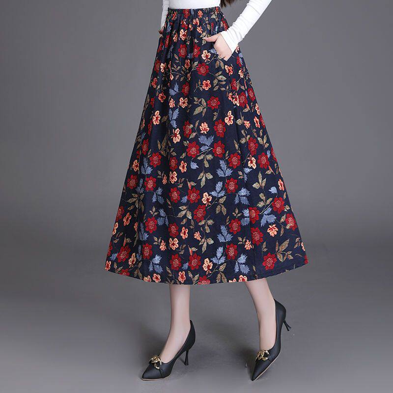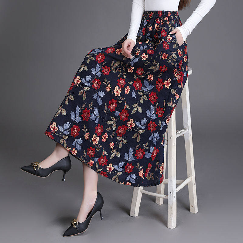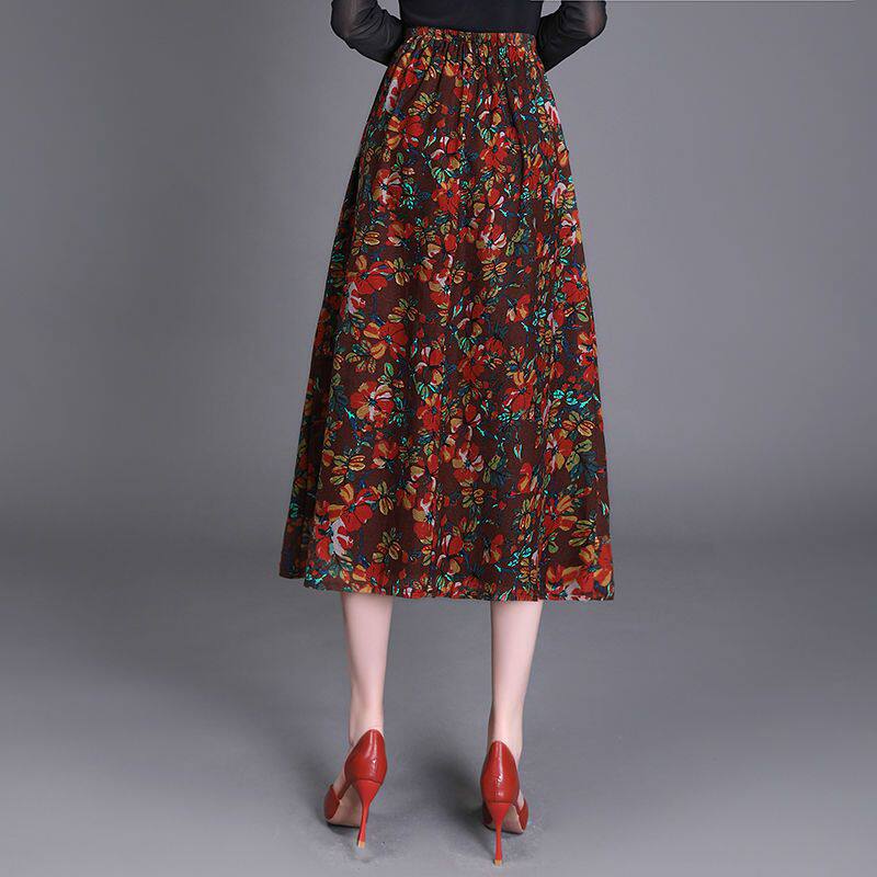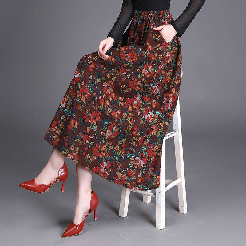 Приталенная ретро летняя длинная юбка, из хлопка и льна, цветочный принт, А-силуэт, средней длины