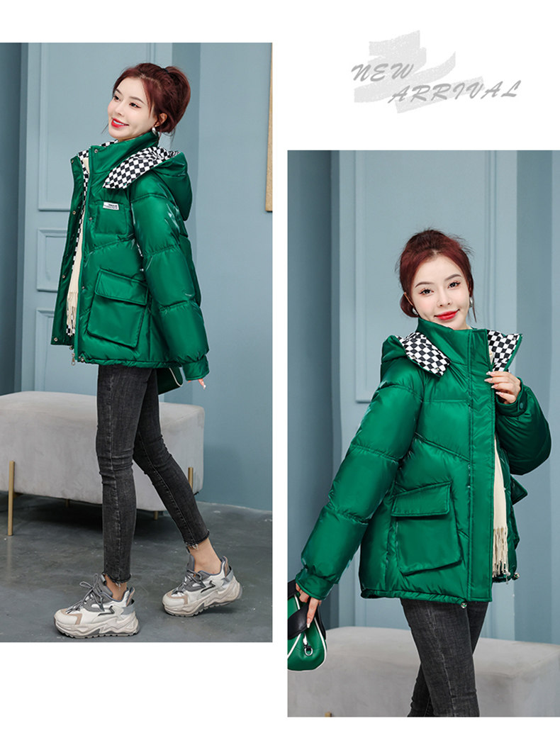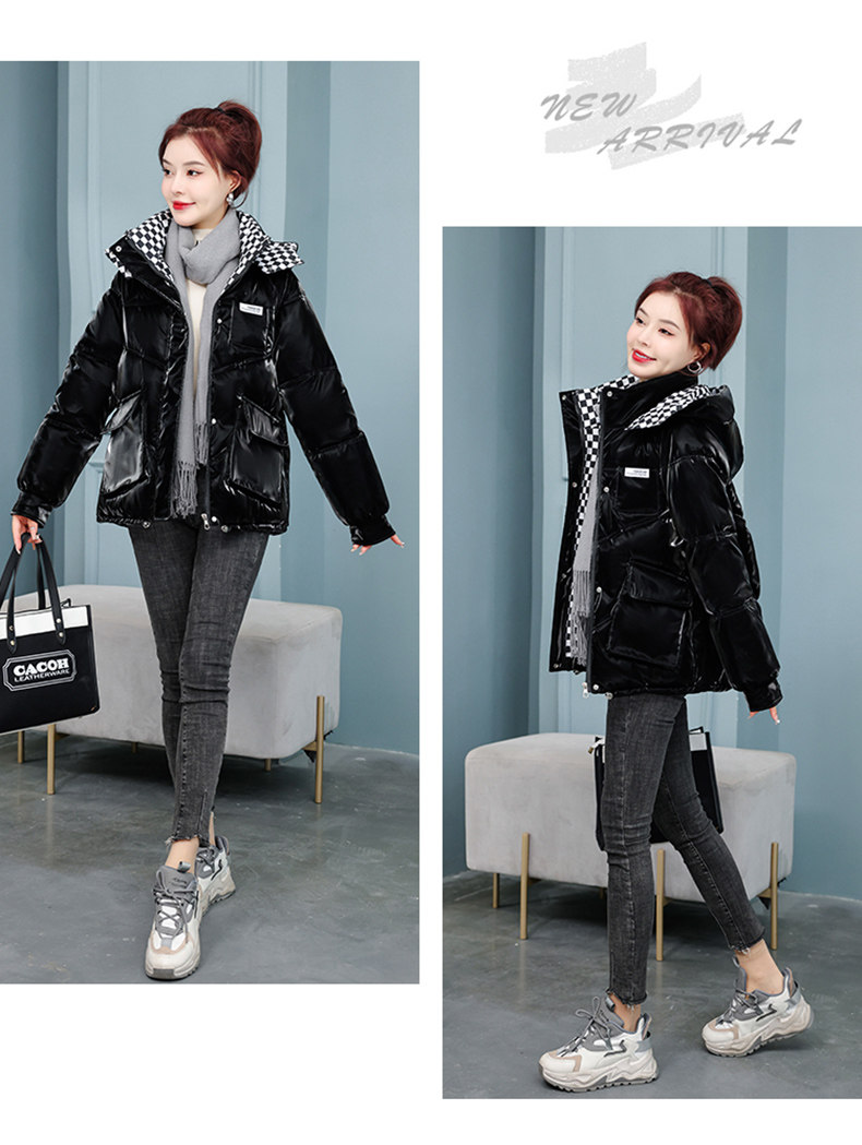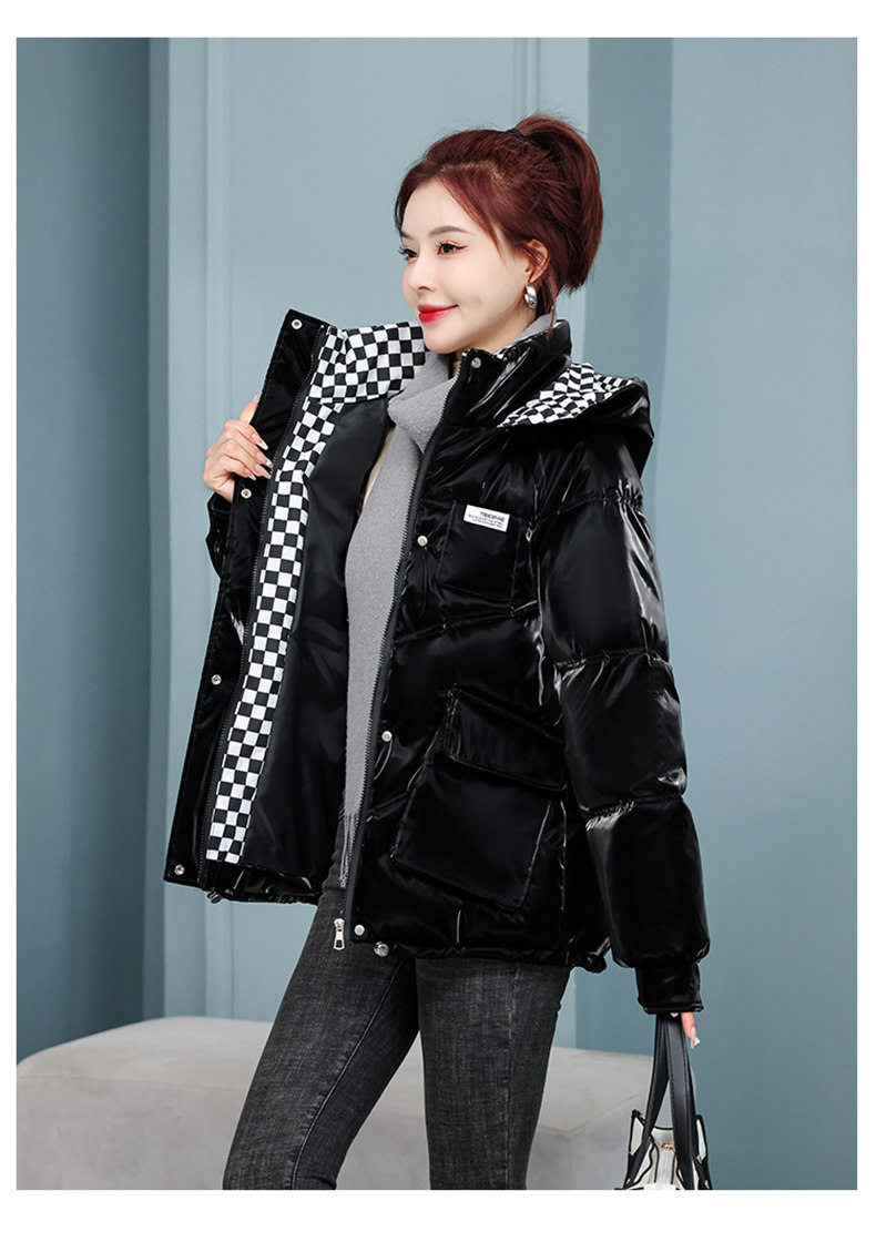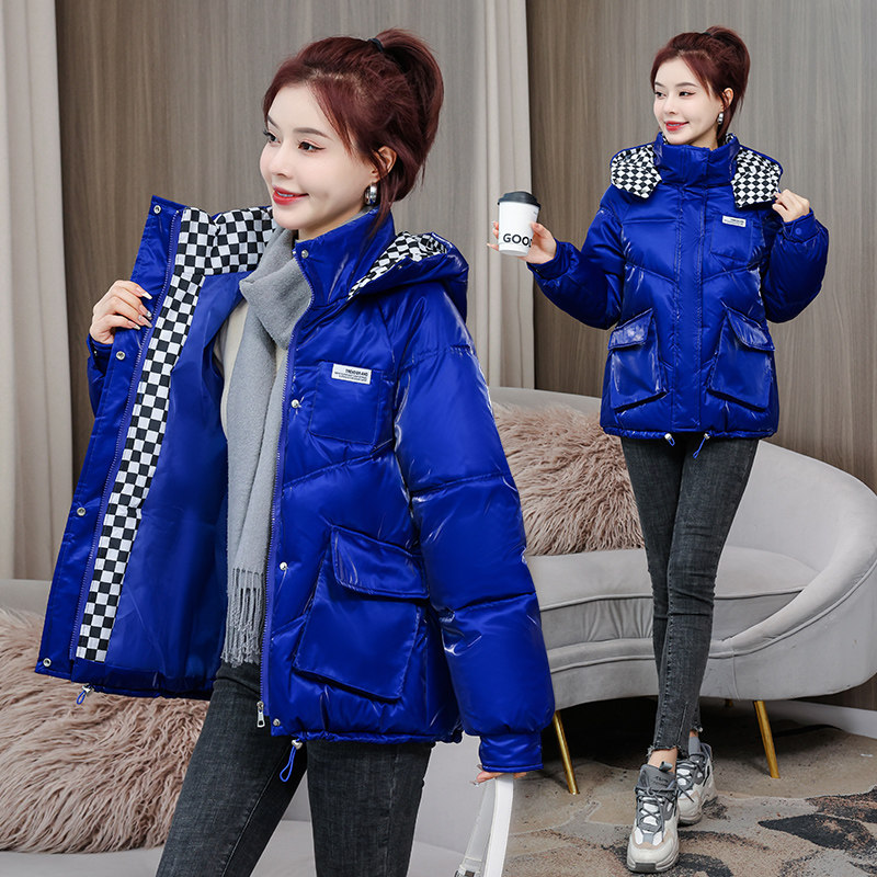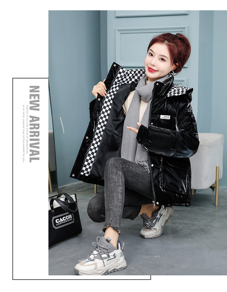 Глянцевые короткие шахматы, пуховик с пухом, куртка, новая коллекция, свободный крой, подходят для подростков