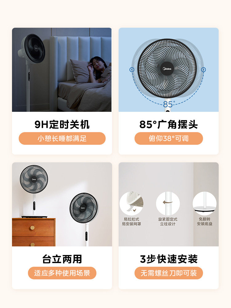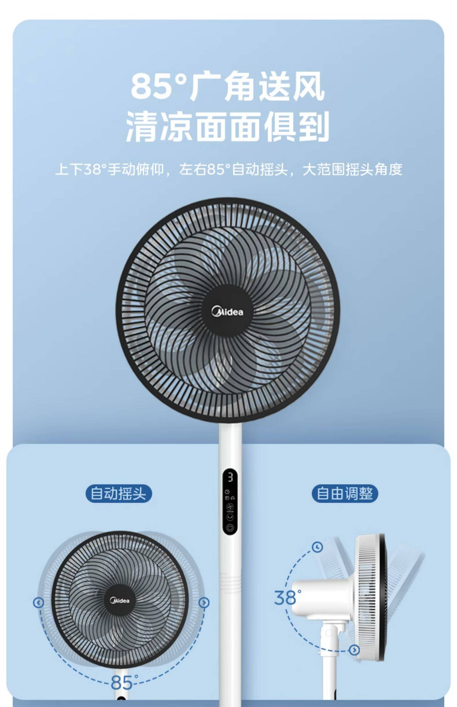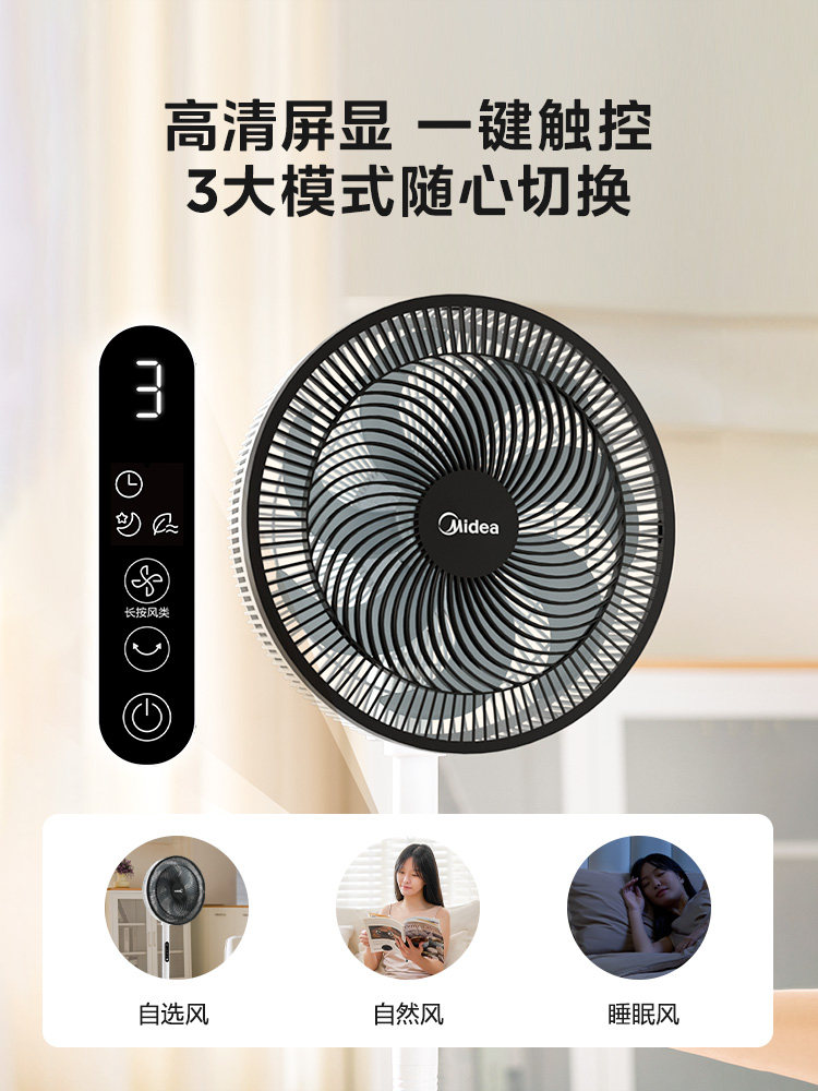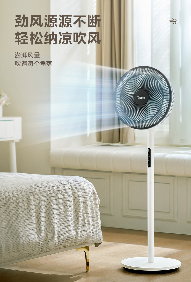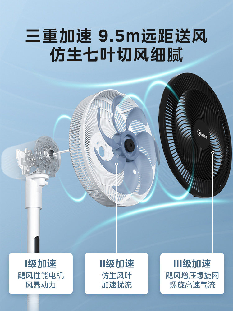 Midea Electric Fan Home Landing Fan Light Sound, сильный ветер, энергия энергии, встряхивание спальни, тайваньский двойной пульт дистанционного управления вентилятором дистанционного управления