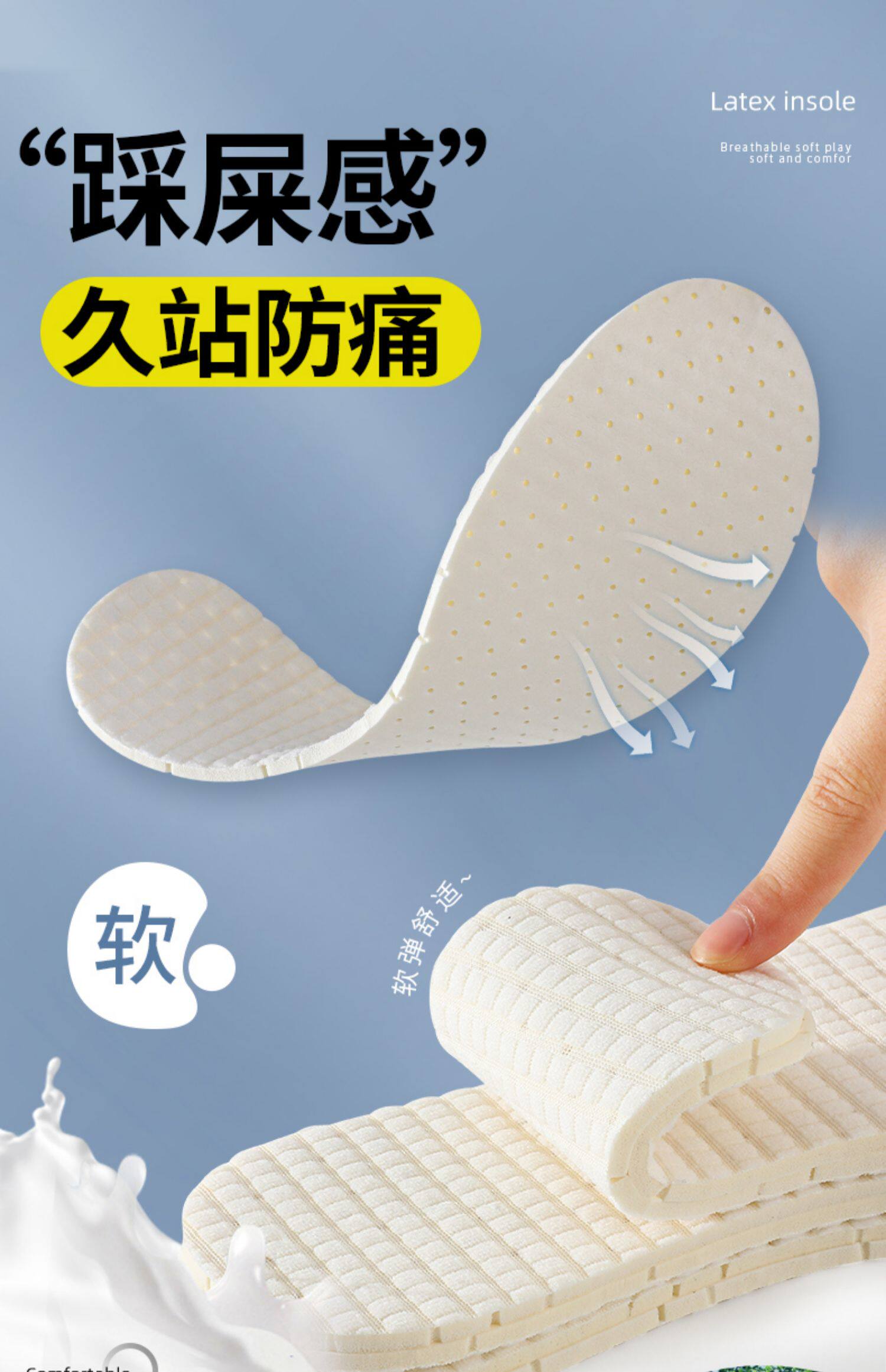 Латексные нескользящие коньки, ультратонкие дышащие противоболевые стельки, впитывают пот и запах