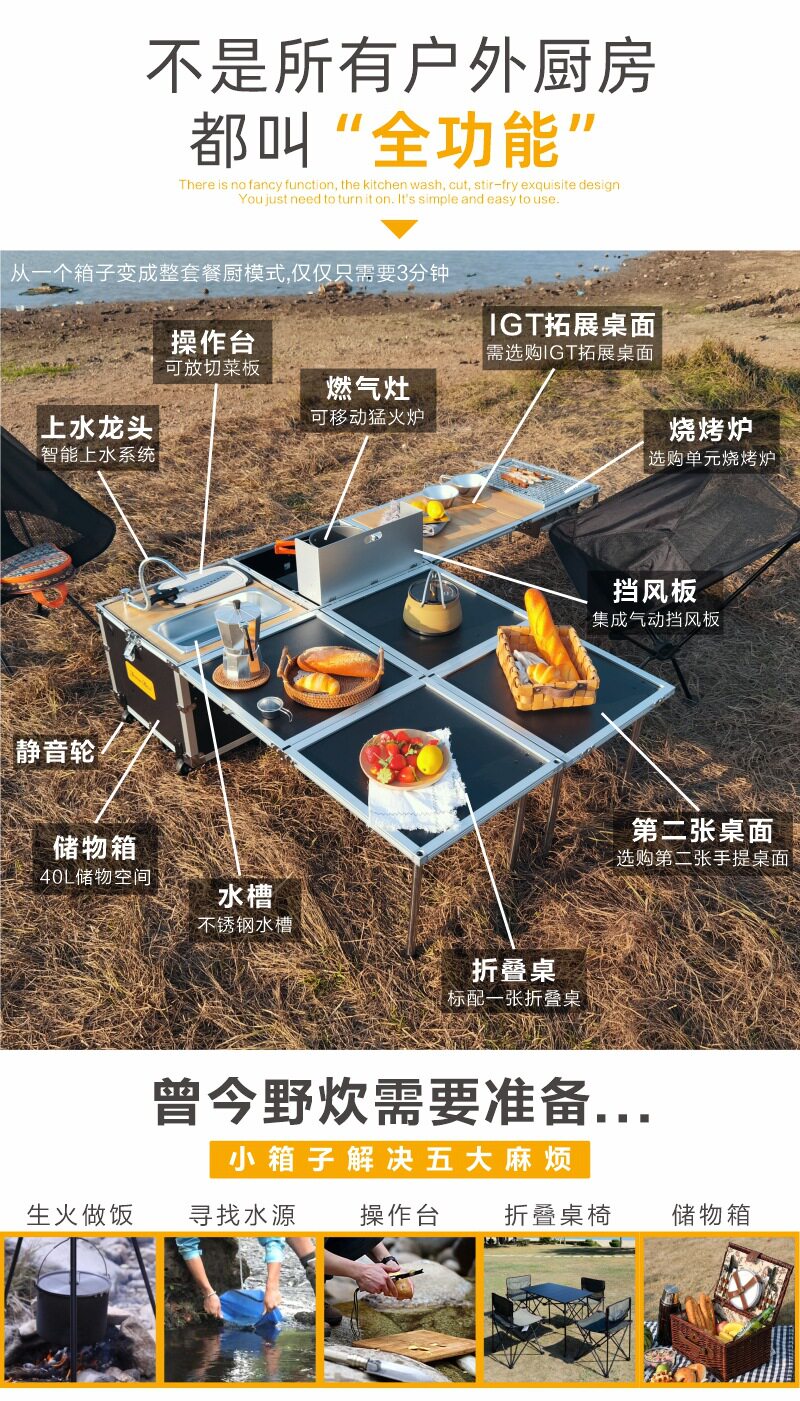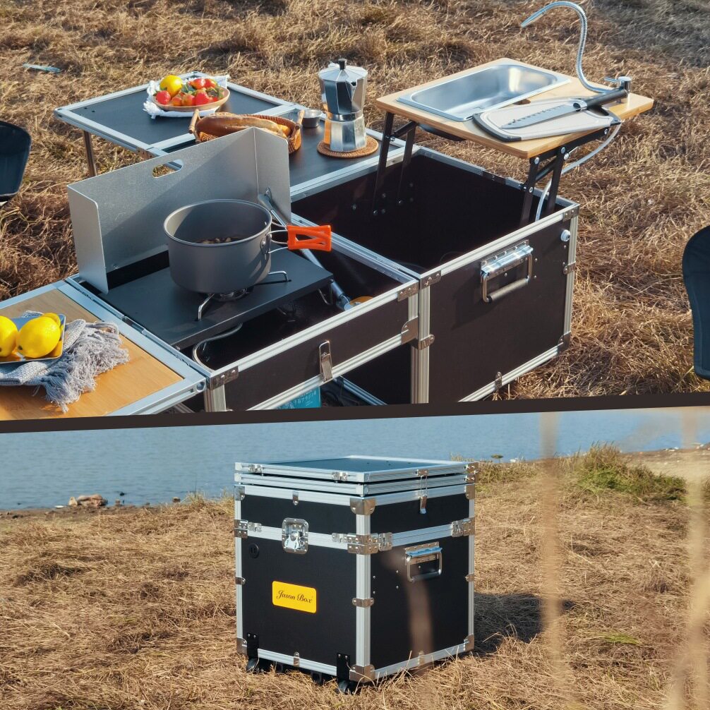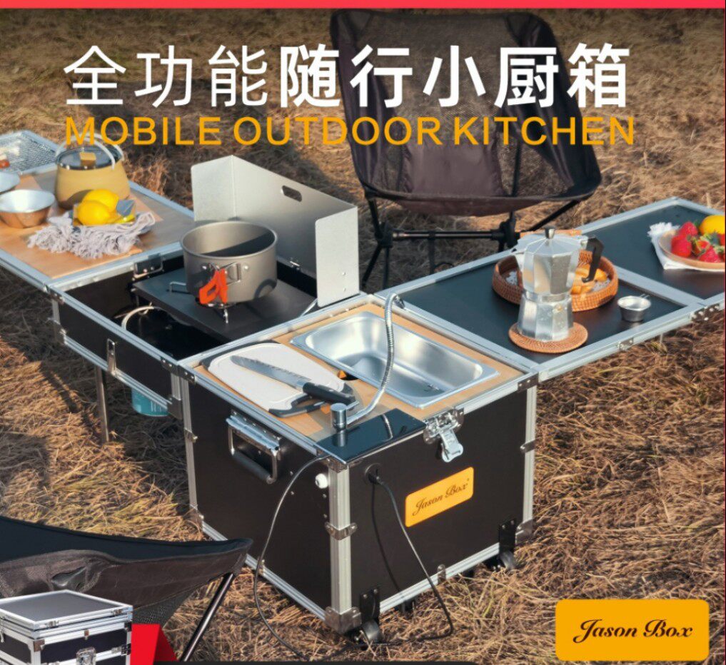 На открытом воздухе мобильная кухня полная -созданная сопровождающая кухонная коробка роса лагерь дикая кулинарная печь