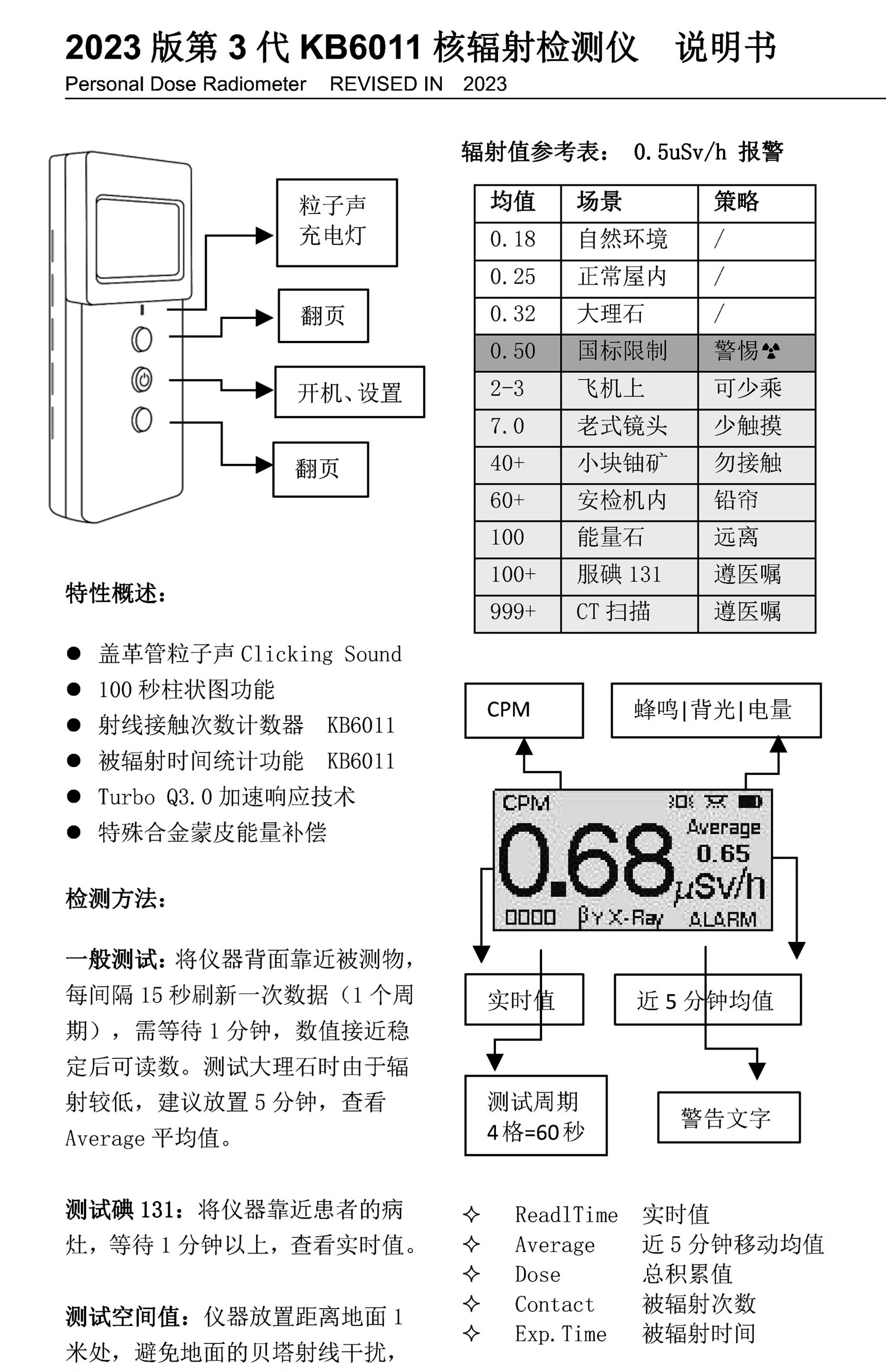 KB6011 Прибор для обнаружения ядерного излучения покрывает звук частицы кожи