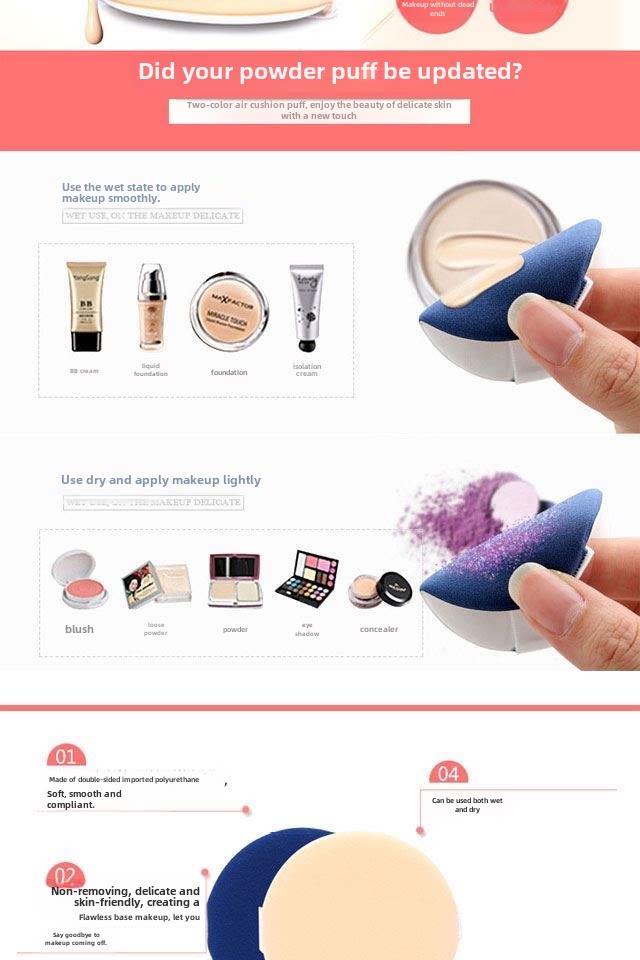 Поролоновый спонж, пудра, кондиционер, база под макияж, тональный крем