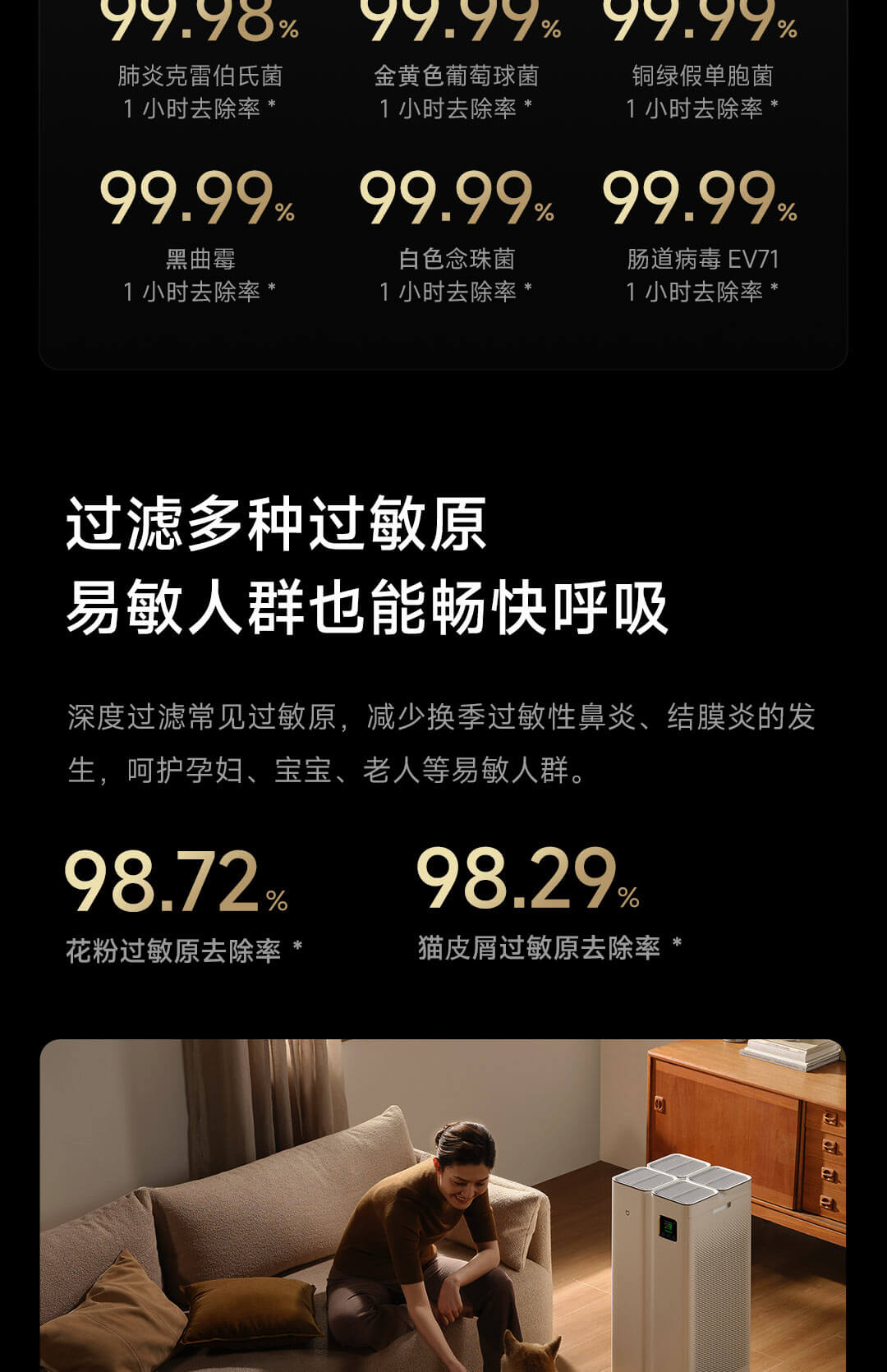 Xiaomi Guanqi Mijia Полно -эффектный очиститель воздуха Дом аллергический дивизион вируса Delair Littal Formaldehyde Plee Petryer