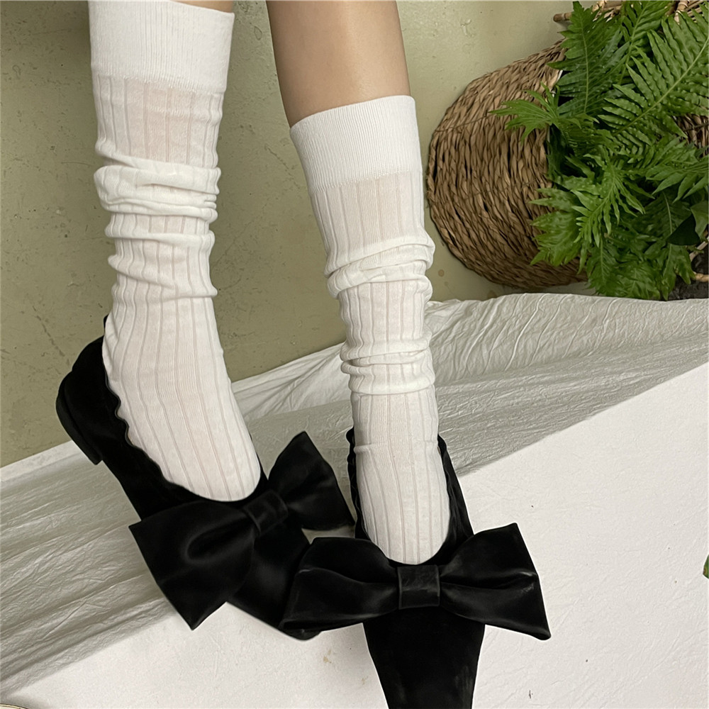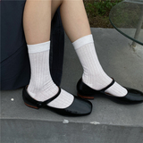 Японская корейская куча чулок ретро -тонкие хлопковые серого носки телят весенние, ленивые черно -белые носки средней стороны, дети