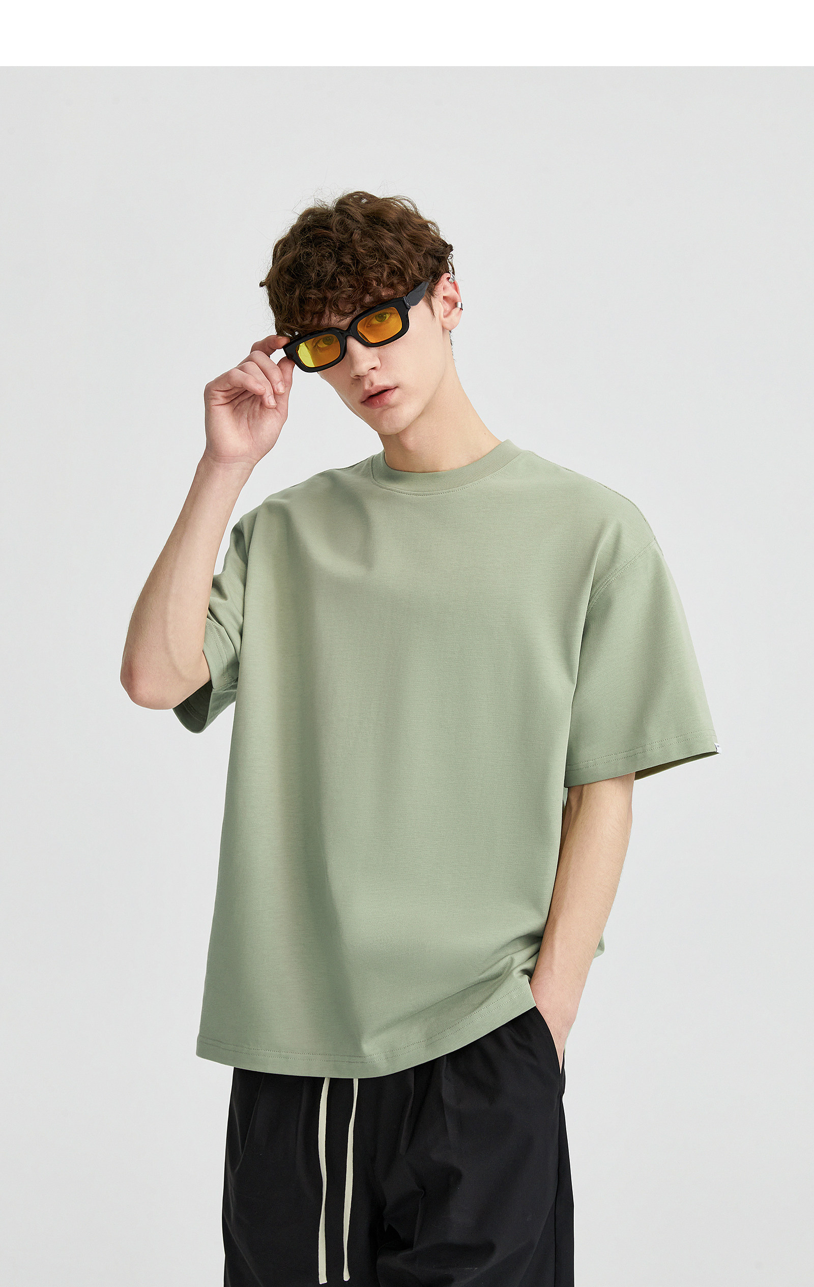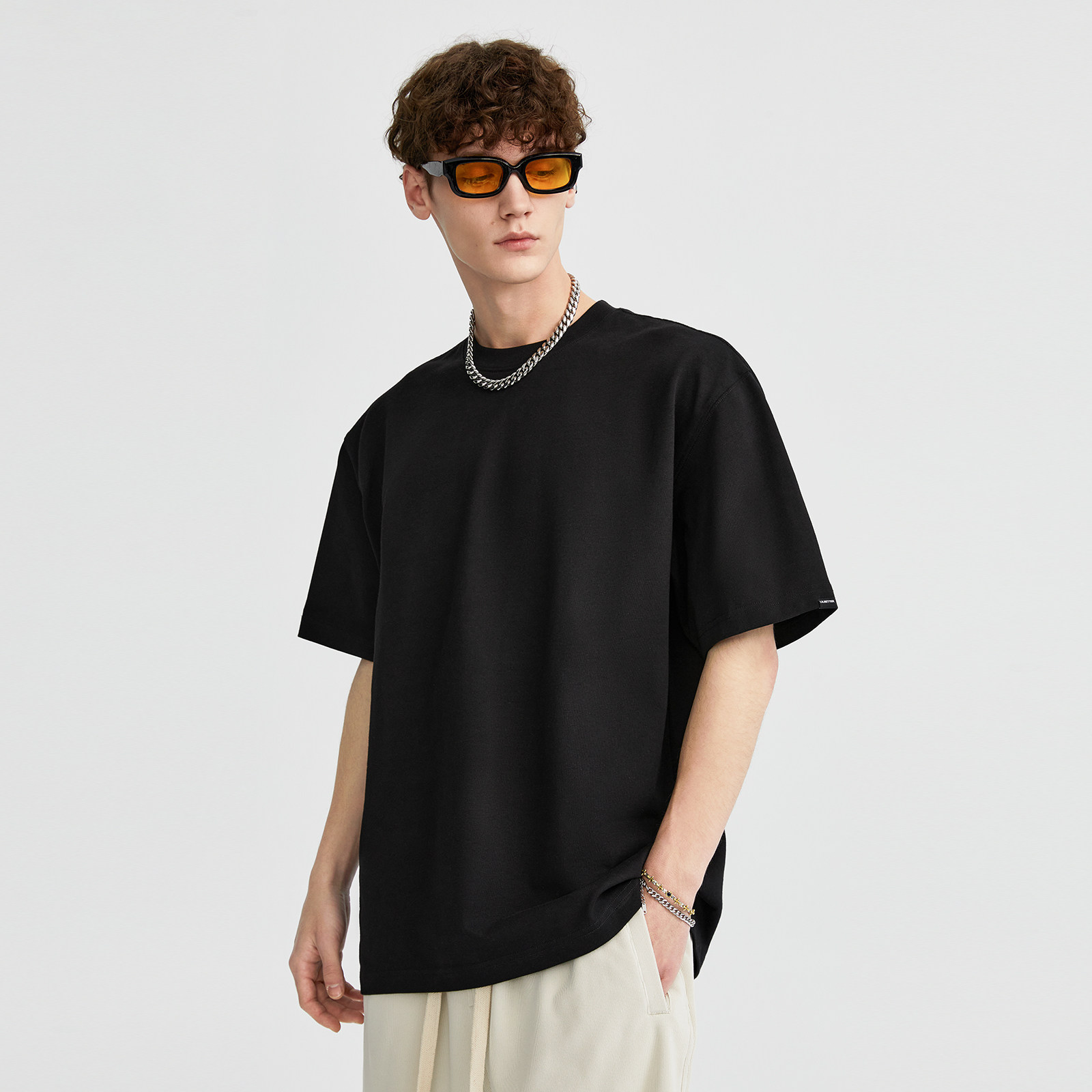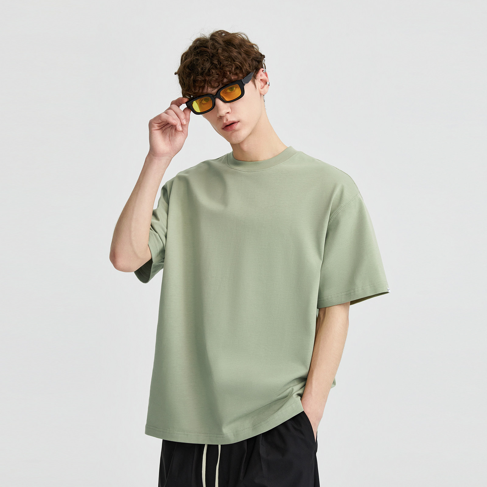 LILBETTER310G Тяжелый твердый цвет T -Fish Oversatile Men's High -Level Sensory Pure Cotth Hetke Semi -Semeve Summer Street Короткие рукава