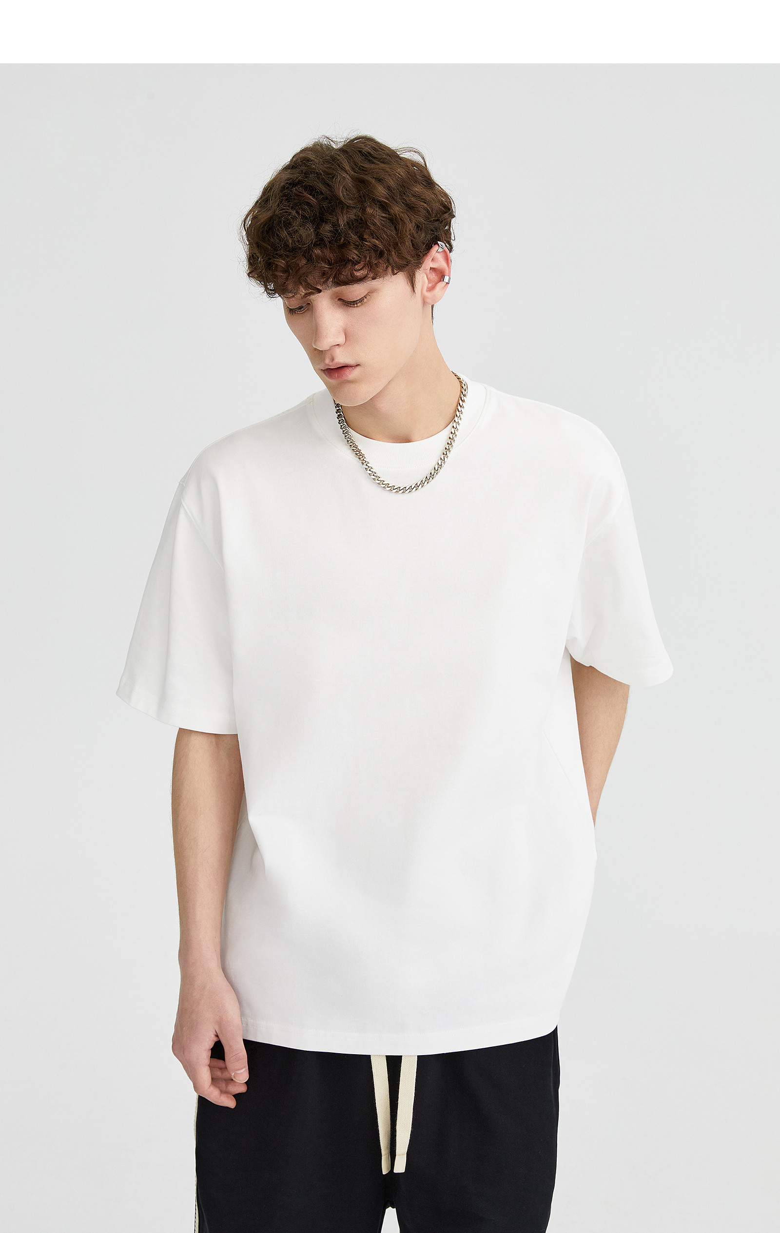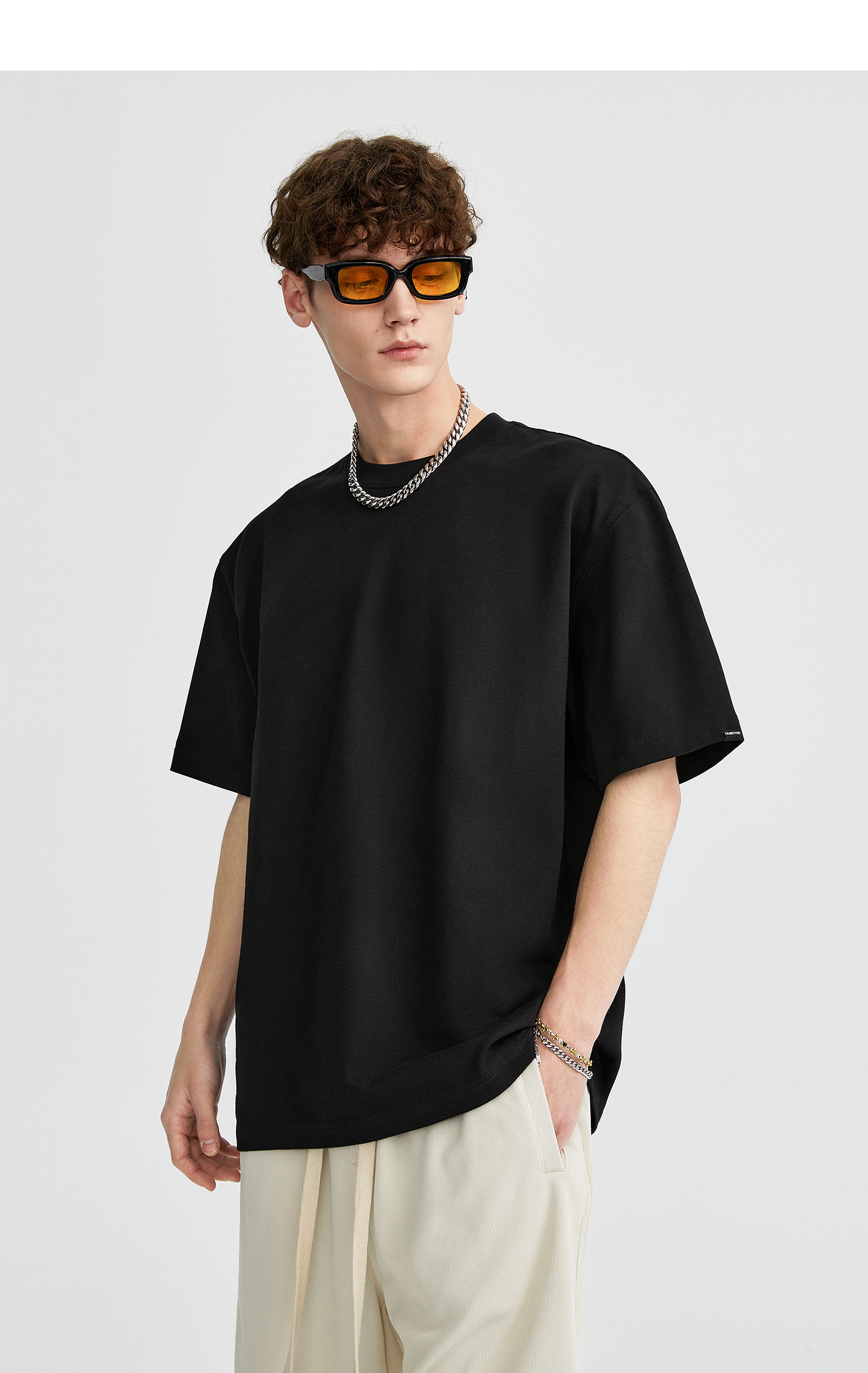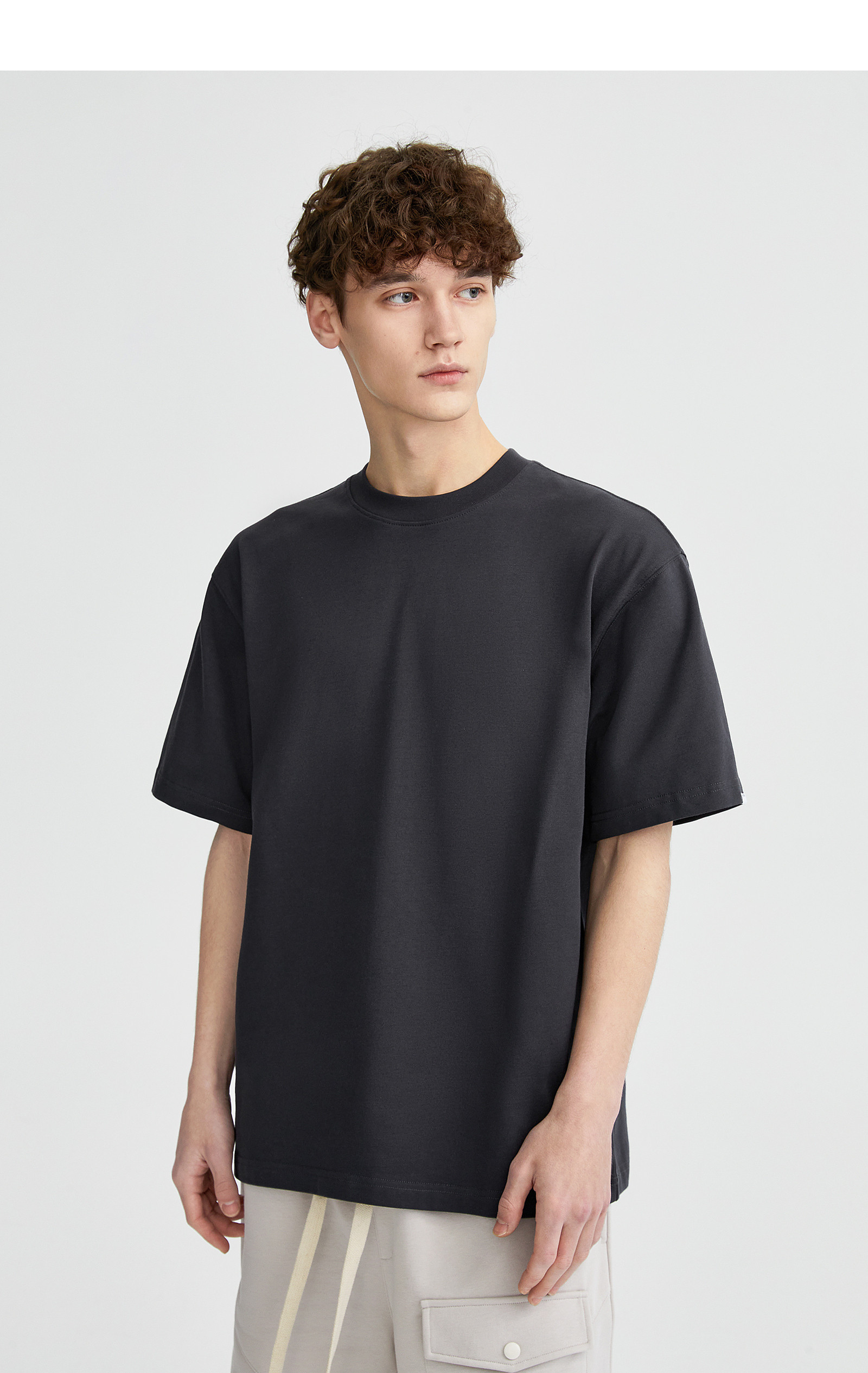 LILBETTER310G Тяжелый твердый цвет T -Fish Oversatile Men's High -Level Sensory Pure Cotth Hetke Semi -Semeve Summer Street Короткие рукава