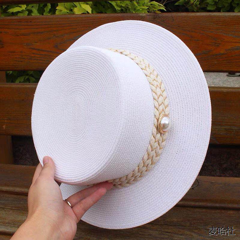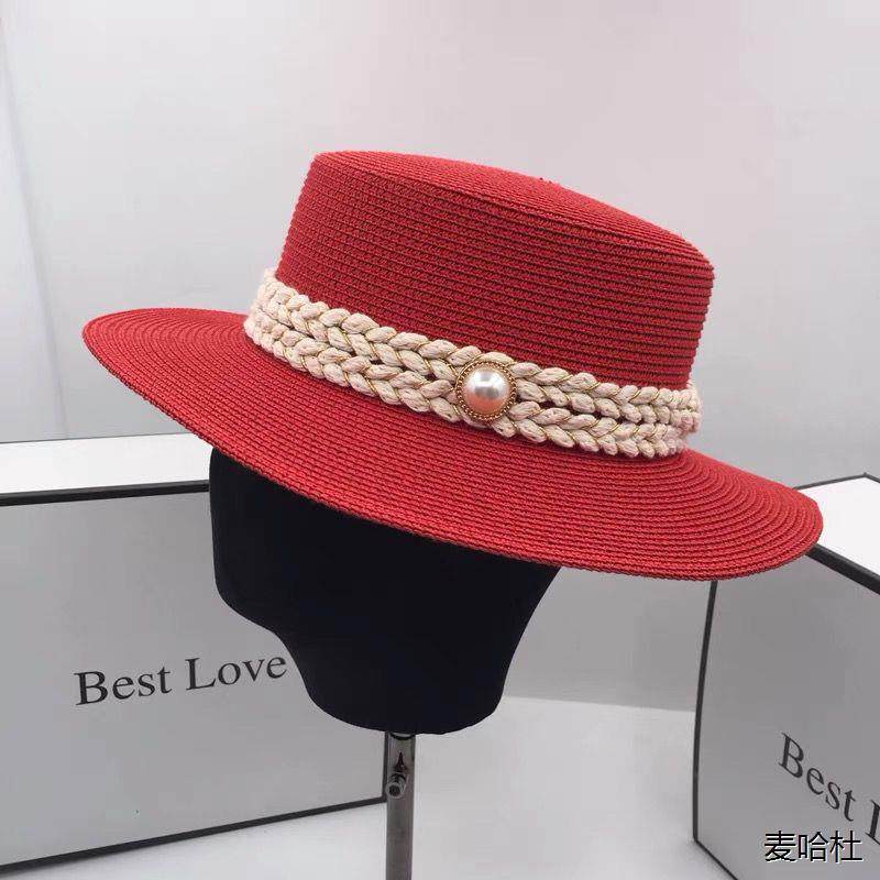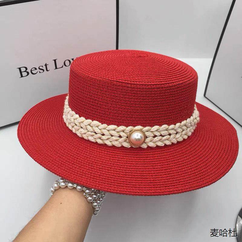 [春夏天新款海边度假沙滩帽防晒小香风红色名媛时尚平顶平檐礼帽潮]