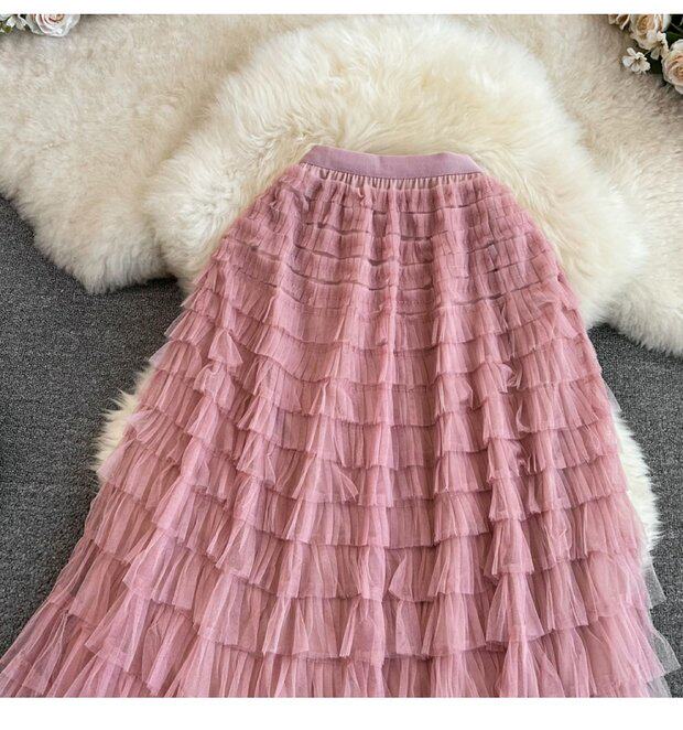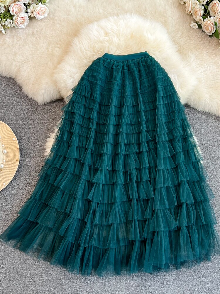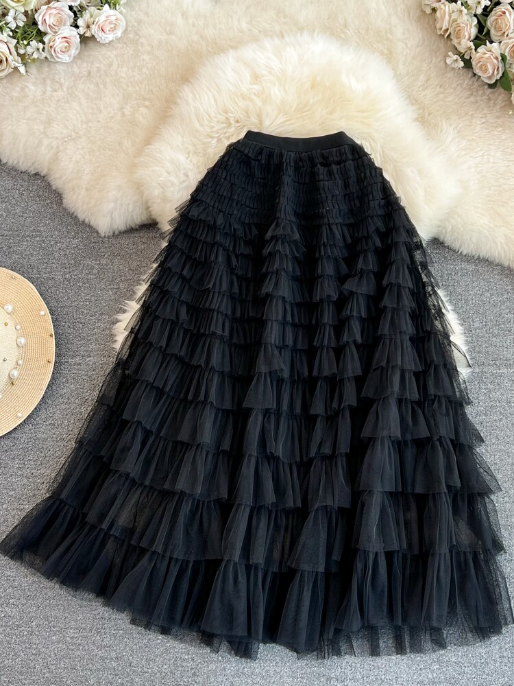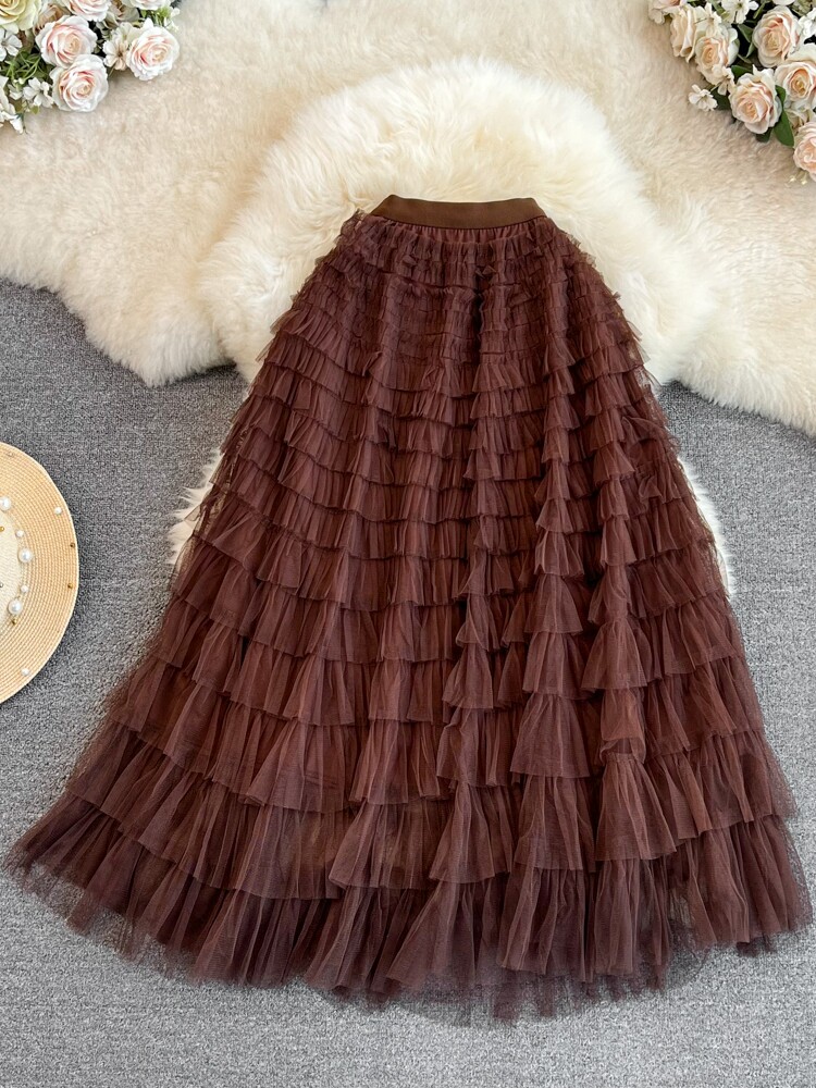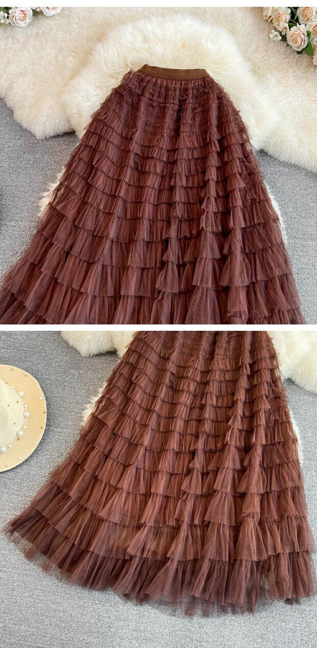 Милая длинная юбка, эластичная талия, А-силуэт