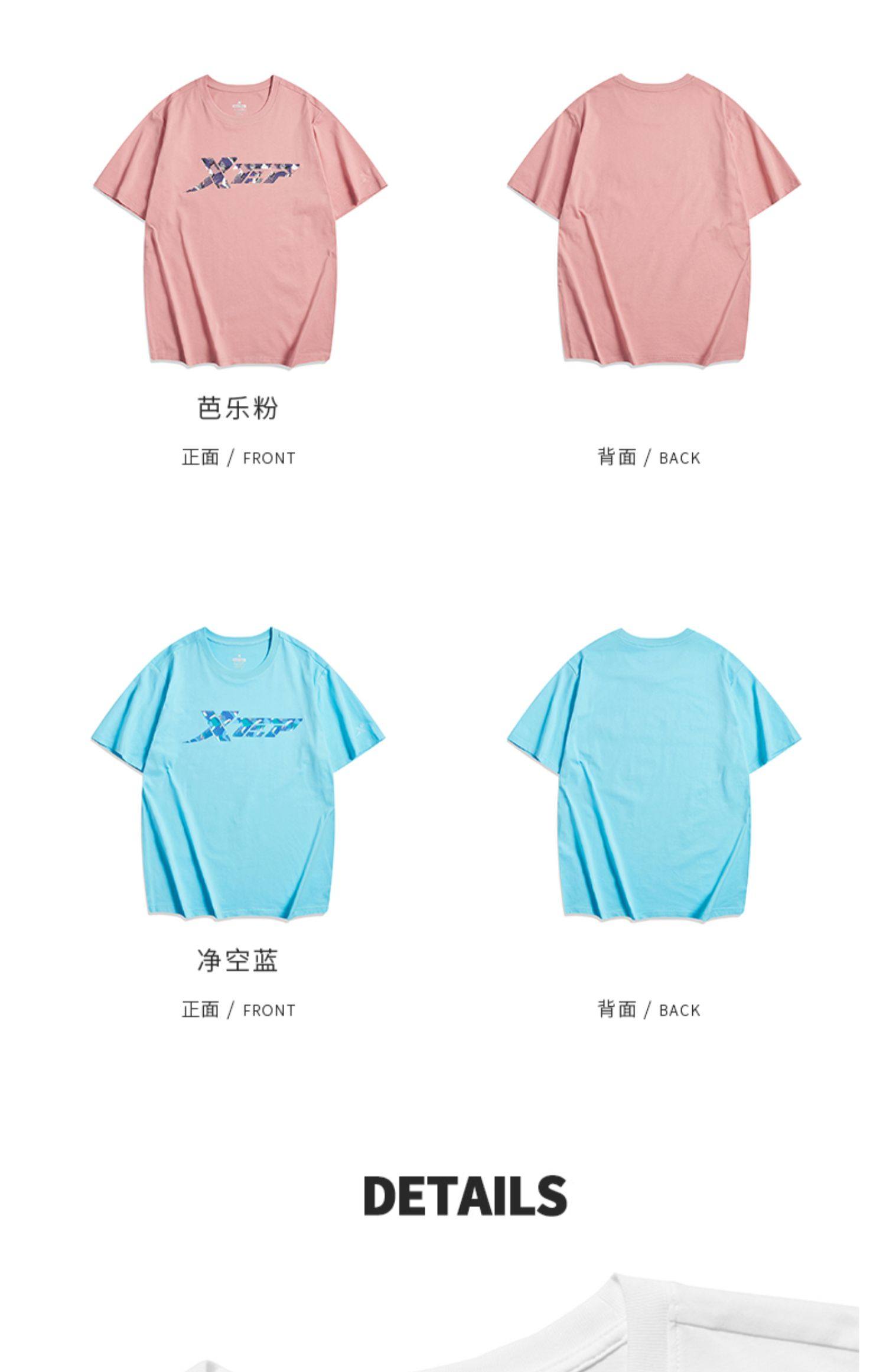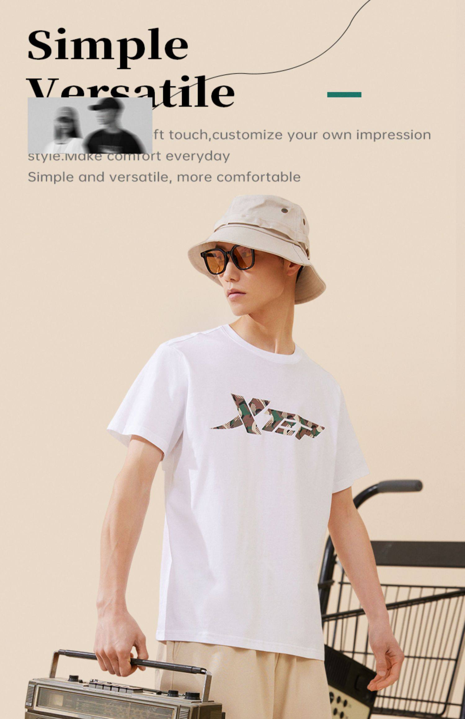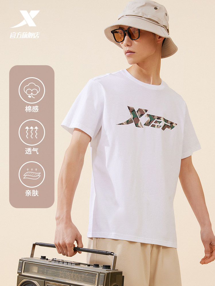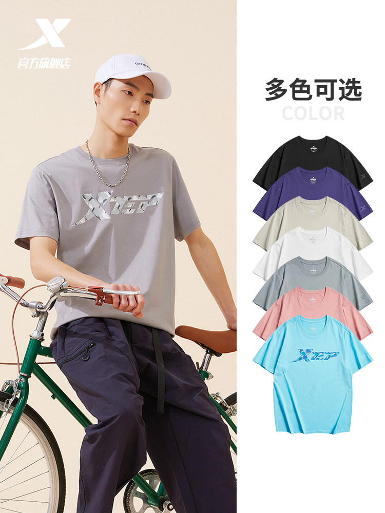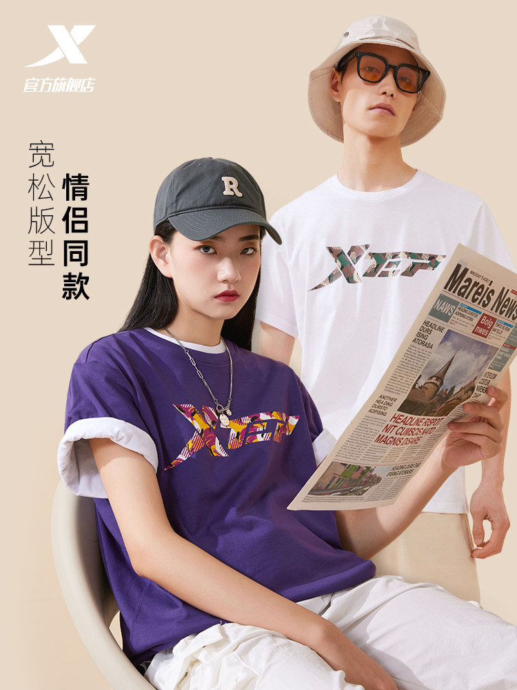 Xtep, трендовая спортивная футболка подходит для мужчин и женщин для влюбленных для отдыха, короткий рукав