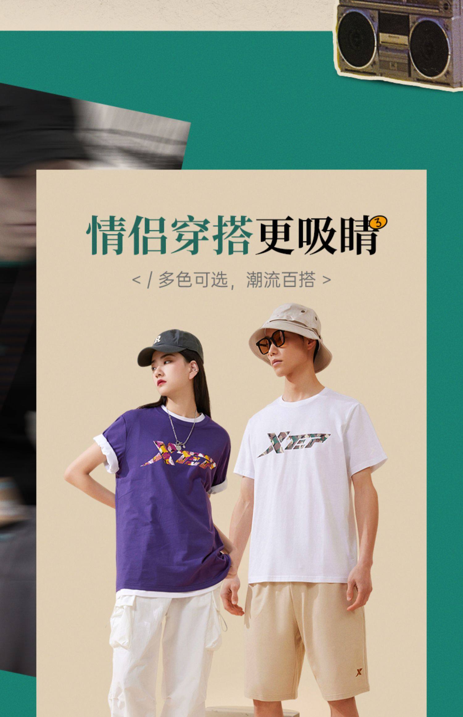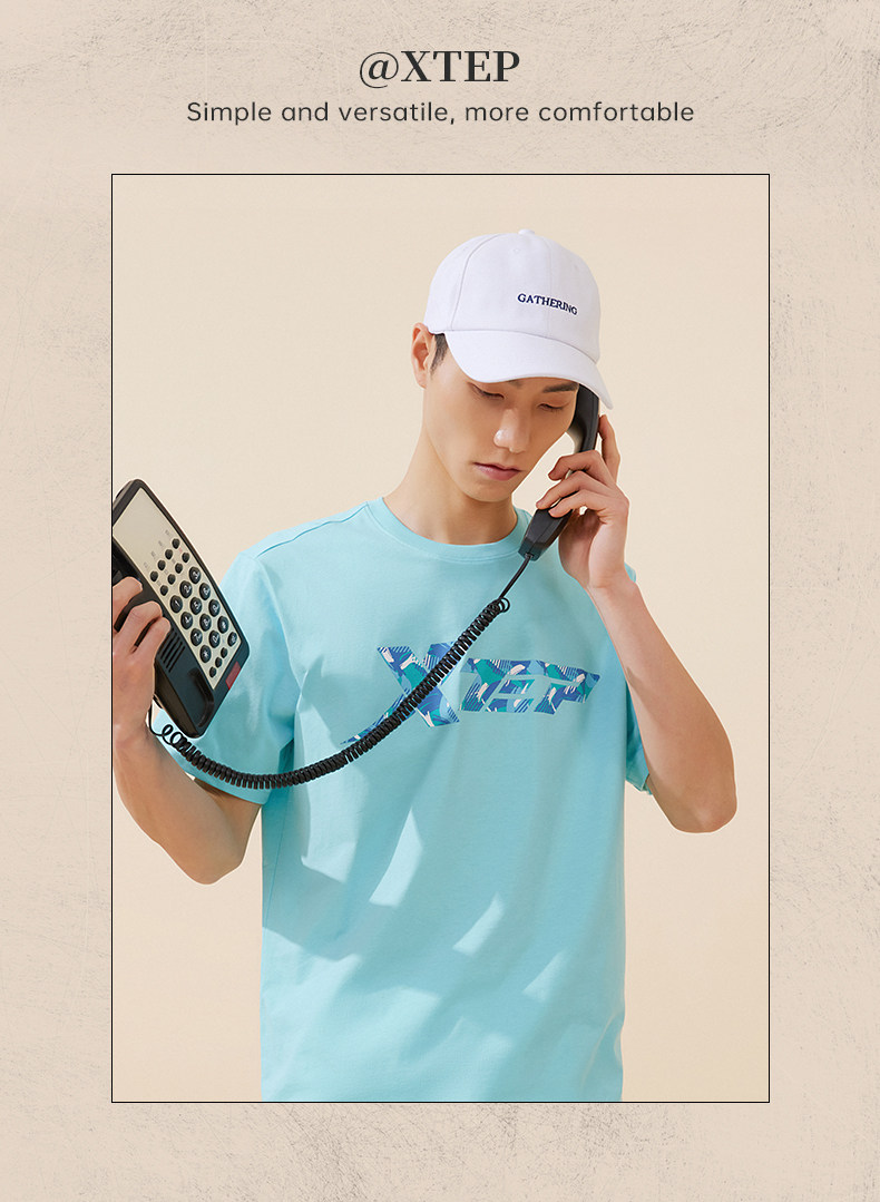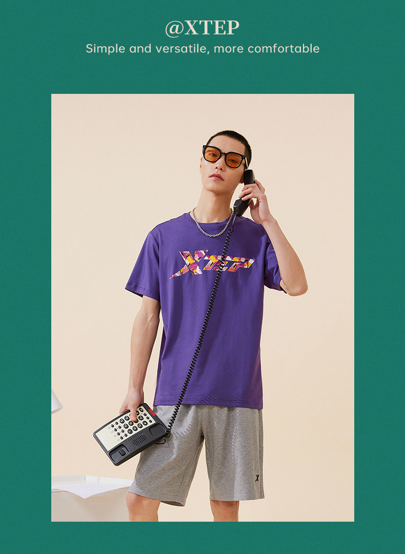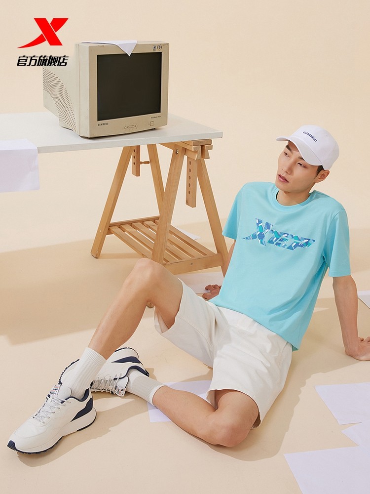 Xtep, трендовая спортивная футболка подходит для мужчин и женщин для влюбленных для отдыха, короткий рукав