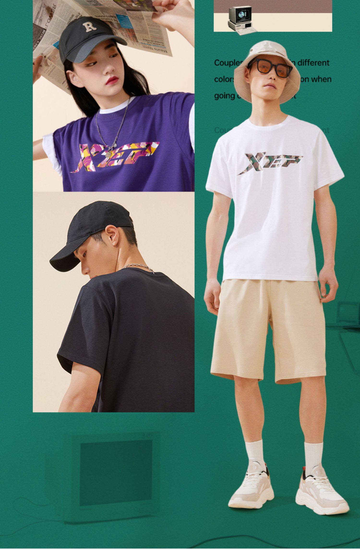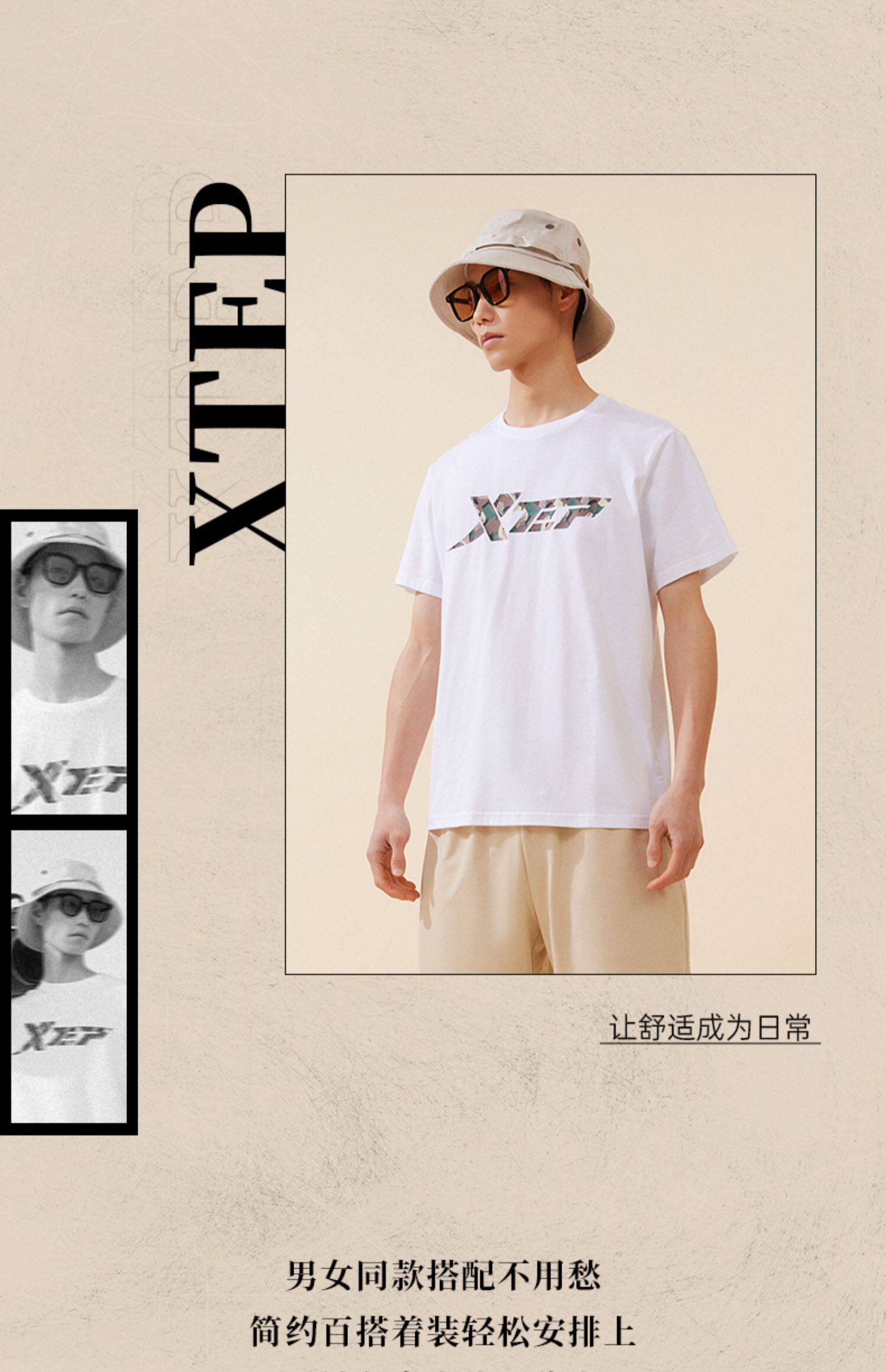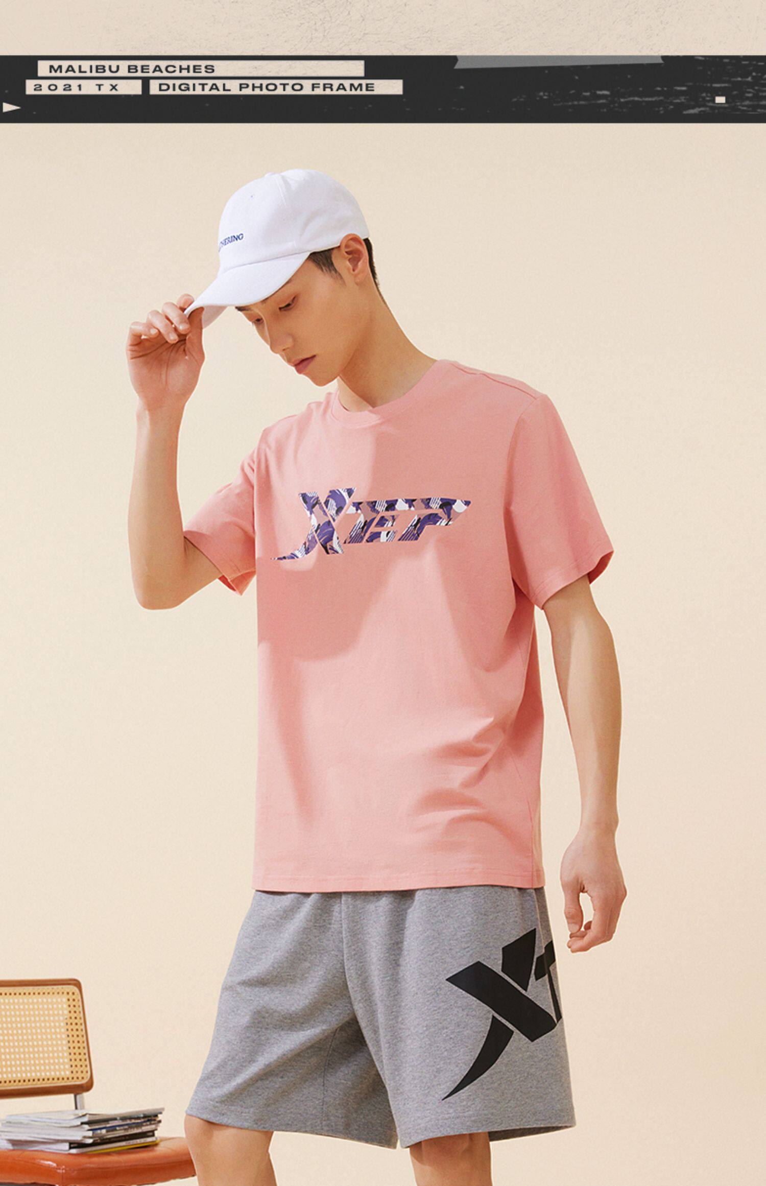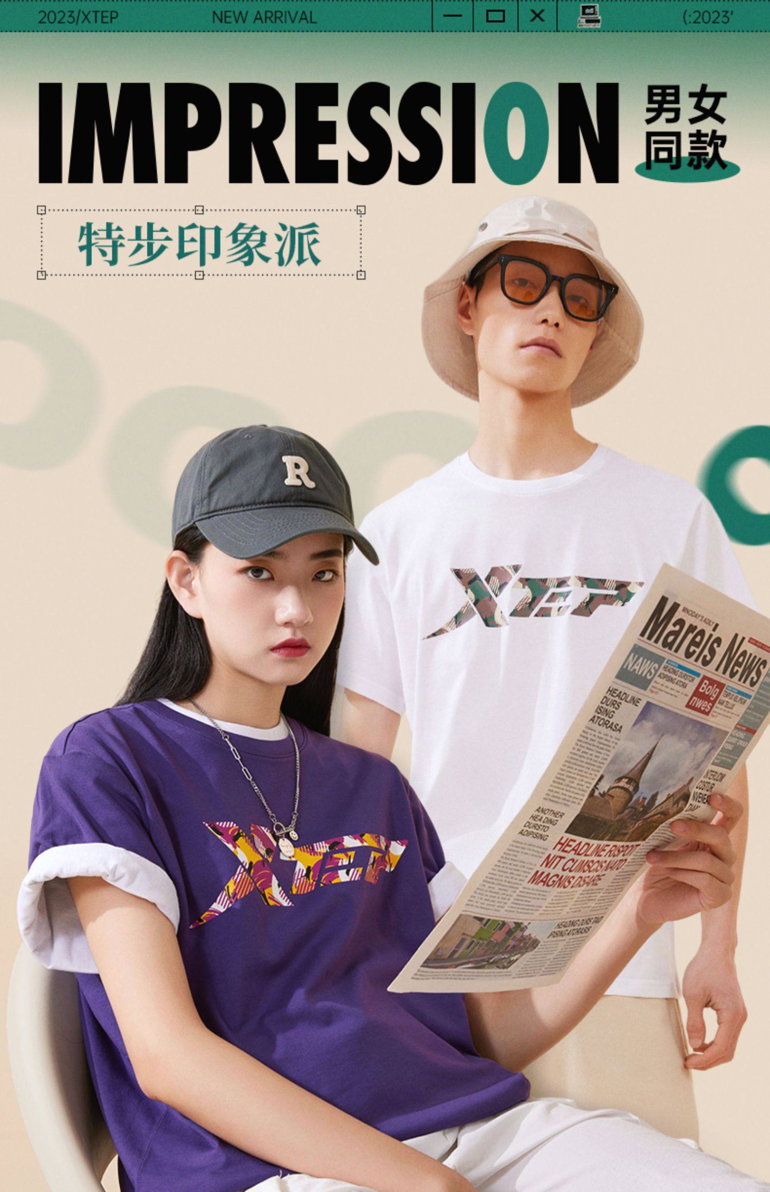 Xtep, трендовая спортивная футболка подходит для мужчин и женщин для влюбленных для отдыха, короткий рукав