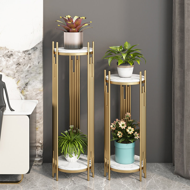 Балконная гостиная пол -железные полки -легкие роскошные роскошные новые высокие высокие лестницы зеленая мраморная рама цветов