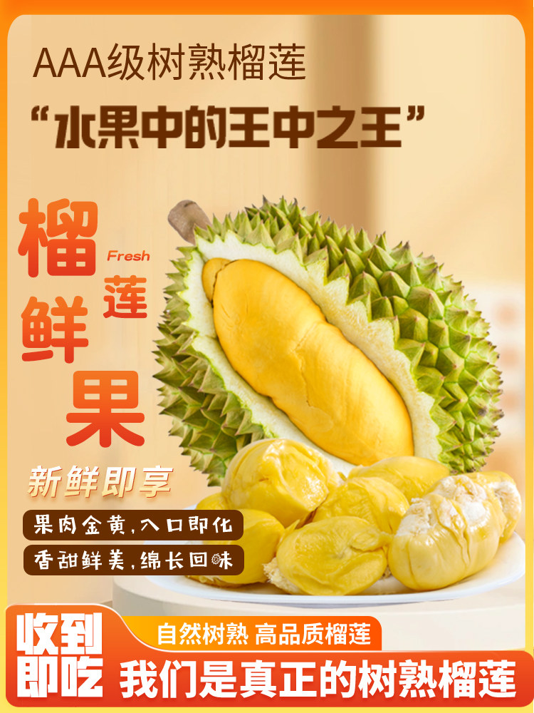 Золотая подушка Таиланда Дуриан Свежие фрукты, вся раковина, вся фруктовая шлепа