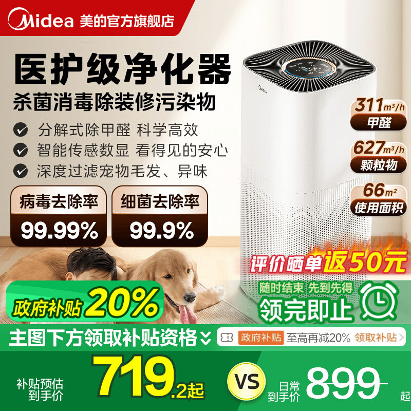 [Правительственная субсидия 20%] Midea Medical -Condor Очистка воздуха Air3 Удаление домохозяйства формальдегида Удаление дыма.
