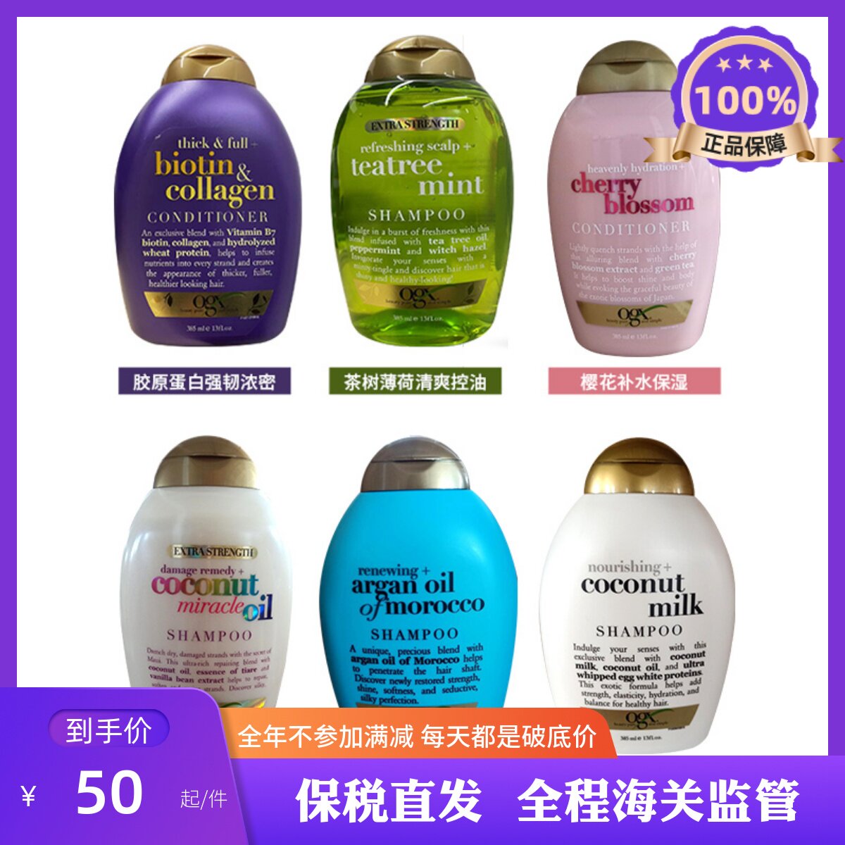Коллаген, белый чай, мятное кокосовое масло, шампунь, кондиционер с женьшенем, США, 385 мл