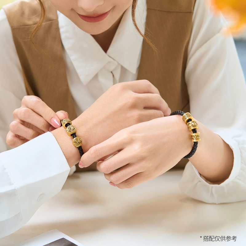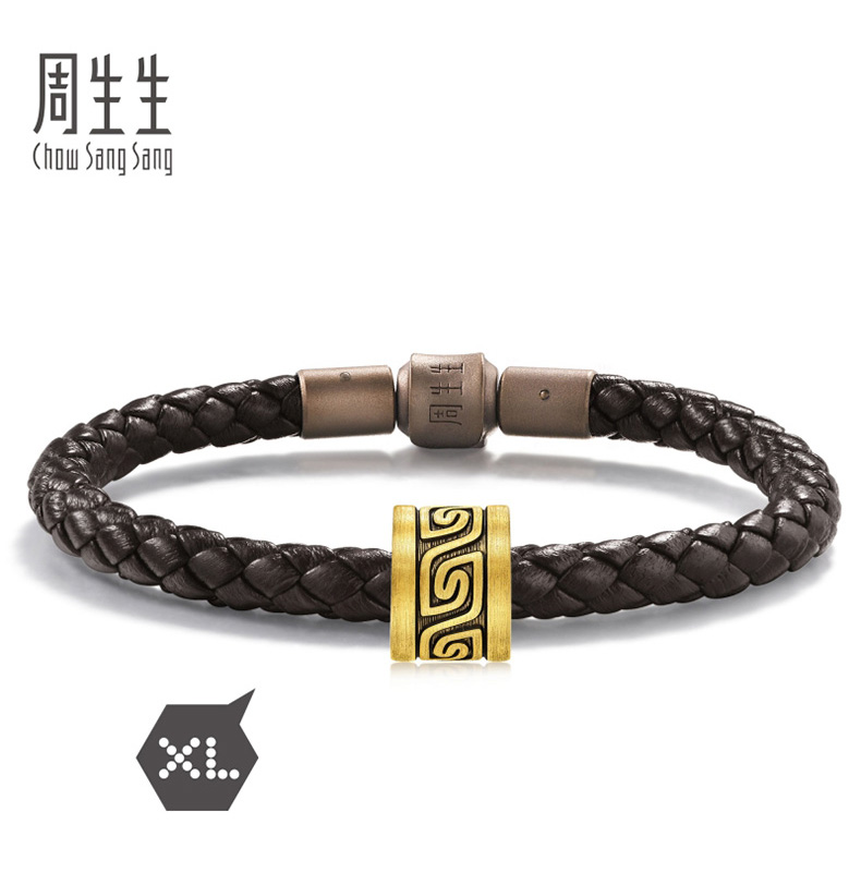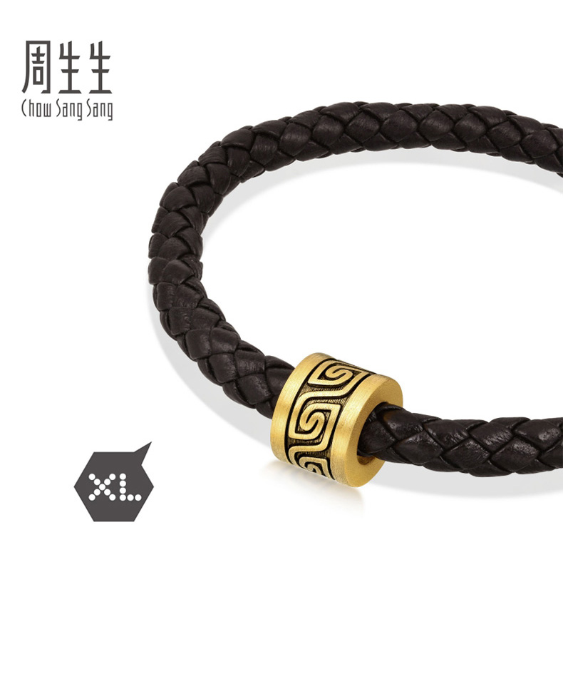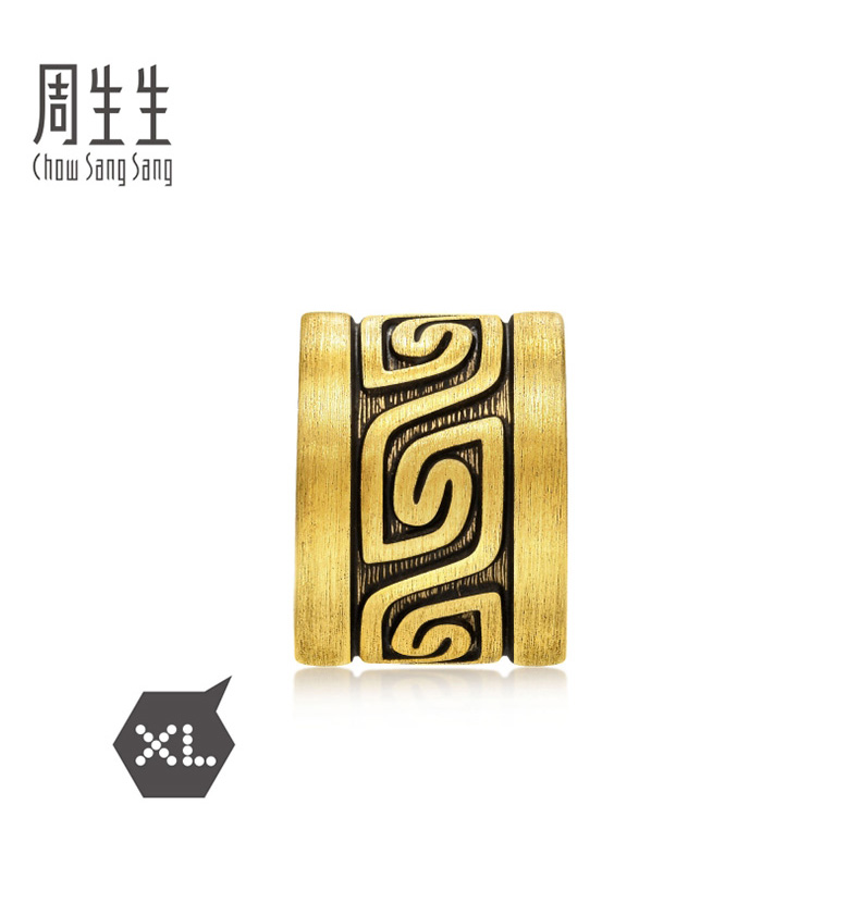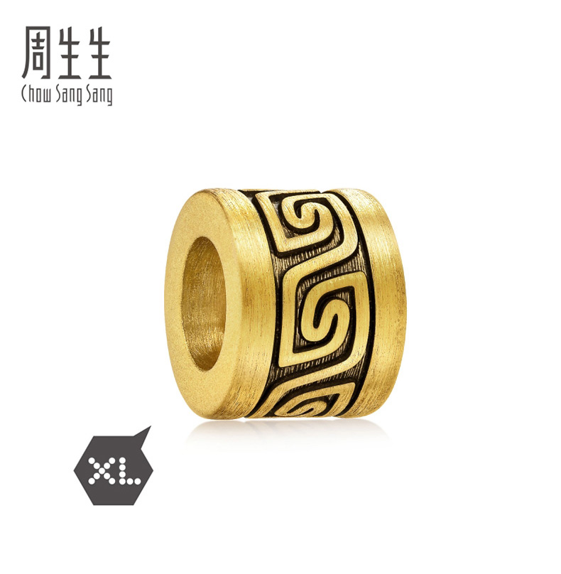 周生生 Бусины Charme XL Cool Black Cloud Thunder Pattern, переводные бусины из чистого золота, золотые бусины 93843C