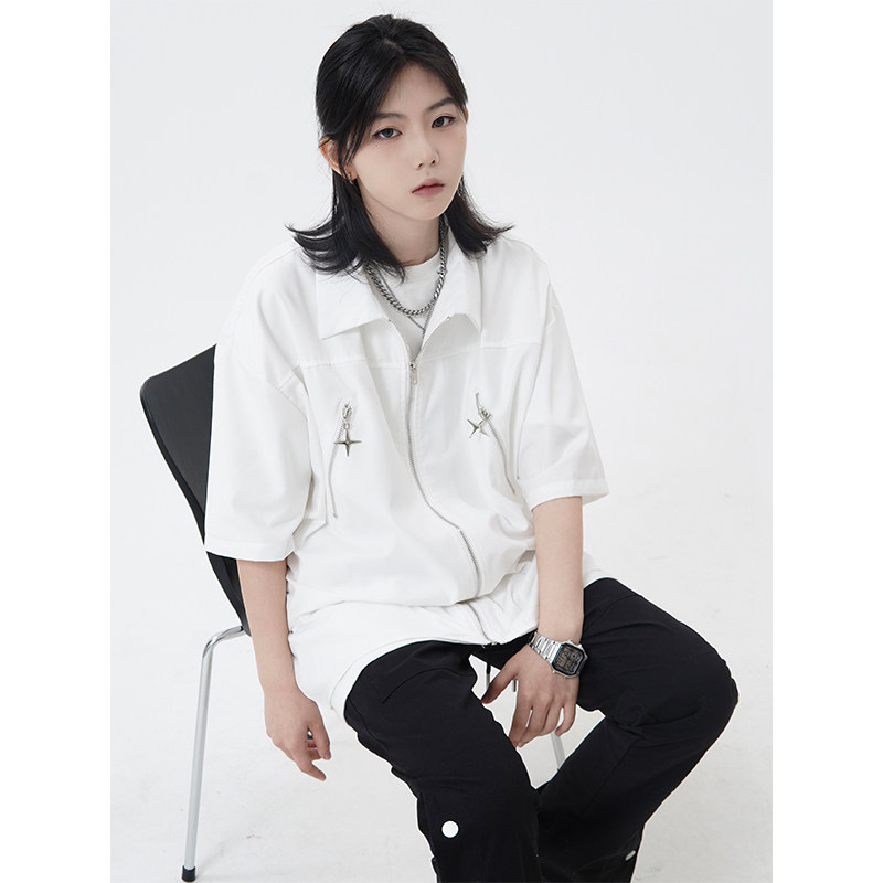 Оригинальная дизайнерская ретро рубашка, в американском стиле, свободный крой, короткий рукав