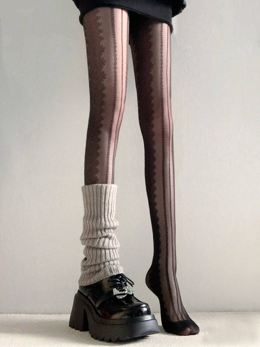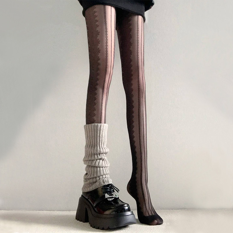 Ретро черные демисезонные колготки, кружевные носки, гетры