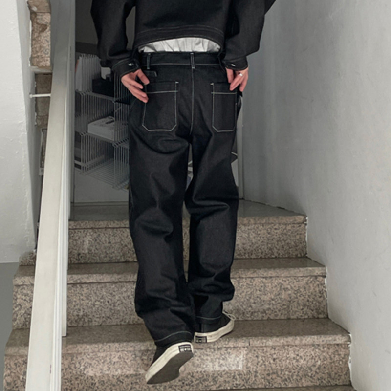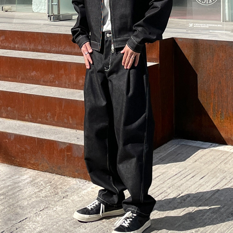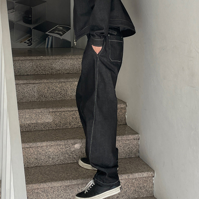 Ретро весенние черные джинсы, трендовые штаны, в американском стиле, изысканный стиль, оверсайз, свободный прямой крой, большой размер