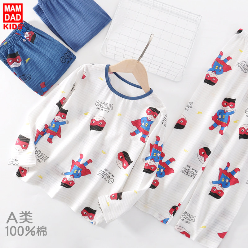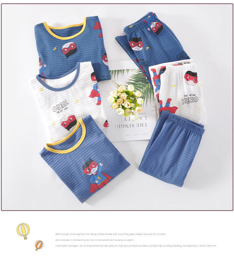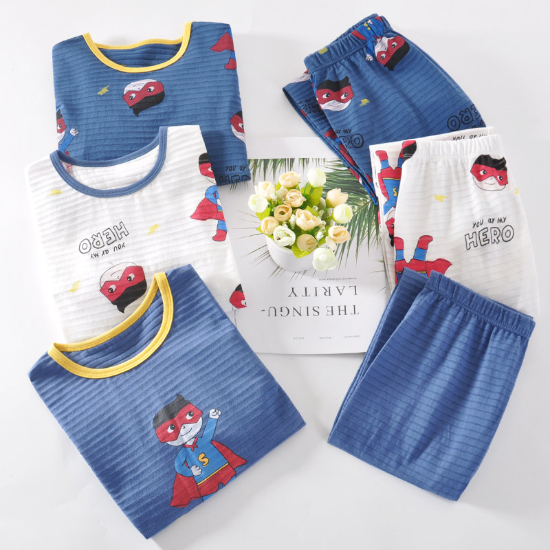 Детская пижама для мальчиков, хлопковый комплект, весеннее термобелье, тонкие летние штаны, подходит для подростков