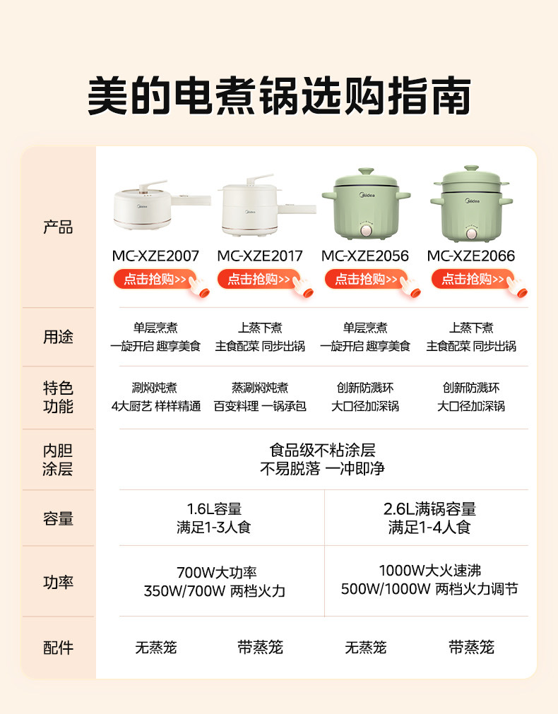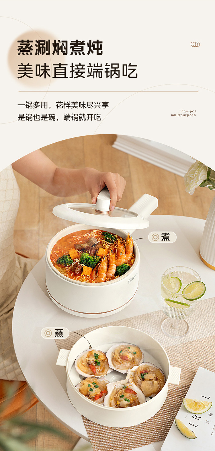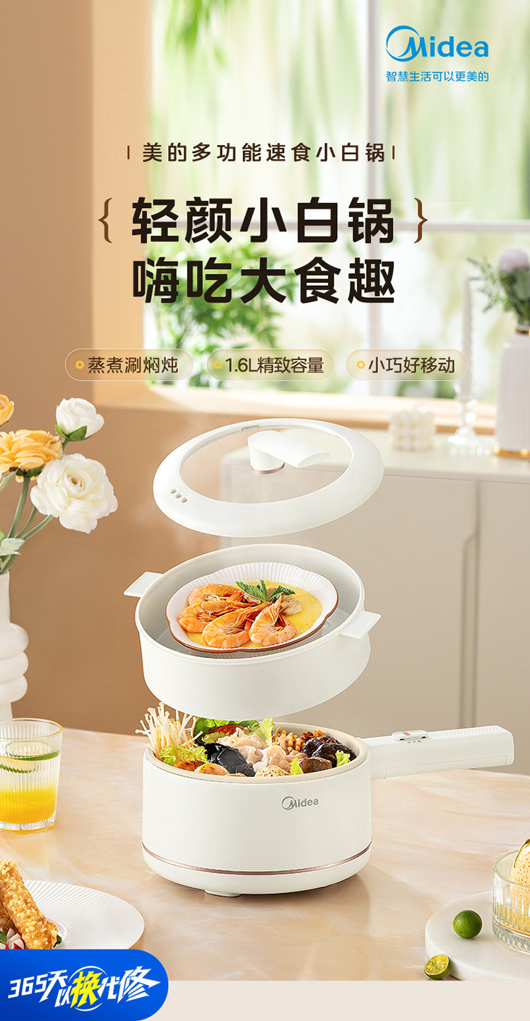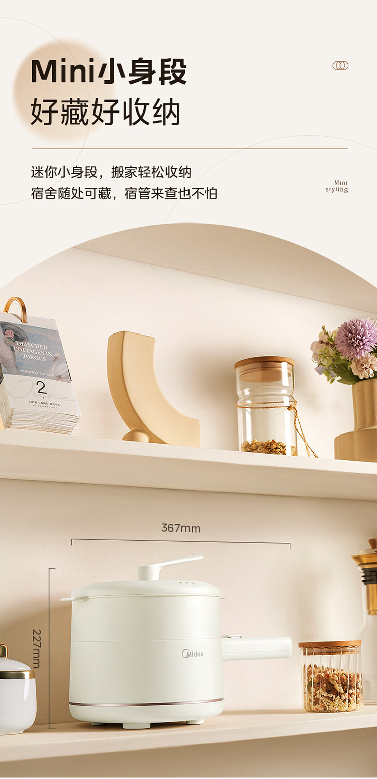 Midea Electric Pilors Небольшой мини -горячий горшок Студент Студент Студент Мгновенный лапша Неспоненная горшок многофункциональный кулинарный