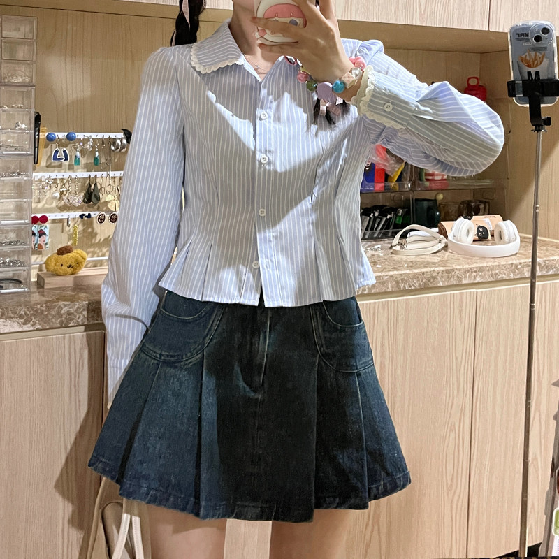Оригинальная рубашка, осенняя синяя кукла, кукольный воротник