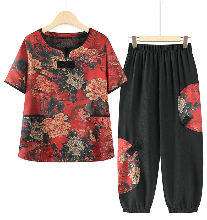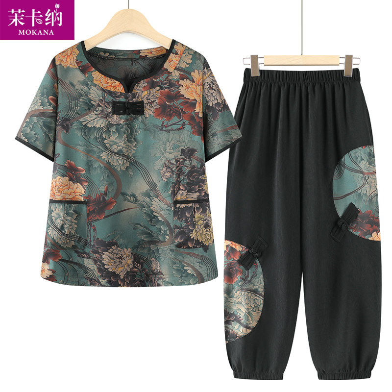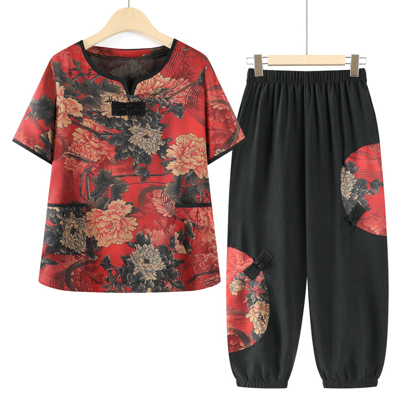 Летняя одежда для матери, комплект для пожилых людей, шифоновая футболка для отдыха, для среднего возраста, в западном стиле