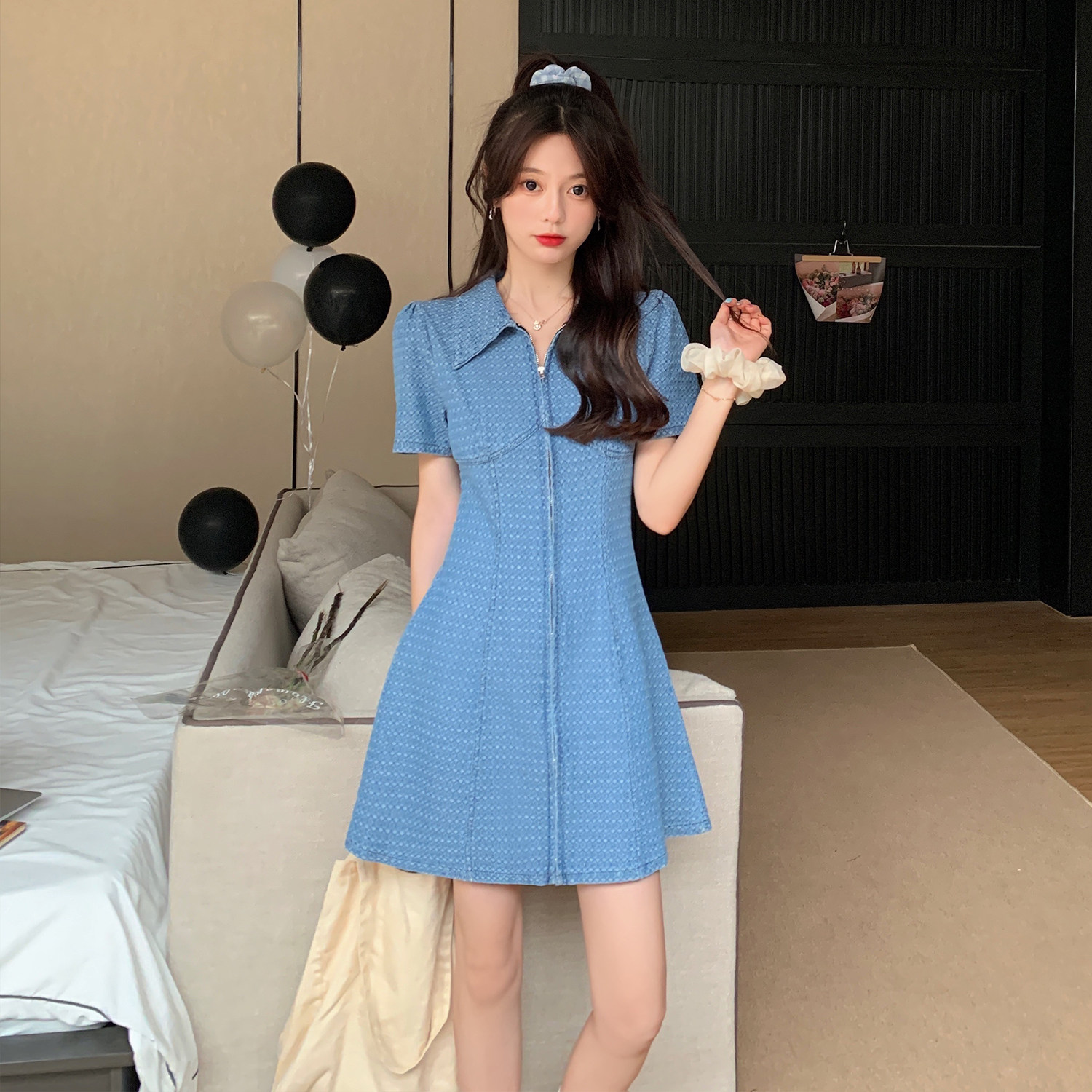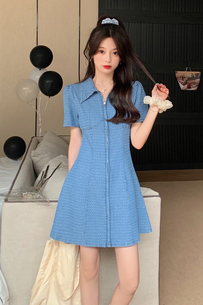 Дизайнерское джинсовое платье с молнией, приталенный корсет, демисезонная мини-юбка, большой размер, тренд сезона