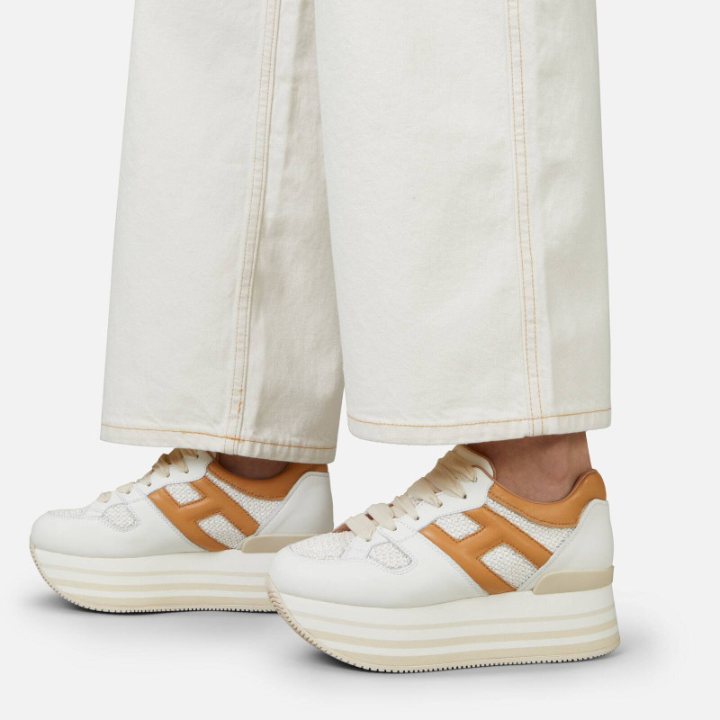 [Специальное предложение на конец сезона] Женская обувь HOGAN, весна 2023, новинка макси, удлиняющая повседневная обувь из рафии, туфли на толстой подошве