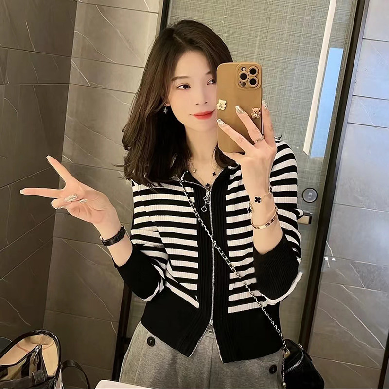 Трикотажный свитер с молнией с капюшоном для отдыха, короткий базовый кардиган