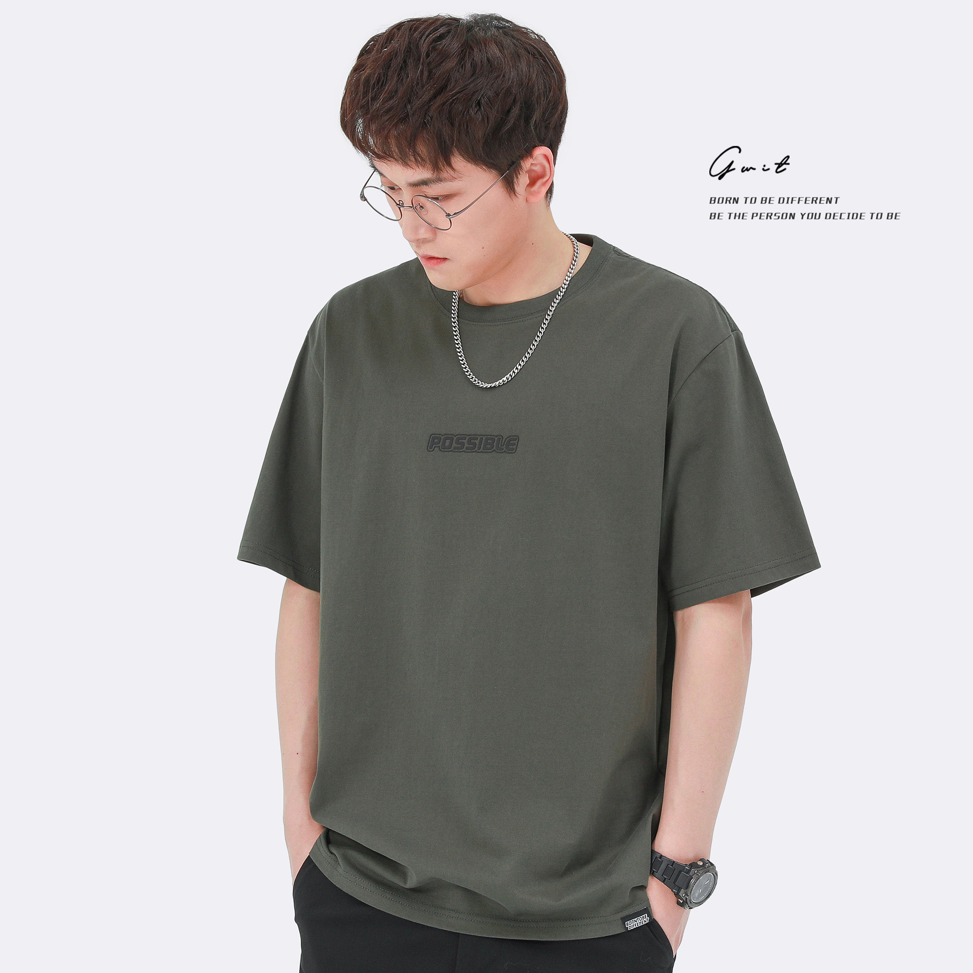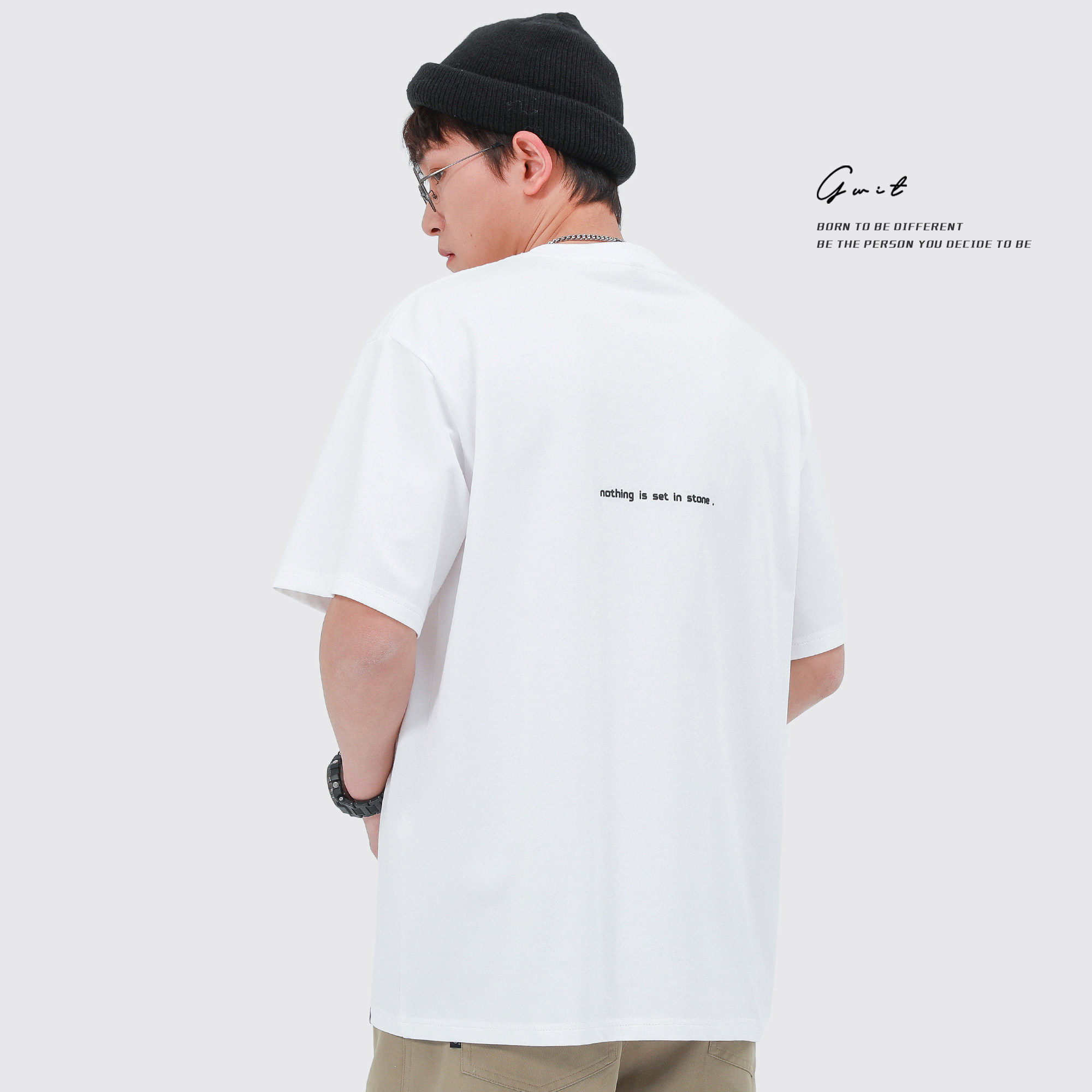 GWIT Летняя трендовая базовая приятная телу хлопковая футболка с коротким рукавом, оверсайз