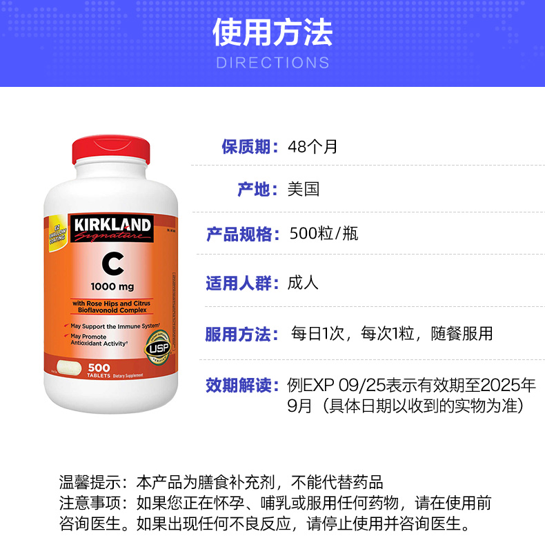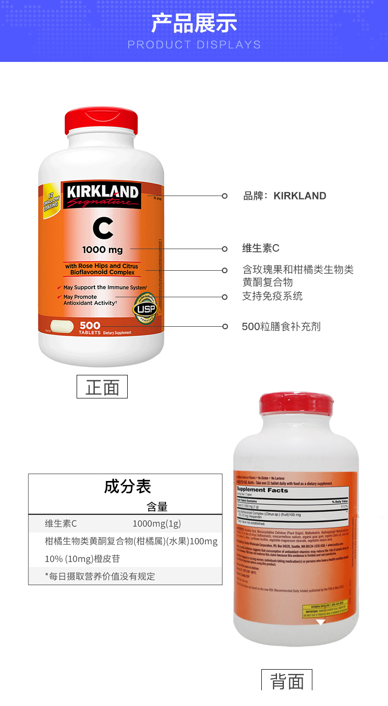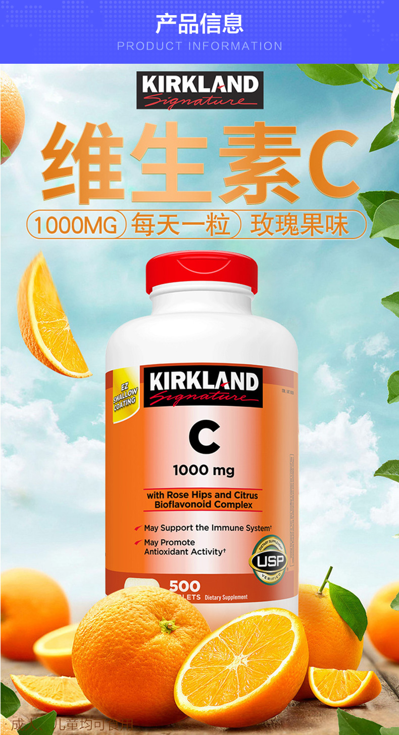 Американская киркландская подпись Cokckland Natural Vitamin C VC Таблетки 500 капсул