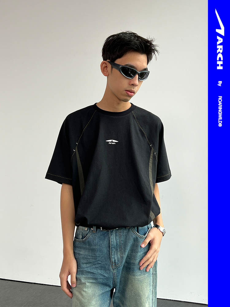 Арка от Roarwwild Roaring Beast Black Arc Splicing Short -sleeed T -Fork