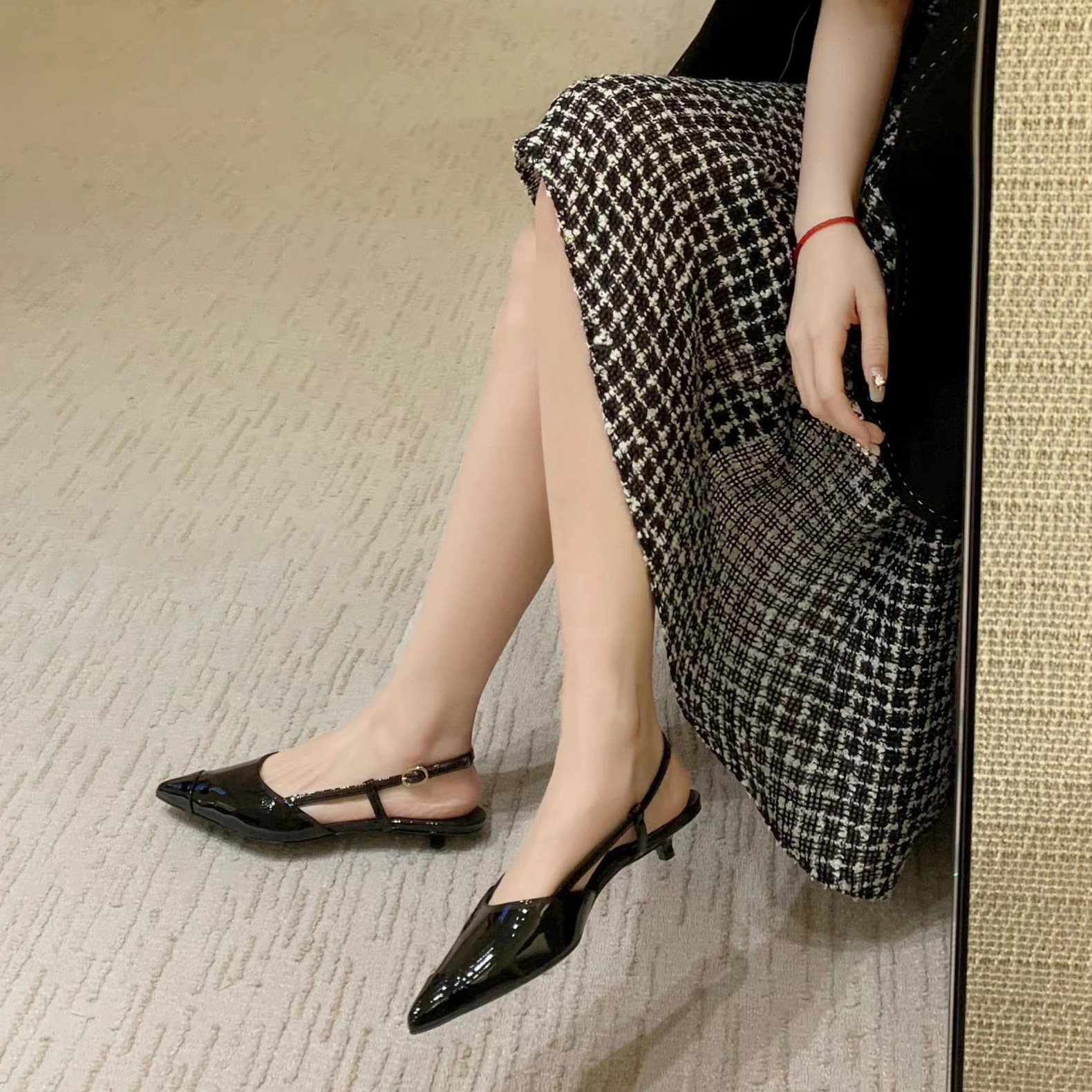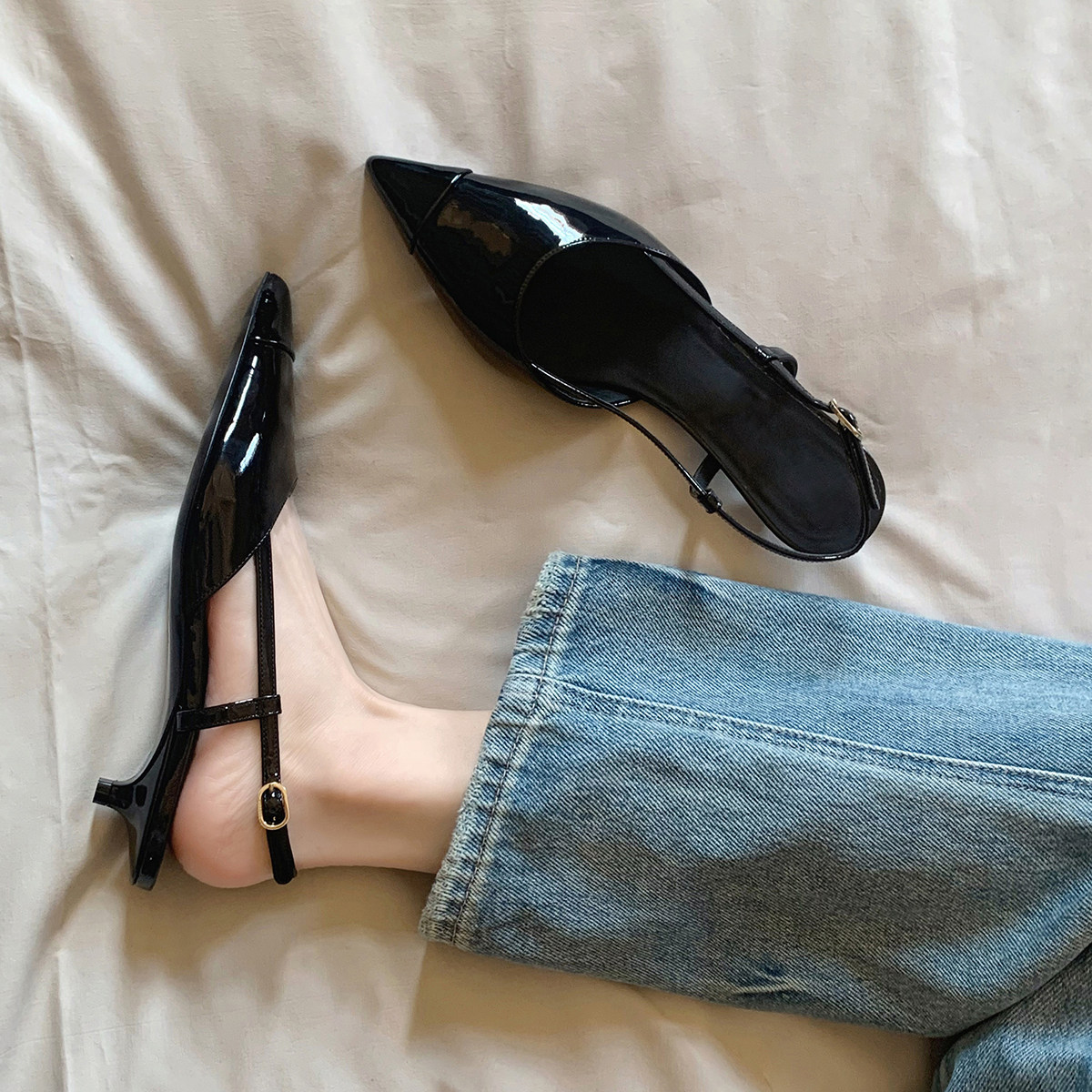 Обувь с заостренным носом, сандалии, слайдеры, в стиле Шанель, из натуральной кожи