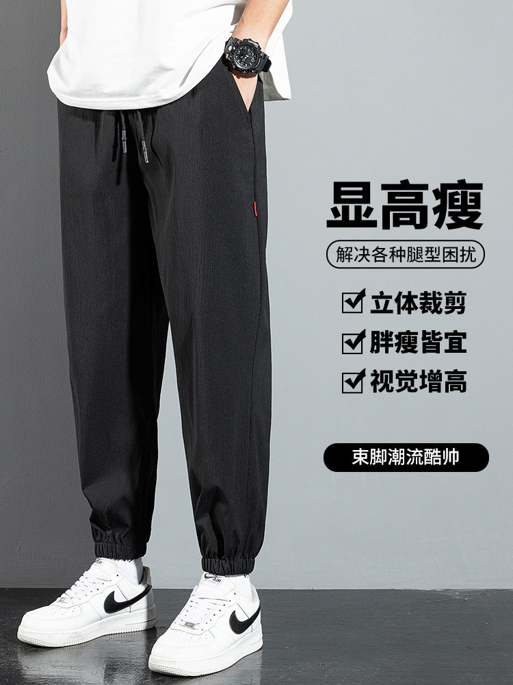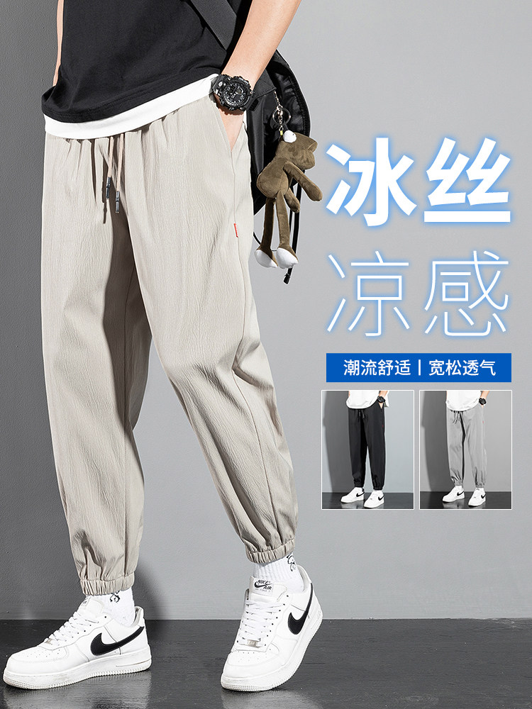Мужские шелковые летние тонкие штаны, универсальные повседневные брюки, свободный крой, подходят для подростков