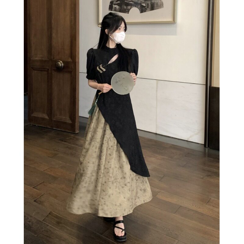 Модное ципао, комплект, атмосферное дизайнерское платье, большой размер, китайский стиль, тренд сезона