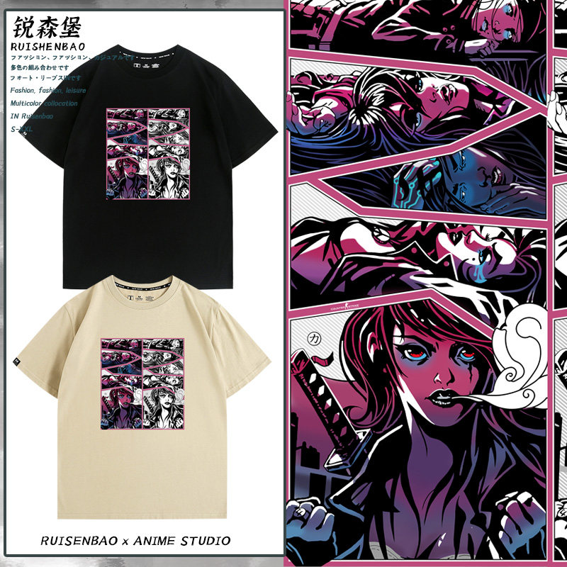 Черная наклейка, летняя хлопковая футболка с коротким рукавом подходит для мужчин и женщин
