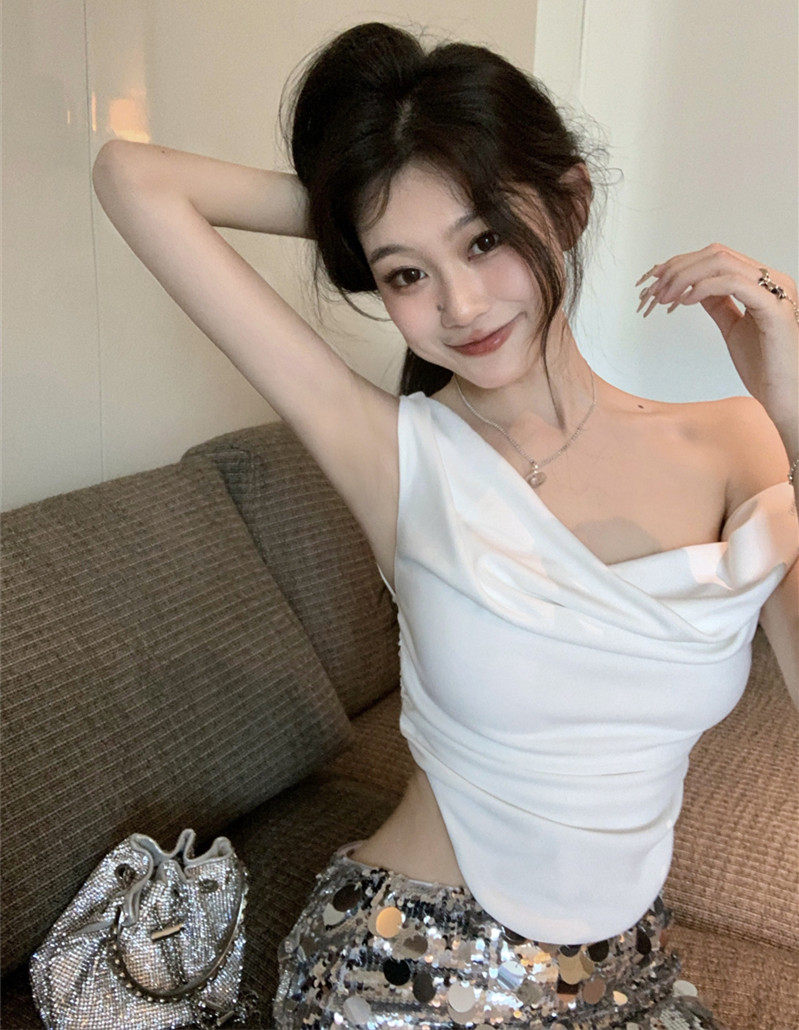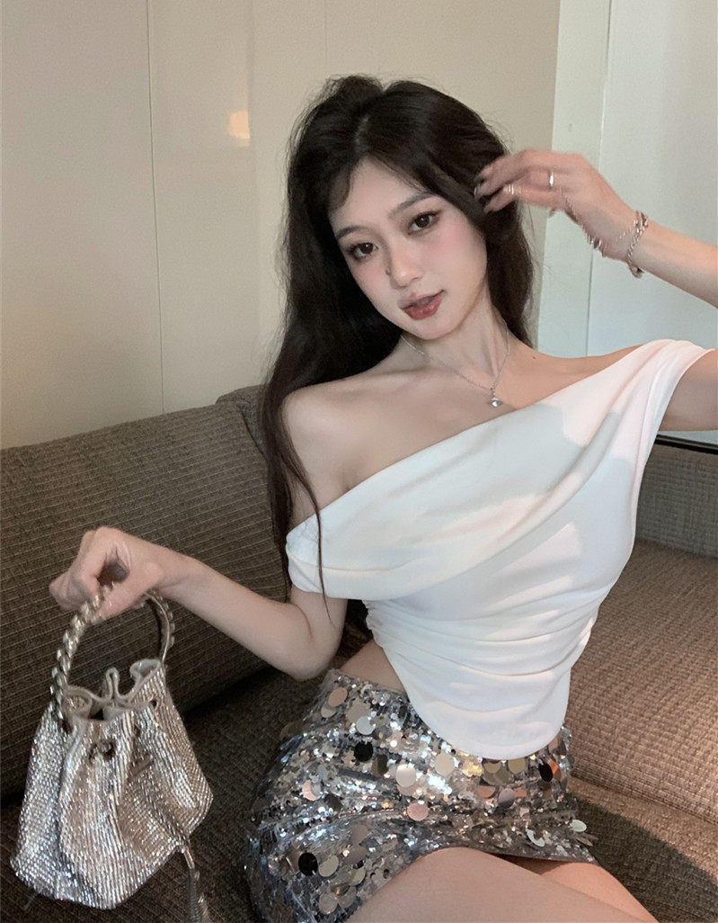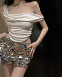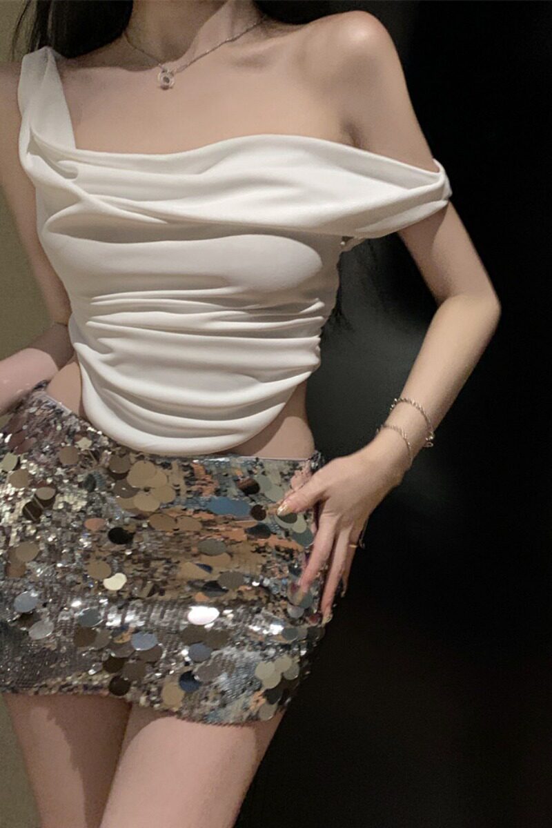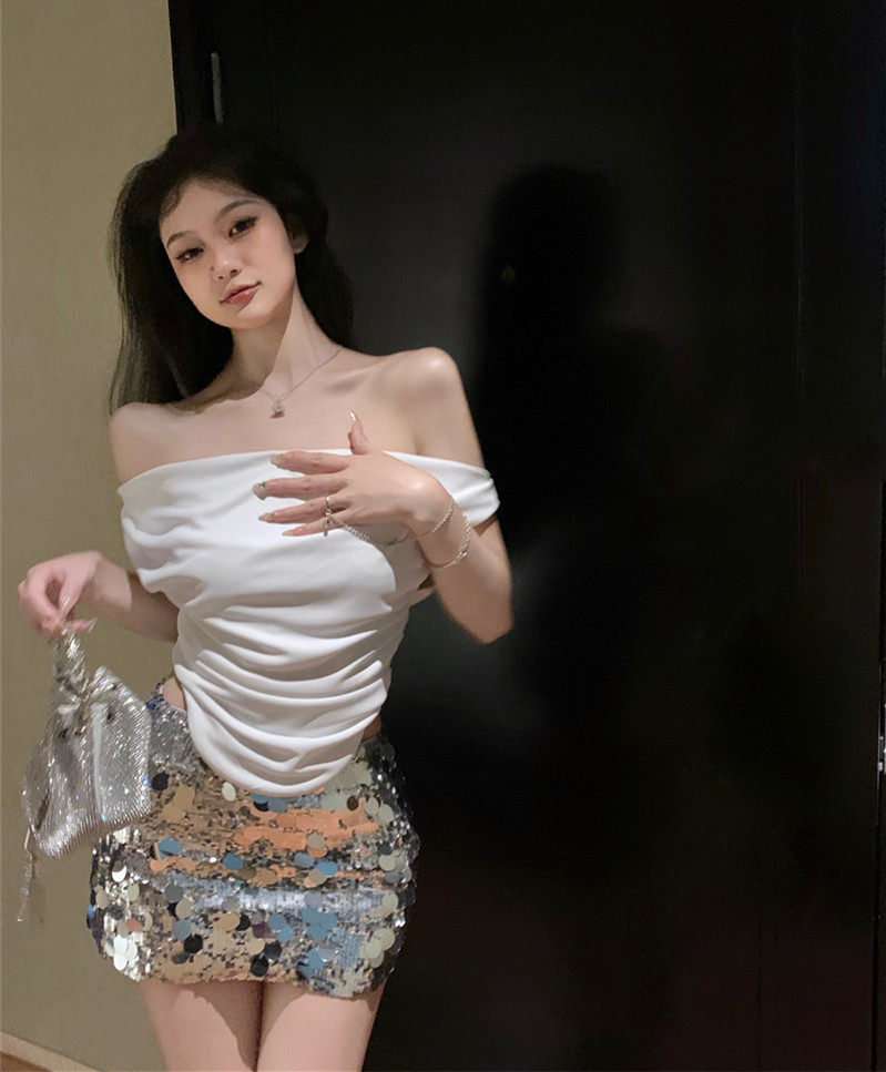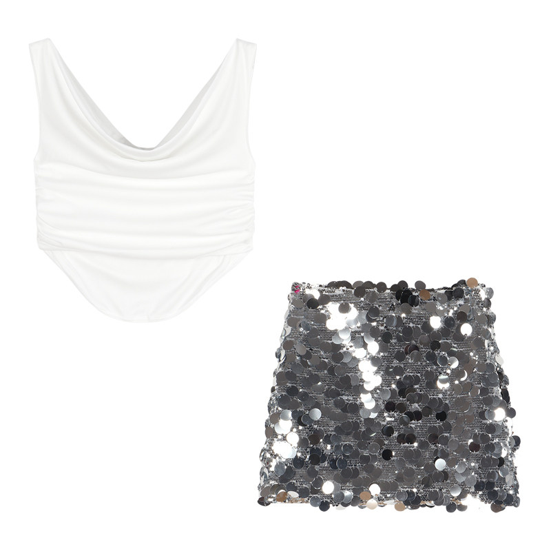 Топ с чашечками, летняя майка топ, комплект, сексуальные блестки для ногтей, юбка, французский стиль, с акцентом на бедрах