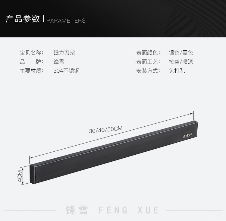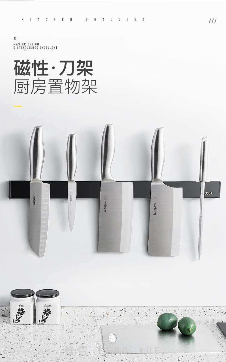 Магнитный держатель ножа из нержавеющей стали 304, неперфорированный, для кухни